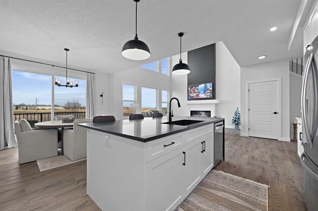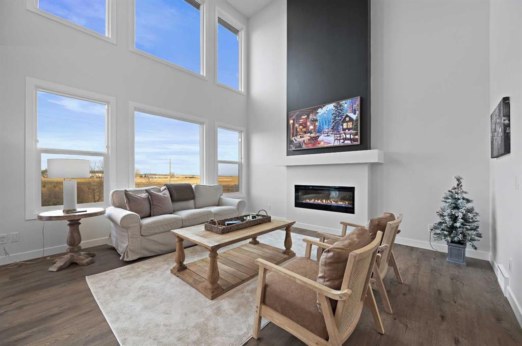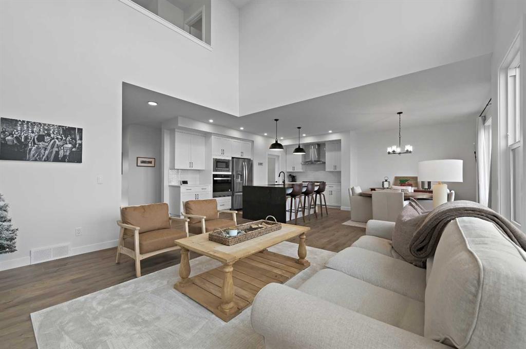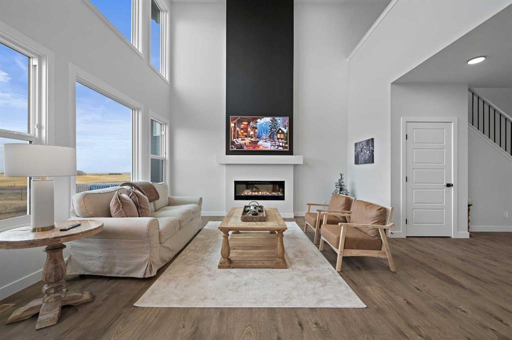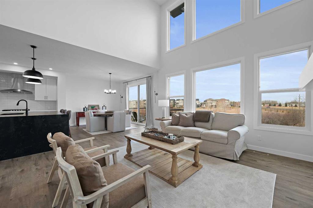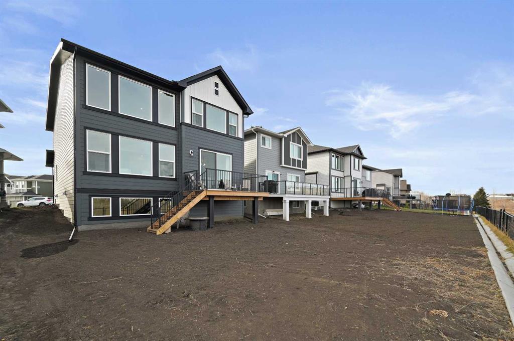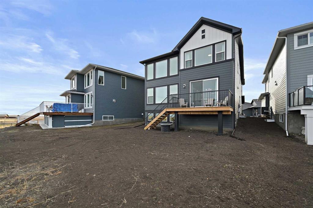 Welcome to 34 Ranchers View. This Sterling home was completed in early March 2025, boasting 4 bedrooms on the upper level which is a commodity nowadays, accompanied with 2 bathrooms and a half bath. Upon entry, first thing you will notice is the open space and natural light basking the home. From afar you could see the nature preserve the home backs onto. 9’ ceilings carry throughout the main floor opening up to an eye opening 18’4” high in the grand living room. Matching Stainless steel kitchen appliances for those mouth watering home cooked meals could be served on the big waterfall kitchen island. For Family gatherings, the open flow from the dining room to the living room creates the coziness everyones yearns in a home. Continue outside to the oversized deck in the backyard overlooking a pond and walking paths for serenity. No neighbours in the rear leaves for peace and privacy year round. Head upstairs to the Primary retreat with views of the nature preserve from your bedroom then bask in the spa like ensuite to end the day. This community is a close proximity to the crystal ridge golf club and your own private airstrip for the aviation enthusiasts. Surrounded by playgrounds and walking paths, do not miss out on this opportunity to attain one of Air Ranch’s best lot location with a great builder reputation behind the build.