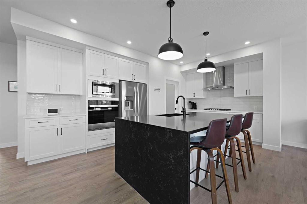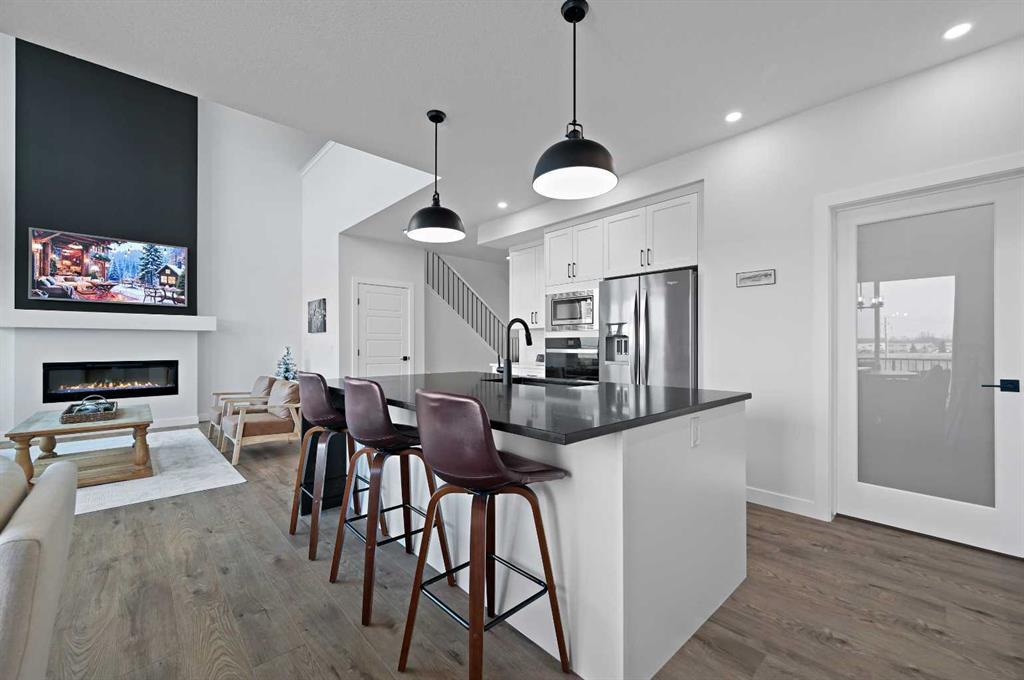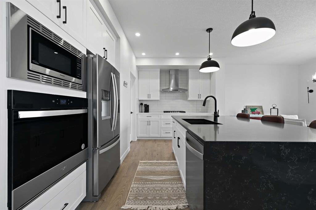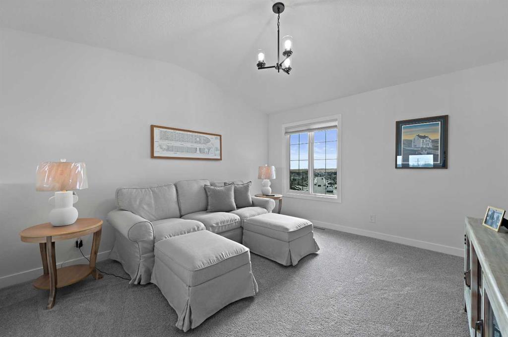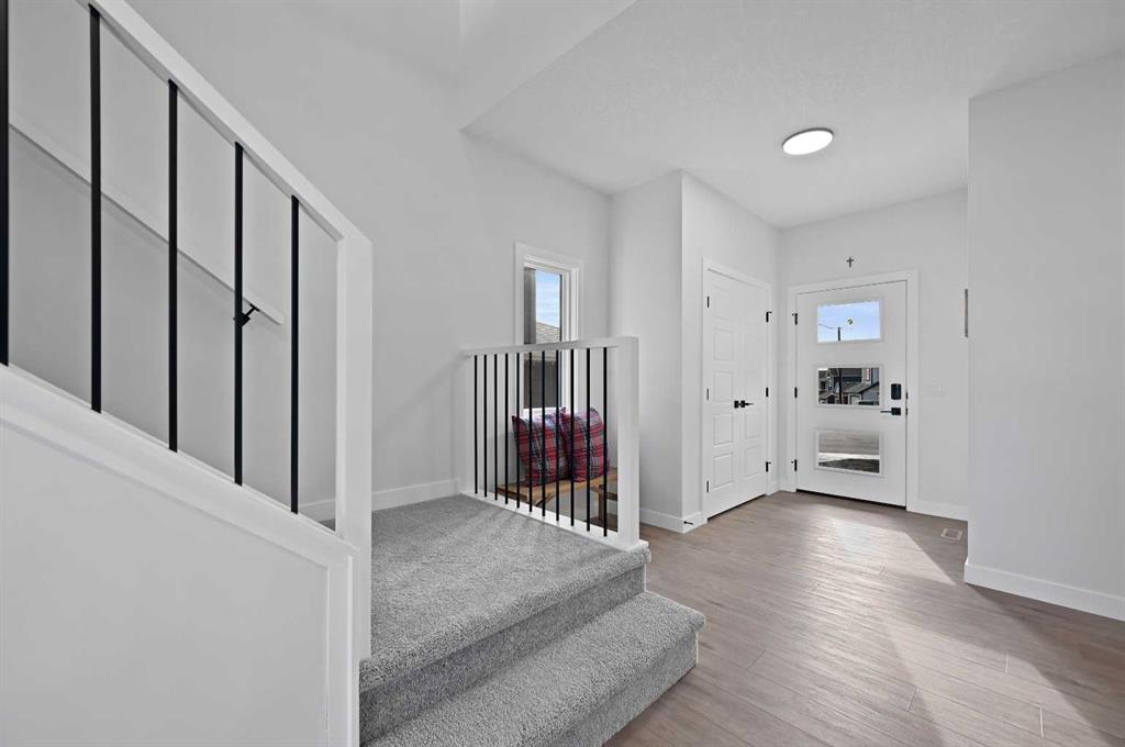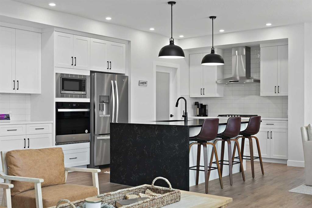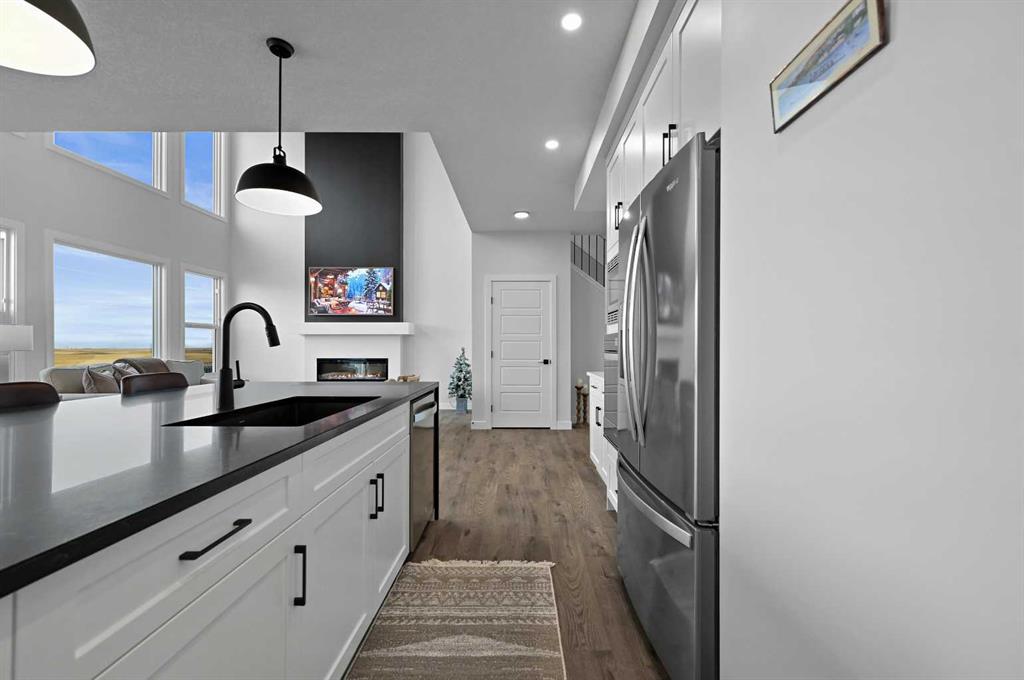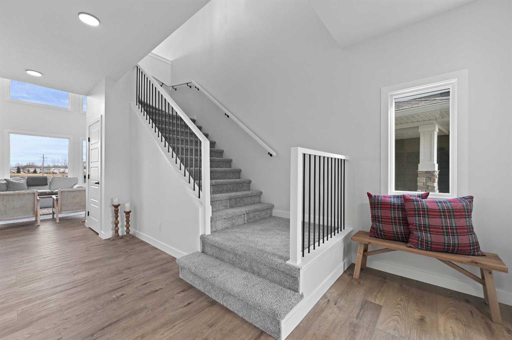Welcome to 34 Ranchers View. This Sterling home was completed in early March 2025, boasting 4 bedrooms on the upper level which is a commodity nowadays, accompanied with 2 bathrooms and a half bath. Upon entry, first thing you will notice is the open space and natural light basking the home. From afar you could see the nature preserve the home backs onto. 9’ ceilings carry throughout the main floor opening up to an eye opening 18’4” high in the grand living room. Matching Stainless steel kitchen appliances for those mouth watering home cooked meals could be served on the big waterfall kitchen island. For Family gatherings, the open flow from the dining room to the living room creates the coziness everyones yearns in a home. Continue outside to the oversized deck in the backyard overlooking a pond and walking paths for serenity. No neighbours in the rear leaves for peace and privacy year round. Head upstairs to the Primary retreat with views of the nature preserve from your bedroom then bask in the spa like ensuite to end the day. This community is a close proximity to the crystal ridge golf club and your own private airstrip for the aviation enthusiasts. Surrounded by playgrounds and walking paths, do not miss out on this opportunity to attain one of Air Ranch’s best lot location with a great builder reputation behind the build.