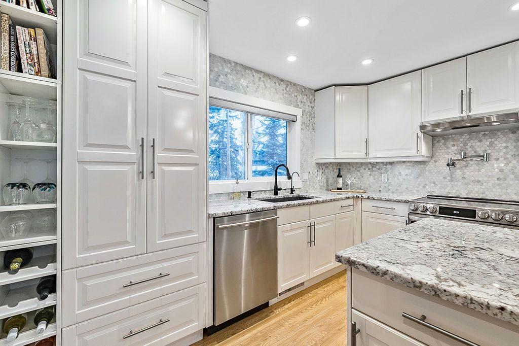 What a location for this beautiful, thoughtfully renovated bungalow in the north portion of Wildwood. Close to the ridge in Wildwood with Edworthy Park and the Bow river an easy walk away. One of Calgary's most sought out outdoor area for dog owners and hikers alike. An inviting home showing pride of ownership with the perfect main floor plan for entertaining, gourmet kitchen with granite counter tops, soft close drawers and hardwood throughout. Central air conditioning keeps things cool in summer and the gas fireplace offers cozy heat in the downstairs family room for cold winter months. Three bedrooms on main plus one large bedroom down with another flex room that could be yet another bedroom or a great gym space. Basement was professionally developed with flat ceilings, lots of pot lights, laminate floors, in-floor heat in the bathroom, wet bar and wired for surround sound. Outside the yard is truly the place to relax and enjoy the beautiful landscaping complete with 5 zone irrigation system, a cobblestone patio and a sunken fire pit surrounded by perennial beds, raspberry bushes, grasses and huge mature trees. Double garage is heated and has lots of storage and built in shelving. An amazing location from which to cycle to work and beat the traffic. Easy to leave town and head to the mountains and a short commute to downtown. City living with space to breathe. New shingles on garage - 2024, New hot water tank - 2024, Leaf gutter protection system - 2024.