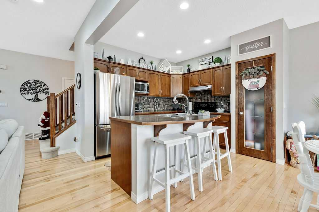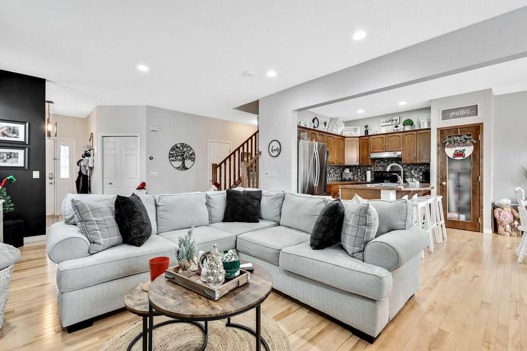Welcome to 155 Cimarron Grove Circle, tucked away on a quiet street in the popular community of Cimarron. This well-designed 4-bedroom, 4-bathroom home offers the perfect blend of style and functionality. With real hardwood flooring, comfy carpet, and tiled bathrooms, this family home is sure to impress. The main floor features a bright, open-concept layout. The kitchen showcases maple cabinetry, Stainless steel appliances and a natural slate backsplash, flowing seamlessly into the inviting living room, complete with a cozy gas fireplace. A convenient 2-piece bathroom finishes off this level. Upstairs, the spacious primary bedroom includes a generously sized ensuite, creating a private retreat. Upper-floor laundry adds great convenience. 3 additional bedrooms, a bonus room/loft, and a 4-piece main bath complete the second level! The fully finished lower level offers even more living space with a large family room and another 4-piece bathroom. The heated double garage ensures year-round comfort. Outside, enjoy the sun on the large deck overlooking the ample pie-shaped yard—perfect for kids, gardening, or a future firepit area. With back-lane access, there’s room to store extra toys if needed. This beautifully designed home also features central air conditioning, offering everything you need in a fantastic location.