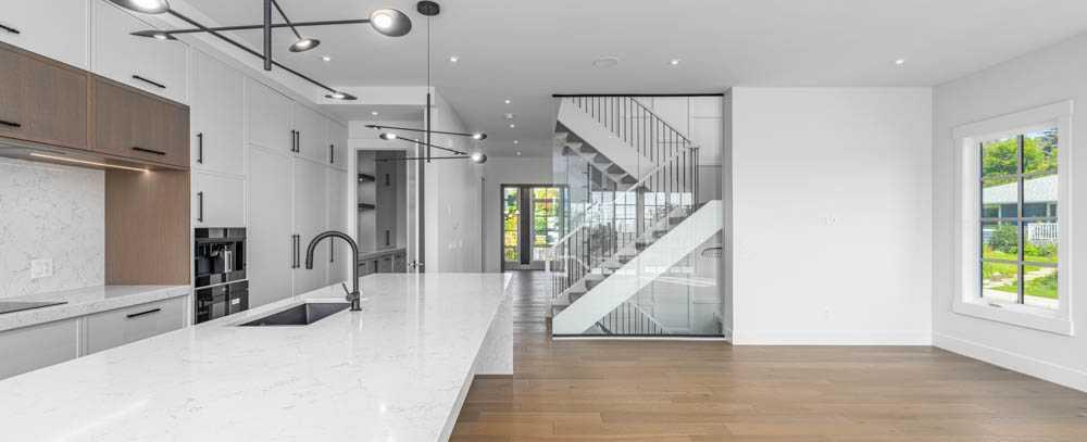 Exquisite Modern Corner Home with Panoramic Downtown Views. This striking luxury contemporary corner home, is perfectly positioned in one of Calgary’s most sought after inner city neighbourhoods. From the moment you arrive, the home’s bold architecture, oversized windows, and meticulously landscaped, low maintenance yard with automatic irrigation, make a lasting impression. Step inside to soaring ceilings and sun drenched spaces that immediately evoke a sense of openness. The formal dining area, surrounded by windows, is ideal for entertaining, while a discreet powder room and custom wine storage add subtle touches of luxury. At the heart of the home, the chef’s kitchen impresses with premium Fisher & Paykel appliances, elegant quartz countertops, statement tile, and a butler’s pantry to keep everything organized. The oversized island is perfect for cooking, gathering, or casual dining, and the cozy breakfast nook opens onto a private terrace, seamlessly connecting indoor and outdoor living. The family room is anchored by a dramatic floor to ceiling stone fireplace and provides direct access to the terrace with sweeping downtown views, perfect for relaxing evenings or weekend entertaining. A striking glass enclosed staircase adds architectural drama while allowing natural light to flow throughout the home. Upstairs, the luxurious primary suite serves as a private retreat. It features dual custom closets, a built-in vanity, and a spa inspired ensuite with heated floors, a deep soaker tub with downtown views, double sinks, a rainfall steam shower, and high-end finishes. Two additional bedrooms offer flexible space for children, guests, or home offices, with a full bathroom that also includes in-floor heating and ample storage. The upstairs laundry room, equipped with high-end washer and dryer and abundant cabinetry, makes daily tasks effortless. The fully developed lower level expands your living space with a spacious recreation room, custom wet bar with wine fridge and integrated dishwasher, perfect for entertaining. Radiant in-floor heat ensures comfort year round. A fourth bedroom and full bathroom provide additional space for guests or teens, while an oversized mudroom with smart storage connects directly to the heated double garage. Additional features include central AC, integrated lighting, and high-end Hunter Douglas remote operated blinds throughout, fully programmable via app for complete convenience and privacy control. This home blends luxury, style, and practical functionality, with a location that puts the best of Calgary’s inner city right at your doorstep. Don’t miss this rare opportunity to own a home that elevates both everyday living and entertaining. Please see 3D tour and video.