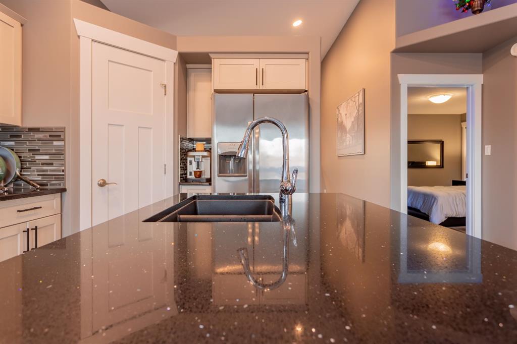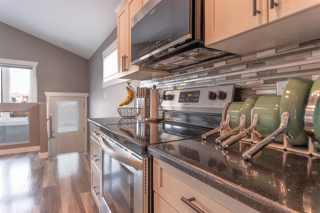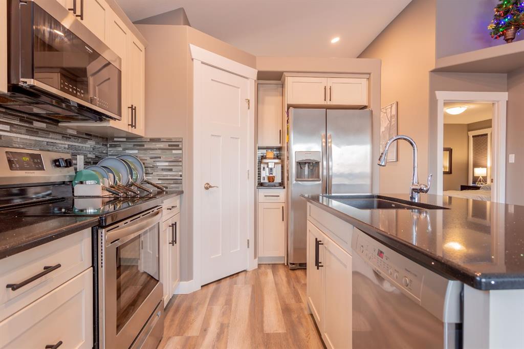 This bungalow has a smart, comfortable layout from the moment you walk in. The front entry is roomy and practical - opening into the main living area with a partial wall that gives some separation between the living room and kitchen while still keeping the space connected. The kitchen gets great natural light and the granite counters, tile backsplash and large island make it an easy place to work and gather. The back door is right off the kitchen and leads to the rear stairs as well as the patio and yard. The primary bedroom is a good size with its own 3-piece ensuite, complete with a large shower and a walk-in closet. The second main-floor bedroom has direct access to the main bathroom through a pocket door — giving guests or family an easy and private setup. Downstairs, the family room is spacious and finished with plush carpet. Both basement bedrooms are comfortably sized and there’s a 4-piece bathroom as well. Laundry is located in the utility room — tucked away but easy to get to. Central A/C. The yard is fully fenced with lawn front and back, plus a patio off the rear entrance. The double attached garage is heated and the property includes back alley access — a handy perk you rarely find in homes of this age. Lakeside remains a steady, in-demand neighbourhood with limited listings. This one-owner home has been well cared for throughout and if you’ve been waiting for something in this area, it’s one worth seeing.