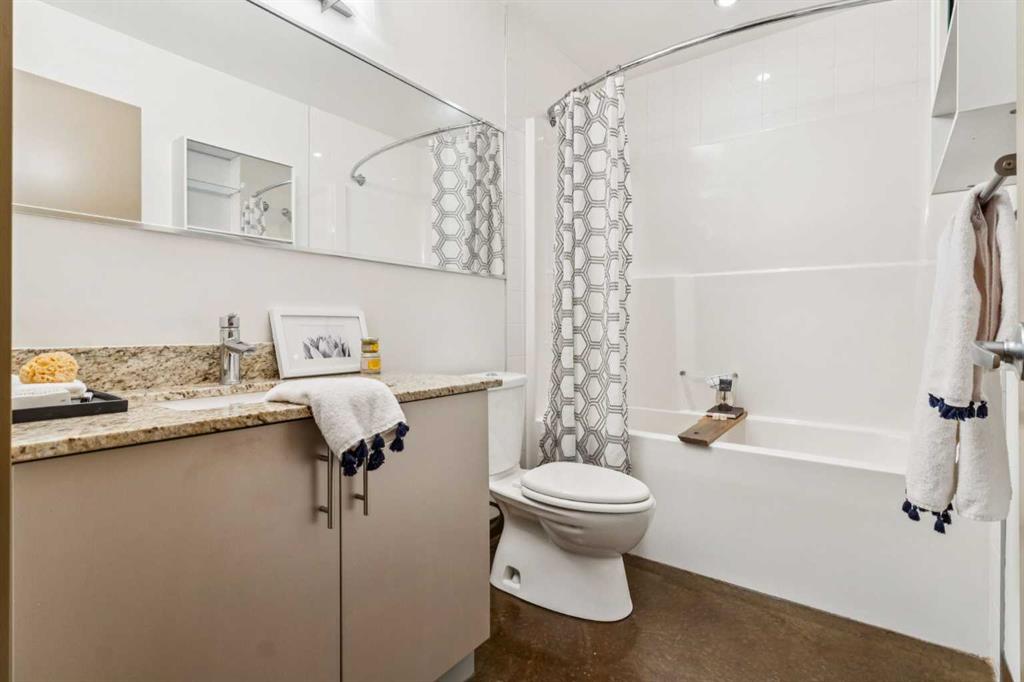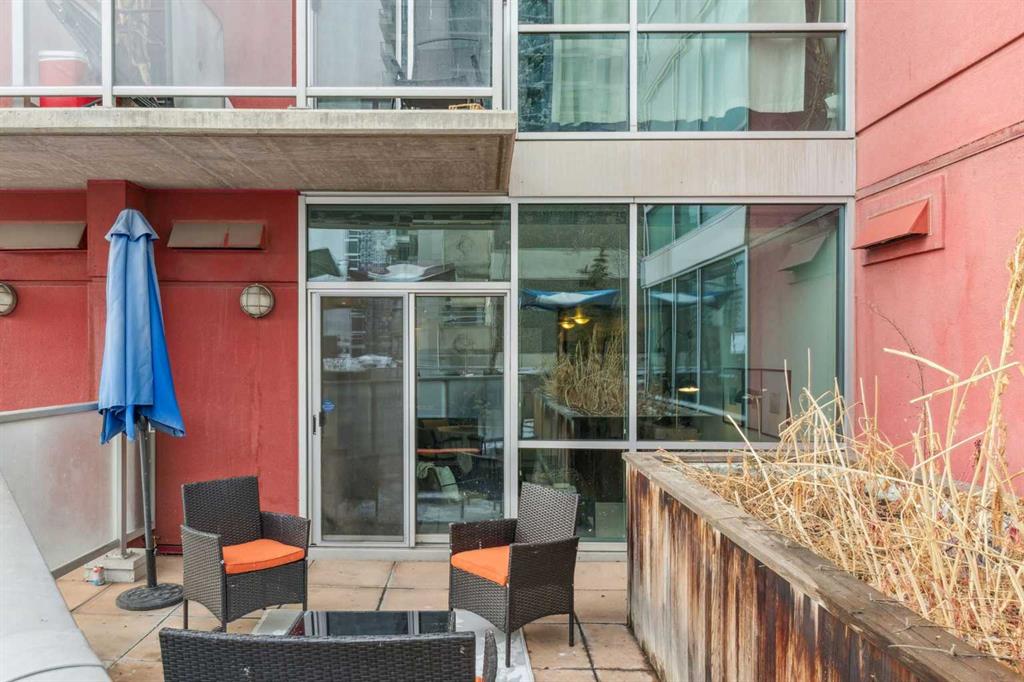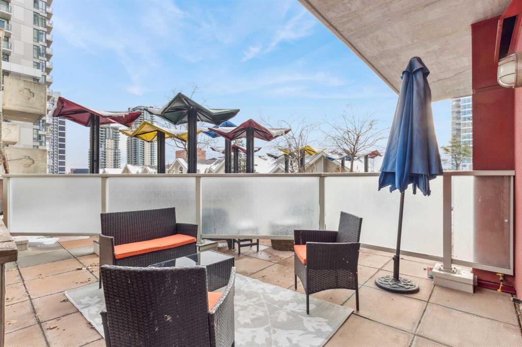Welcome to one of the most unique and character-rich condos in the Colours building: a 2-bedroom, 2-bathroom terrace-level home with one of the largest private outdoor spaces the building has to offer. This is urban living with personality, flexibility, and serious lifestyle appeal in the heart of Calgary’s vibrant 1st Street District. Loft-inspired and effortlessly cool, the open-concept interior is grounded by striking polished concrete floors and expansive windows that flood the space with natural light. The modern kitchen is both stylish and functional, featuring stainless steel appliances, granite countertops, and seamless flow into the main living area—perfect for entertaining or everyday living. The true showstopper is the oversized terrace, which functions as your own private outdoor living and dining room. Complete with a beautiful raised planter, this space is ideal for hosting friends, gardening, relaxing in the sun, or unwinding after a long day—an exceptional feature rarely found in condo living. The bright primary bedroom offers sliding glass doors, built-in closet organizers, and a private ensuite with a deep soaker tub. The second bedroom is cleverly designed behind sliding glass doors, making it ideal as a guest room, office, or flex space. You’ll also appreciate the oversized in-suite storage room with ensuite laundry—providing exceptional functionality rarely seen in comparable units. A titled parking stall is included, and with short-term rental potential, this property offers outstanding flexibility for both end-users and investors alike. Just steps from cafés, restaurants, nightlife, and the downtown core, this home isn’t just a place to live—it’s a lifestyle. Whether you’re looking to settle in or generate income, this is your opportunity to own a slice of one of Calgary’s most exciting urban communities.