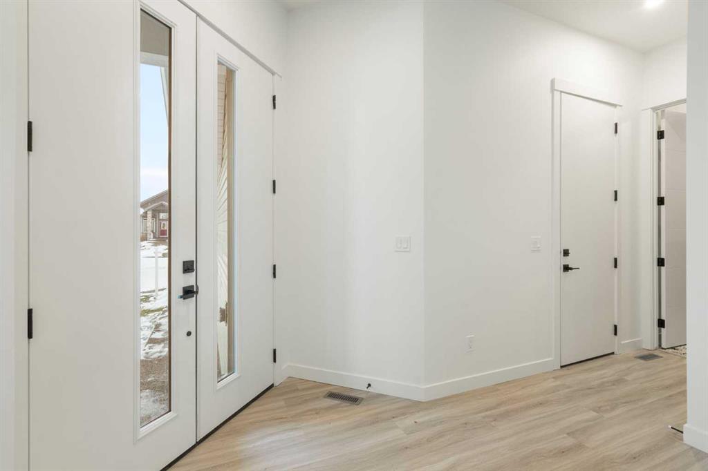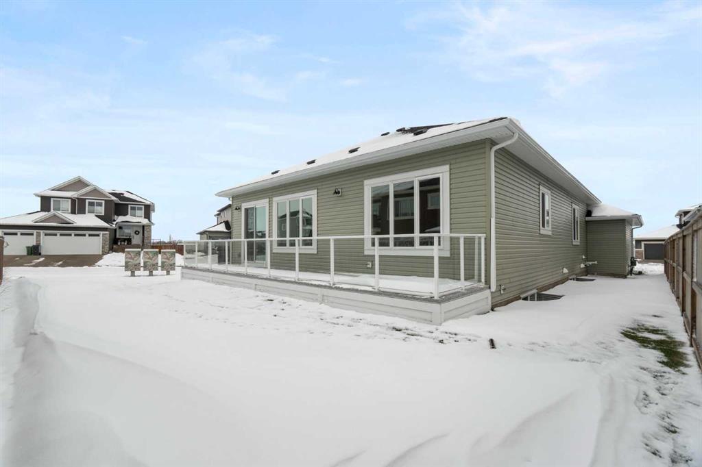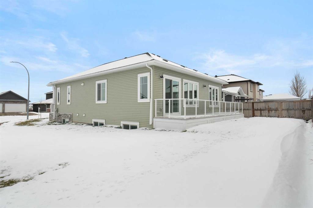 ELIGIBLE FOR FIRST HOME BUYERS GST REBATE! Experience the warmth and comfort of this delightful move-in-ready bungalow situated on a corner lot, in the friendly Lakes Estates community of Strathmore, just a quick 30-minute drive from Calgary. Spanning 3,310 Sq. Ft. of finished space, with a TRIPLE GARAGE, this brand-new home beautifully combines cozy design, thoughtful upgrades, and great value. The heart of the home is the inviting kitchen, complete with stylish gun metal stainless steel appliances, lovely quartz countertops, custom cabinetry, and a spacious island that’s perfect for family meals and gatherings. The open-concept main floor is filled with character, showcasing high ceilings, warm luxury vinyl plank flooring, and large windows that let in an abundance of natural light. With three comfortable bedrooms and two bathrooms on the main floor, plus an additional two bedrooms and two baths in the fully finished basement, this home is perfect for hosting friends, family, or guests. The cozy basement is an entertainer’s dream, featuring a wet bar, a versatile theatre/flex room, and a dedicated space for a home gym, all designed for relaxation and enjoyment. Step outside to the welcoming west-facing backyard, where you’ll find a full-width deck ideal for enjoying peaceful evenings and sunset barbecues. The tranquil pond views across the street add a touch of serenity to your outdoor space. Lakes Estates is a quiet and family-friendly neighborhood, offering plenty of green spaces and walking paths, along with easy access to Highway 1. Enjoy a smoother commute from Strathmore to Calgary, avoiding the busy city traffic.