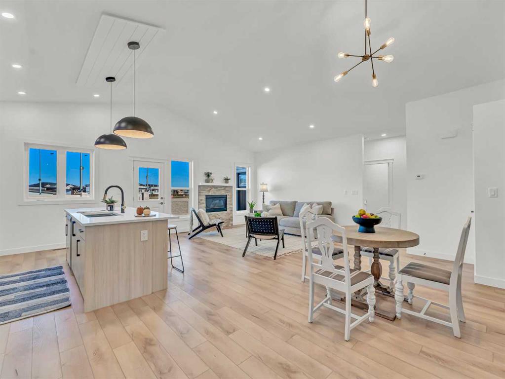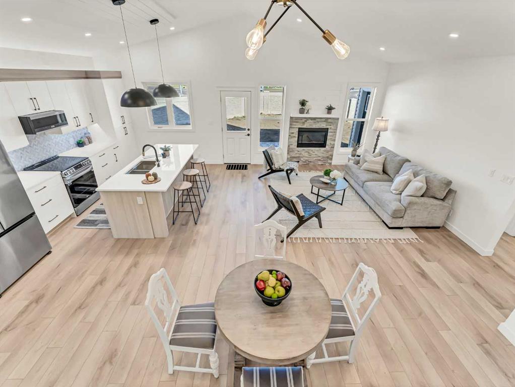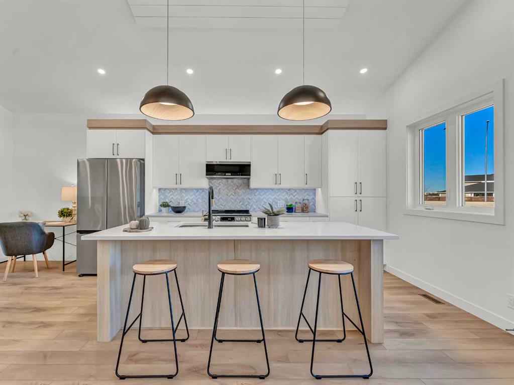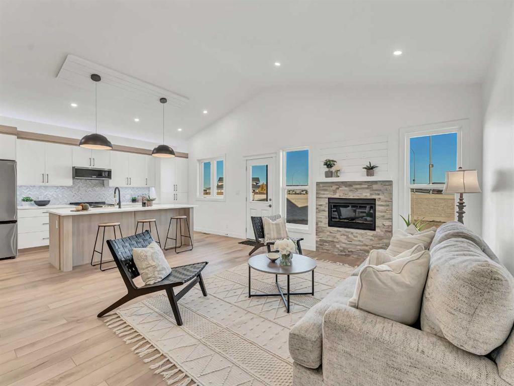 Beautiful NEW CONSTRUCTION modified bi-level in Southridge! Now fully finished inside and out, this impressive home offers over 1,853 sq ft above grade PLUS a fully developed basement, giving you a total of 5 bedrooms and 3.5 bathrooms — the perfect layout for families of all sizes. The spacious front entrance with vaulted ceilings welcomes you into the bright, open-concept kitchen, dining, and living areas. Natural light pours through the large windows, enhanced by vaulted ceilings and gorgeous vinyl plank flooring that runs throughout the home. The stunning kitchen features an abundance of cabinetry, a massive 8' centre island with sink, quartz countertops, tile backsplash, and both above- and under-cabinet lighting. The dining and living areas are generous in size, with the living room offering a beautiful built-in gas fireplace and access to your back deck. The main floor hosts the primary bedroom, complete with a large walk-in closet and a luxurious 5-piece ensuite featuring dual sinks, quartz countertops, a soaker tub, and a separate shower. A convenient 2-piece powder room for guests and main floor laundry complete this level.Head upstairs to the perfect kids’ retreat, featuring two great-sized bedrooms connected by a Jack & Jill 4-piece bathroom with dual sinks. The fully developed basement adds fantastic extra living space, including two additional bedrooms, a full bathroom, and a spacious family/rec room — ideal for movie nights, play space, or hosting guests. Outside, the property is fully fenced and landscaped, with underground sprinklers, making it truly move-in ready. You’ll also love the fully finished and heated triple-car garage and the poured concrete driveway. The builder proudly includes a 10-Year Progressive New Home Warranty and a 1-Year Builder Warranty for peace of mind.