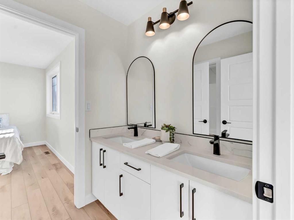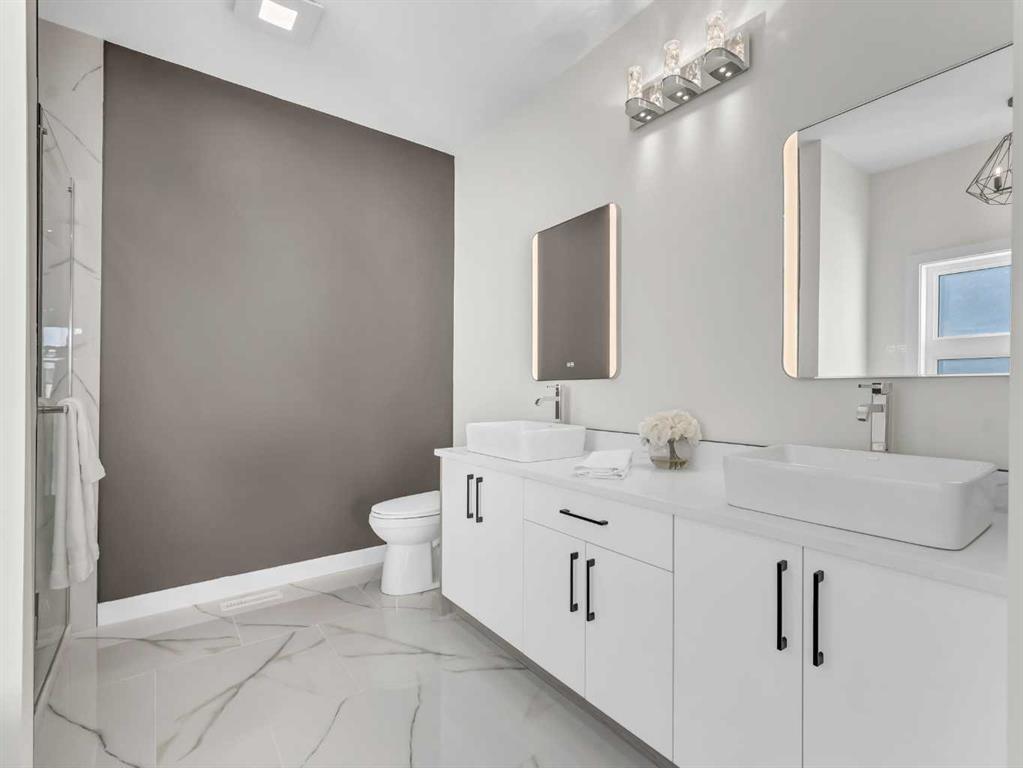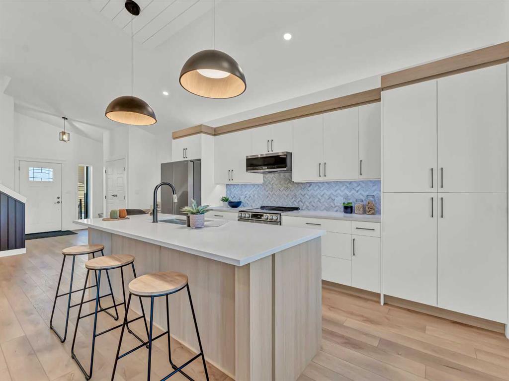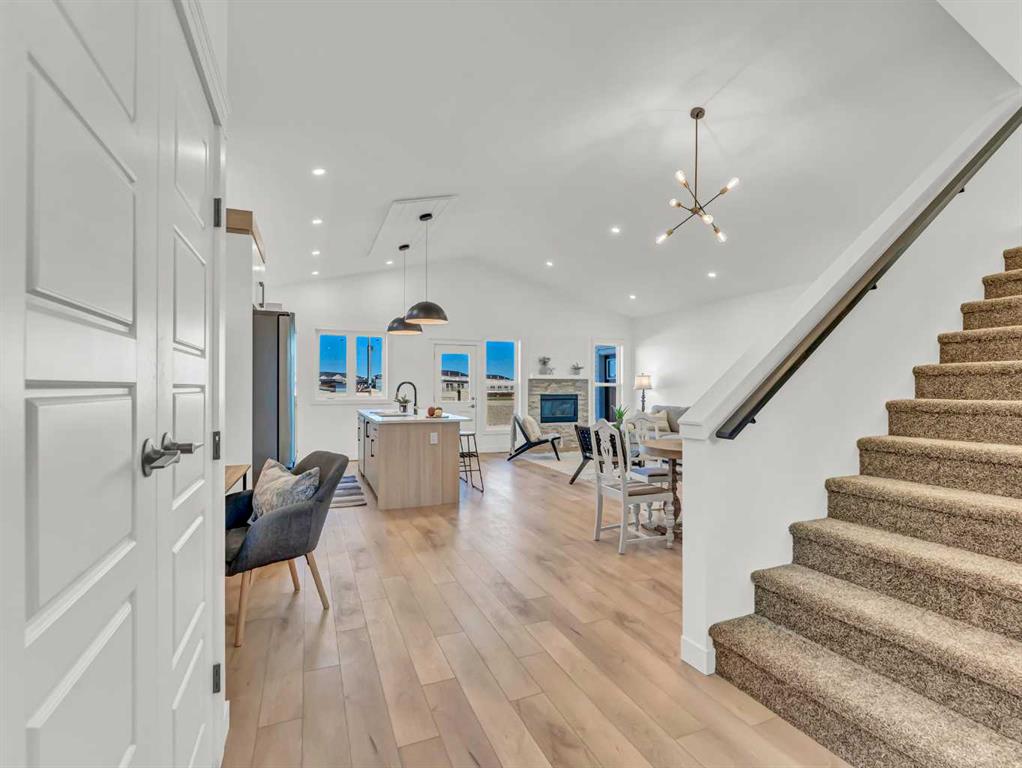 Beautiful NEW CONSTRUCTION modified bi-level in Southridge! Now fully finished inside and out, this impressive home offers over 1,853 sq ft above grade PLUS a fully developed basement, giving you a total of 5 bedrooms and 3.5 bathrooms — the perfect layout for families of all sizes. The spacious front entrance with vaulted ceilings welcomes you into the bright, open-concept kitchen, dining, and living areas. Natural light pours through the large windows, enhanced by vaulted ceilings and gorgeous vinyl plank flooring that runs throughout the home. The stunning kitchen features an abundance of cabinetry, a massive 8' centre island with sink, quartz countertops, tile backsplash, and both above- and under-cabinet lighting. The dining and living areas are generous in size, with the living room offering a beautiful built-in gas fireplace and access to your back deck. The main floor hosts the primary bedroom, complete with a large walk-in closet and a luxurious 5-piece ensuite featuring dual sinks, quartz countertops, a soaker tub, and a separate shower. A convenient 2-piece powder room for guests and main floor laundry complete this level.Head upstairs to the perfect kids’ retreat, featuring two great-sized bedrooms connected by a Jack & Jill 4-piece bathroom with dual sinks. The fully developed basement adds fantastic extra living space, including two additional bedrooms, a full bathroom, and a spacious family/rec room — ideal for movie nights, play space, or hosting guests. Outside, the property is fully fenced and landscaped, with underground sprinklers, making it truly move-in ready. You’ll also love the fully finished and heated triple-car garage and the poured concrete driveway. The builder proudly includes a 10-Year Progressive New Home Warranty and a 1-Year Builder Warranty for peace of mind.