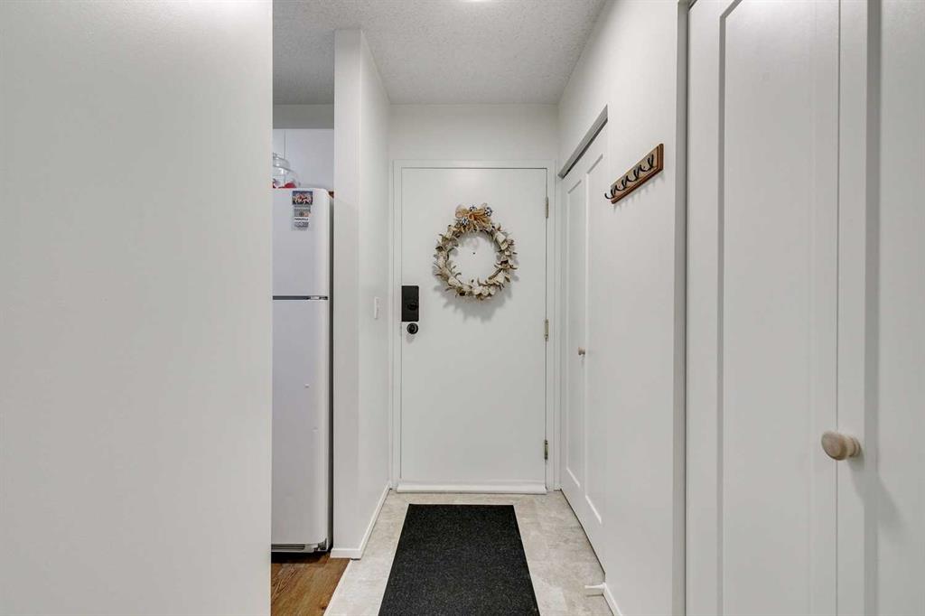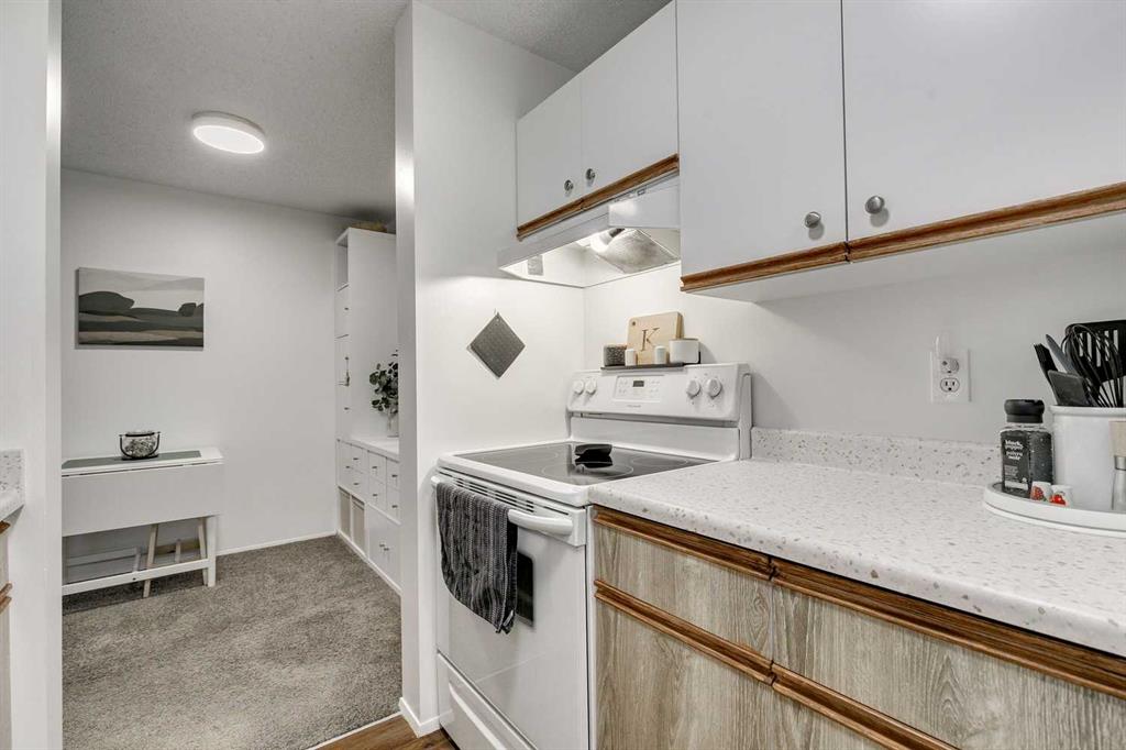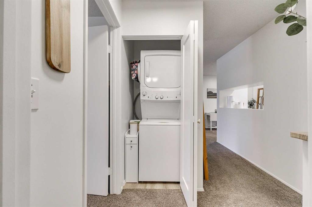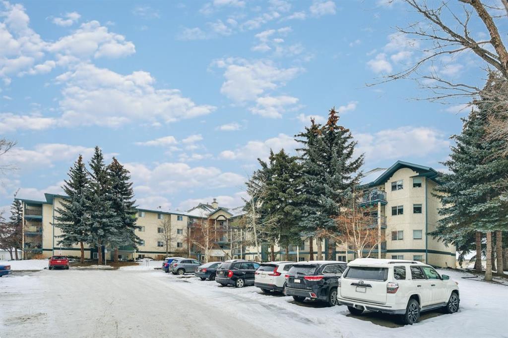 IMMACULATE + TASTEFULLY RENOVATED, POLY-B REMOVED, PET FRIENDLY (large dogs allowed with board approval) 1 bed 1 bath condo with bright, open floorplan in a well managed complex. Upgrades include fresh paint, newer flooring throughout, newer lights, toilet, faucets, drapes, closet doors, thermostat & newer countertops. The good-sized bedroom boasts closet organisers & a sunny east facing window. Laundry room located in-suite with newer washer/dryer & freezer. This open floorplan will easily accommodate a family sized gathering in the spacious dining room + living room. The unit comes with ample storage & furniture items including a large wall unit in the dining room, storage cabinets, shelves, patio furniture & more. Parking stall is located directly in front of the unit’s very private, spacious, covered patio with newer tile flooring & sliding glass door access off the living room. Seconds from Peigan Trail, Deerfoot Trail & the new Ring Road System & minutes from Downtown Calgary not to mention walking distance to shopping, schools, parks, playgrounds & more!