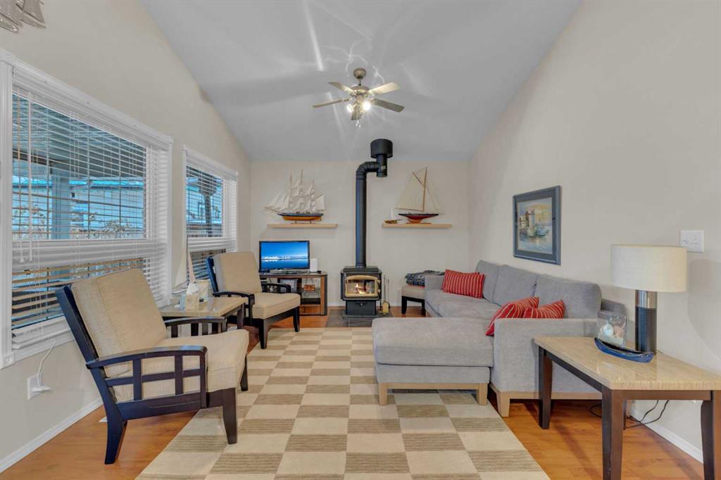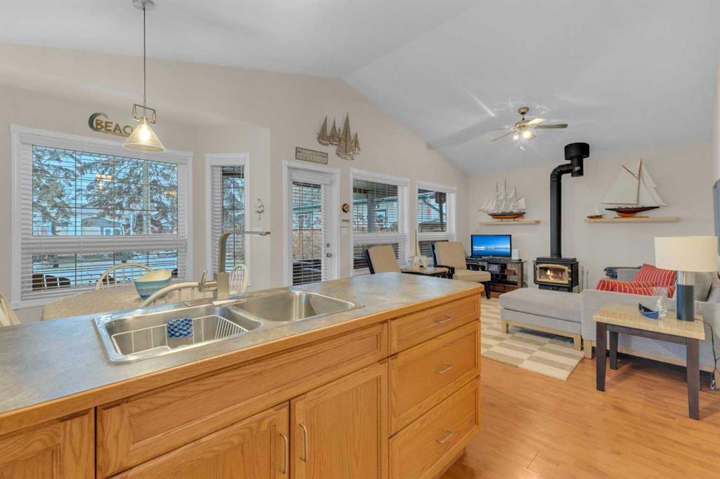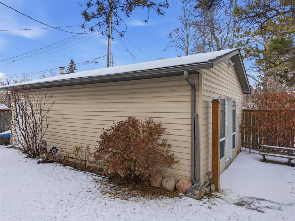 Charming year round Cabin + Studio on one of Sylvan Lake’s Most Sought-After Streets! Nestled in the highly desirable Sylvan Lake Cottage Area, this unique property offers 1,359 sq ft of total living space, featuring an 868 sq ft, 2-bedroom, 1-bathroom cabin along with a 501 sq ft studio that adds an additional space. The bright and versatile studio, equipped with its own furnace, 3-piece bath—an ideal setup for guests and extended family. This space is also perfect for crafts, hobbies, music enthusiasts, or anyone needing a creative retreat. Step into the main cabin’s inviting vaulted-ceiling great room, complete with a full kitchen and pantry, spacious dining area, cozy wood-burning stove, and laminate flooring throughout. The layout flows effortlessly to a generous primary bedroom, a second bedroom, and a well-appointed 4-piece bathroom. A 4-ft poured concrete basement houses the furnace, water softener, and sump pump, providing ample clean, dry storage. Sitting on a 40’ x 140’ lot, the property showcases one of the area’s largest gardens, surrounded by mature evergreens and enhanced by professional landscaping with flowers blooming in stages from spring through fall. The fully fenced and exceptionally private yard can be enjoyed from the covered, oversized deck that spans the width of the home—perfect for morning coffee or evening relaxation. All appliances, blinds, fixtures, a full-size washer and dryer, and a water softener are included, allowing you to simply move in and start enjoying lake life. This lovingly maintained property is in exceptional condition, offering a rare turnkey opportunity filled with comfort, charm, and incredible potential—right in the heart of Sylvan Lake.