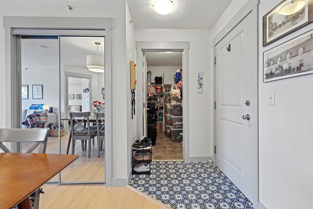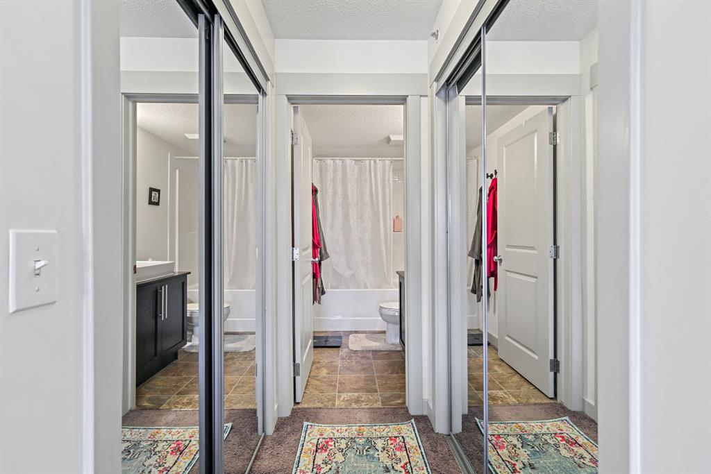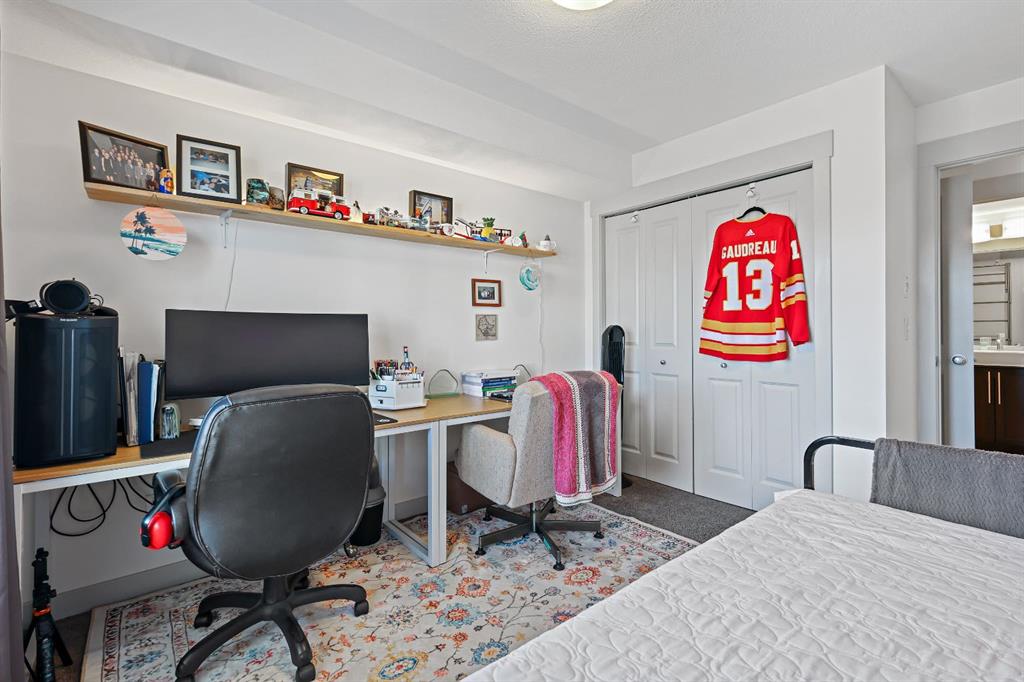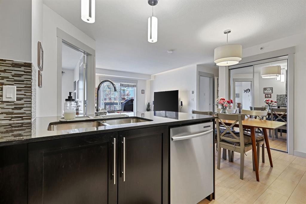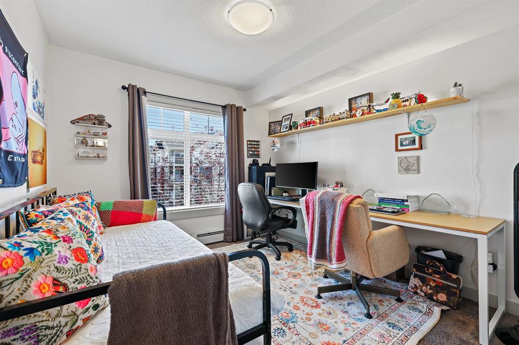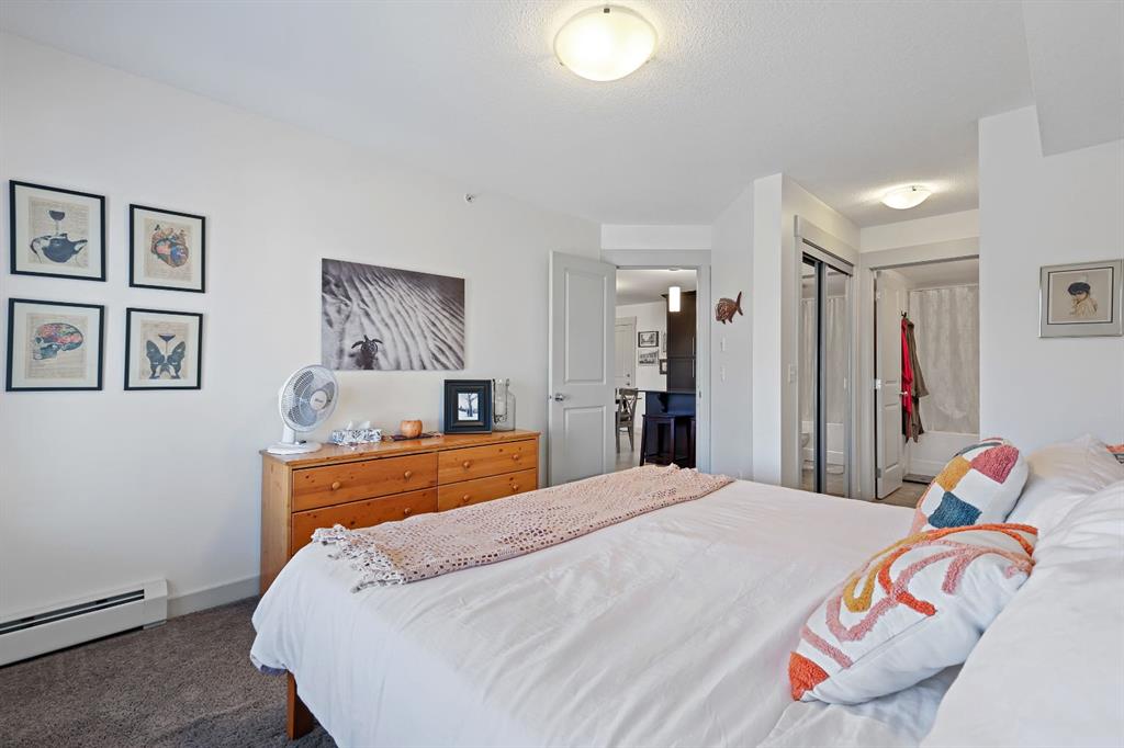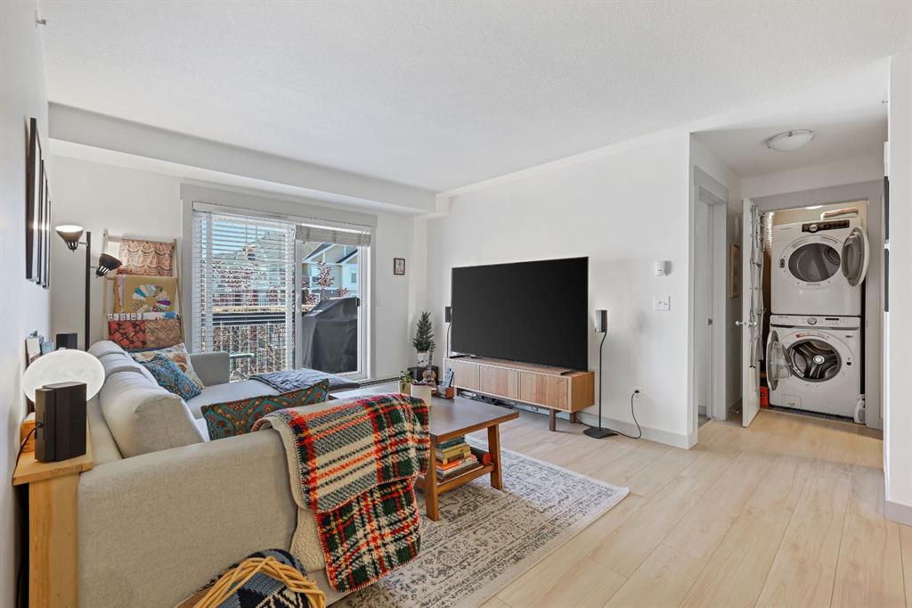 Just Listed at $275,000—this upgraded top-floor 2 bedroom, 2 bathroom plus den condo in Skyview Ranch NE offers exceptional value and modern living. Located at 155 Sky View Ranch Way NE, this bright and freshly updated unit features new paint and flooring, an east-facing exposure that fills the space with natural morning light, and an open-concept kitchen complete with stainless steel appliances, quartz countertops, a built-in pantry, modern tile backsplash, and upgraded pendant lighting. The spacious primary bedroom fits a king-sized bed and includes a walk-through closet leading to a private ensuite, while the second bedroom is also large enough for a king-sized bed perfect for family, guests, or a roommate. The central living area provides ample room for dining and relaxation, complemented by the convenience of in-suite laundry. Additional features include heated underground parking and an assigned storage locker. This stylish and move-in-ready home offers comfort, convenience, and excellent value in the highly desirable community of Skyview Ranch NE.