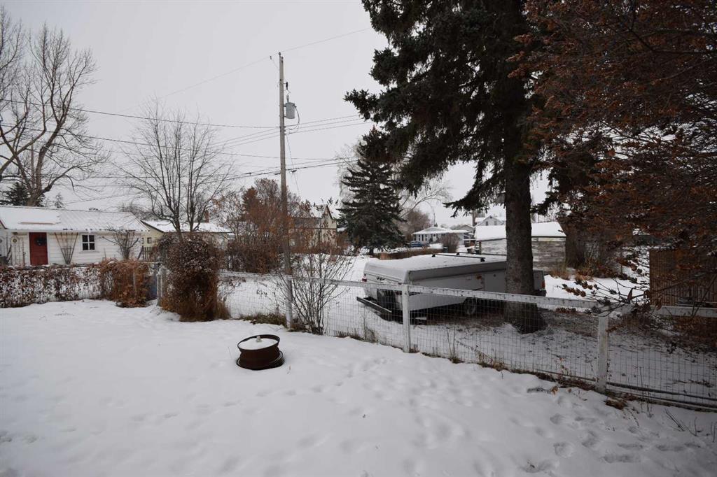 Fantastic location with timeless charm! This inviting home sits on a beautifully treed, oversized lot filled with mature growth including plenty of lilac bushes for seasonal colour and privacy. Inside, the spacious living room offers a large window and hardwood floors. The functional kitchen provides a good amount of counterspace, while the separate dining room easily accommodates a full-size table. Sunny south-facing sunroom doubles as the laundry area and a main-floor office/computer room adds valuable flexibility. Upstairs you’ll find two generous bedrooms and a 3-piece bathroom. The basement is undeveloped and ready for your future ideas. Enjoy peace of mind with a newer furnace and hot water tank. Single car garage. Outside features a mature, mostly fenced yard, fire pit, deck and plenty of extra parking. All of this in a prime location - close to the elementary and middle school, walking distance to downtown shopping and with the local museum and basketball court practically at your doorstep. Forty minutes to Cross Iron Mills Mall, under a hour to The Foothills Hospital and an hour to Red Deer.