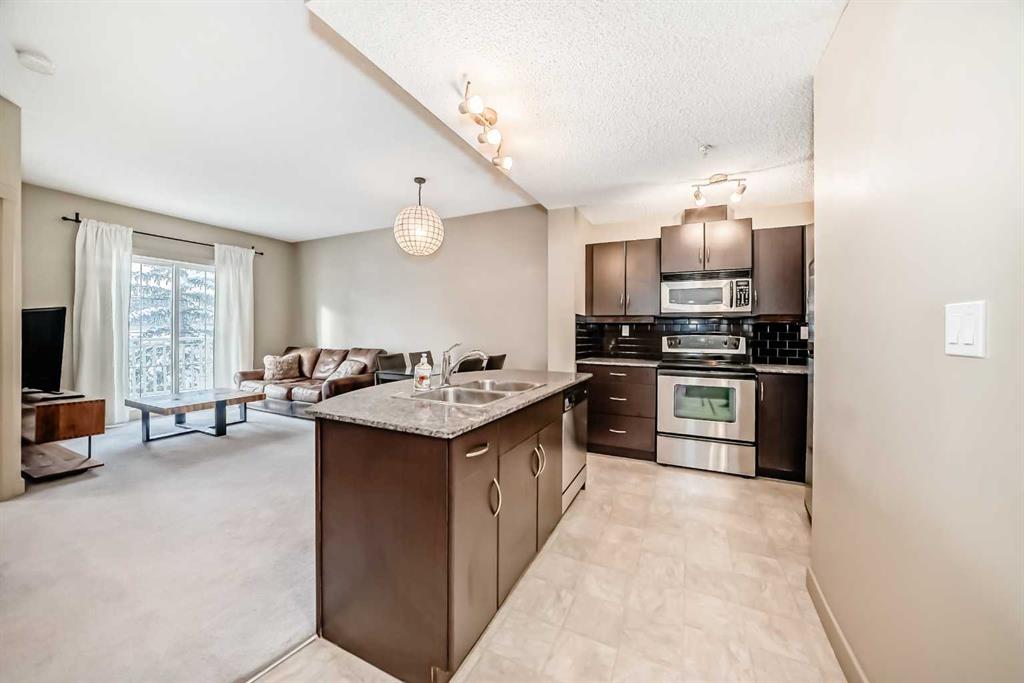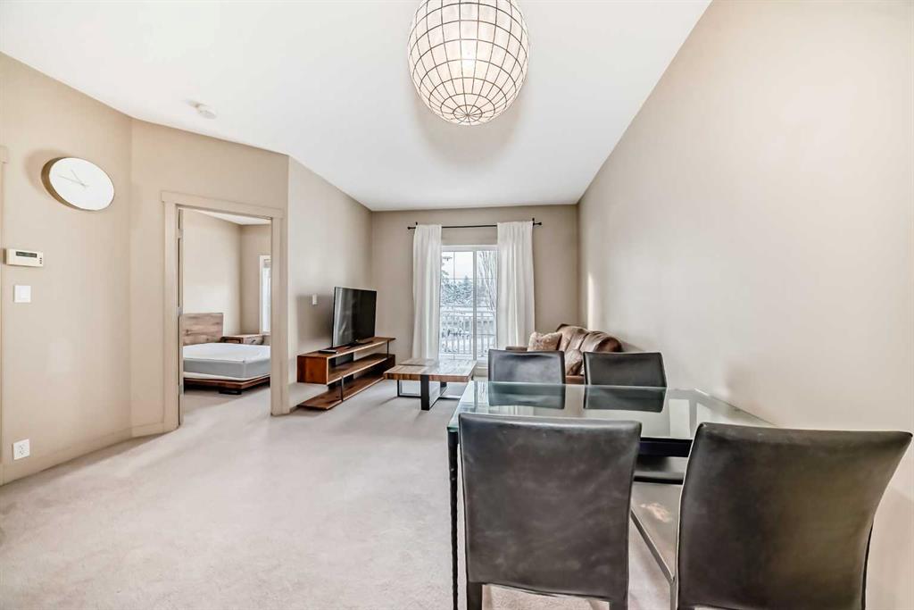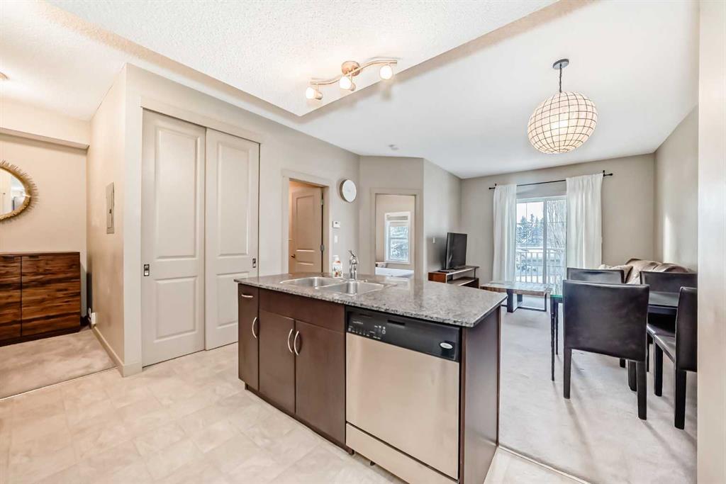 Stylish and bright SW-facing 1-bedroom + den in the coveted Gateway Garrison Green. This upgraded unit features 9 ft ceilings, granite countertops with a breakfast bar, stainless steel appliances, subway tile backsplash, and contemporary lighting with under-cabinet accents. Enjoy the convenience of in-suite laundry, a spacious private balcony, and heated underground parking. The primary bedroom offers a walk-through closet leading to a well-appointed 4-pc bathroom with an oversized vanity. Gateway Garrison Green is a quality concrete building loaded with amenities, including a fully equipped gym, yoga studio, party room, two guest suites, bike storage, 40 underground visitor stalls, and two beautifully maintained courtyards. Monthly condo fees of $328 include heat, electricity, water/sewer, insurance, management, recreation facilities, and exterior maintenance. All of this in an unbeatable location—steps to MRU, close to shopping, schools, Marda Loop, and minutes to downtown. A must-see unit offering exceptional value and lifestyle.
