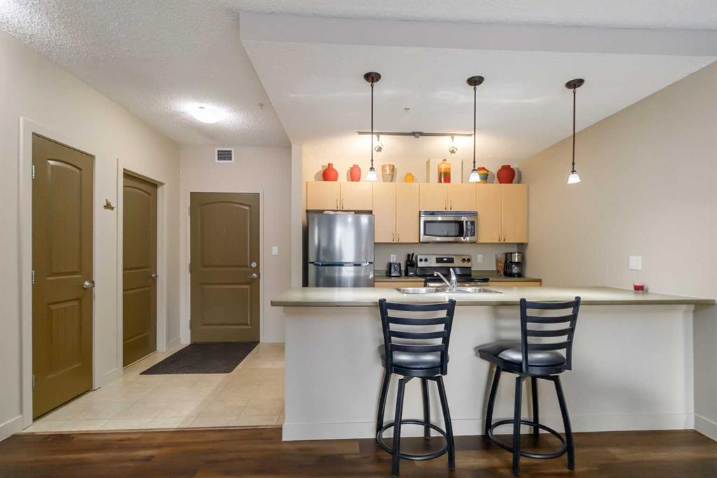 Welcome to The Peaks at Eagle Ridge — one of Fort McMurray’s most sought-after concrete condo developments! This beautifully refreshed 2-BEDROOM, 2-BATHROOM, unit offers exceptional privacy and natural light throughout the day. Located on the 2nd floor, it features an open-concept layout that blends comfort and functionality for everyday living. Inside, you’ll love the FRESH PAINT, BRAND NEW LUXURY VINYL PLANK FLOORING, stainless steel appliances, and air conditioning, creating a clean, modern feel the moment you walk in. The primary bedroom includes its own ensuite, while the second bedroom and full bathroom make this ideal for small families, roommates, or those working from home. This well-managed concrete building provides excellent soundproofing, security, and premium amenities including air-conditioned hallways, fitness rooms, a car wash bay in the heated underground parkade, and even an outdoor playground for children. The unit also comes with one titled UNDERGROUND HEATED PARKING STALL and assigned storage, ensuring comfort year-round. Condo fees cover professional management, exterior maintenance, snow removal, reserve fund contributions, heat, sewer, water, building insurance, and garbage pick-up. Perfectly situated in Eagle Ridge, you’re just steps from walking trails, shopping, restaurants, bus routes, schools, parks, and more. Immediate possession available — don’t miss your chance to own a sun-soaked, move-in-ready condo in one of Fort McMurray’s best communities. Contact today for your private tour!