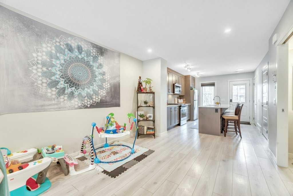 This 2-bedroom townhouse is perfectly located just steps to playgrounds, dining, entertainment, and more. Step inside to an open-concept main floor with luxury flooring, a bright living space, and an inspiring kitchen complete with quartz countertops, modern cabinetry, and a large island — perfect for entertaining. The spacious primary suite includes a private ensuite for convenience and comfort. The second bedroom, and additional full bathroom give plenty of room for family or guests. Upstairs, is a third-level loft ideal for entertaining guests, having a great upper level home office, bonus space, or a games room which features a wet bar and access to a private rooftop patio with unobstructed views. Whether in the morning the evening, this is the ultimate place to settle, unwind or visit with friends. Well priced and great value …….don’t miss this opportunity to make this your home.