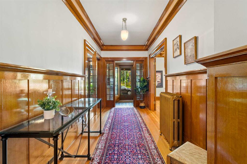 Situated in the heart of Calgary’s renowned Cliff Bungalow neighborhood, combines historic charm with modern comfort and unbeatable convenience. Explore vibrant restaurants, cafés, boutique shops, and the lively energy of 4th Street and 17th Avenue, while scenic river pathways, downtown amenities, and everyday conveniences are all just steps away. The home is also just a short walk from Western Canada High School, one of the city’s top public schools offering the International Baccalaureate (IB) program, —making location one of the home’s greatest highlights. This rare 5-bedroom home with 10ft ceilings features thoughtful upgrades, including a fully refreshed wrap-around verandah with new wood flooring, updated venting pipes, refinished kitchen taps, basement has in floor heating, a mostly new hot water tank, new basement flooring. The boiler has been replaced with an efficient model. and a new cedar shake roof was installed in 2019 at a cost of over $60,000, All old knob-and-tube wiring has been removed and replaced with modern electrical systems and a steam shower for added modern comfort . All original main-floor woodwork has been carefully cleaned and refinished with high-gloss varnish, preserving its historic integrity. Each room features individual thermal control, with a total of 8 thermostat-controlled zones throughout the house, ensuring personalized comfort in every space. Over $200,000 in renovations give this cherished historic home a renewed appearance that honors its heritage while offering modern functionality and comfort. Inside, the home opens to a grand oak-clad hallway and a flowing floor plan highlighted by original quarter-sawn oak millwork, built-in cabinetry, and beveled-glass windows that showcase the craftsmanship of the period. The dining room leads to a sunroom with leaded glass windows, while the kitchen is equipped with floor-to-ceiling built-ins and a functional dumbwaiter. The grand living room features a striking fireplace, and the master suite offers a luxurious soaking tub. Dedicated leisure spaces include a poker room and a lower-level recreation area with ping pong and pool tables, a wet bar, and lounge space. Historic elegance, modern comfort, and an unbeatable location—all in one home.