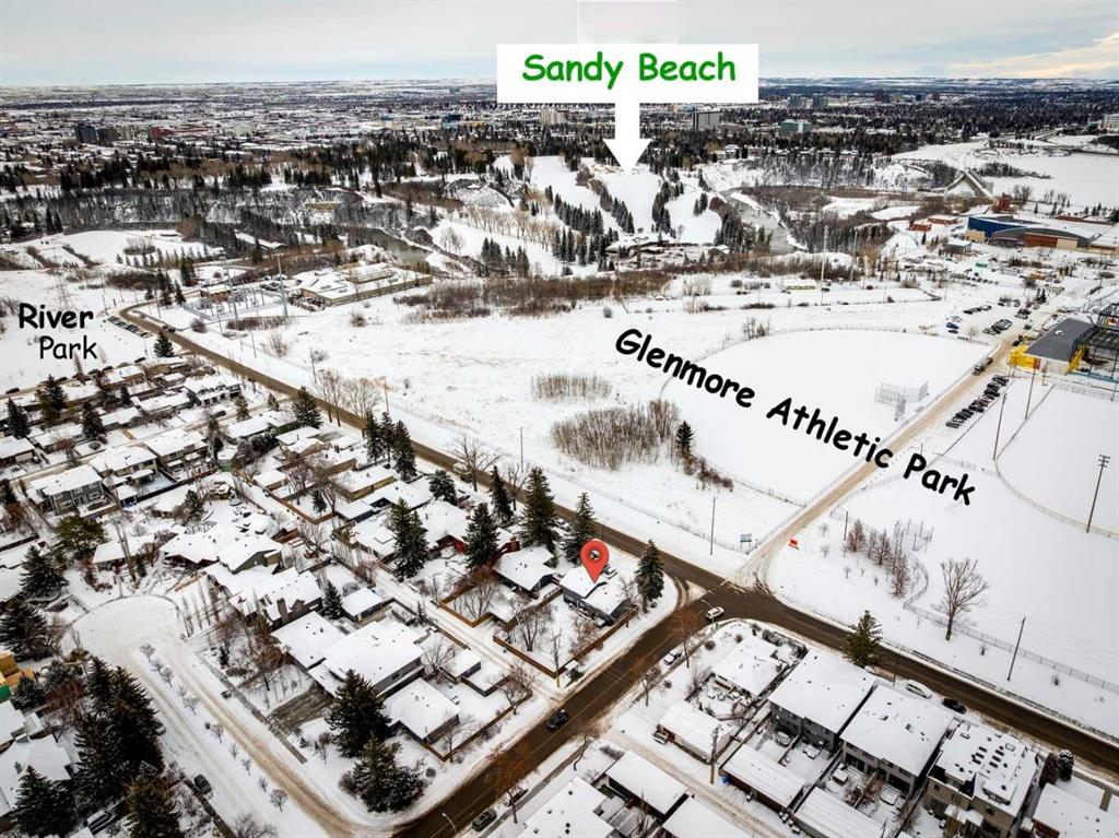 Offers subject to viewing. Incredible opportunity to redevelop this 63'x121' corner lot facing Glenmore Athletic Park and only steps to River Park, Sandy Beach and Altadore Elementary School. Zoned RCG, this property offers an array of redevelopment opportunities. This super solid 4-level split with a single attached garage and five bedrooms offers a very livable home (current owners have been here for 14 years). Hardwood floors, open kitchen with replaced cabinets, granite countertops, newer backsplash and stainless steel appliances. Renovations to both baths, a beautiful full-height fireplace in the living room, a finished lower level with two bedrooms, a family room, and a small gym/flex room. New roof, newer on-demand boiler, high-efficiency furnace and more. Excellent holding property or redevelop now. Note: The access road to Glenmore Athletic Park across the street will be permanently closed. Offers are subject to viewing. Call Jon if any questions 403-827-9499. Offers are subject to viewing. No sign on property.