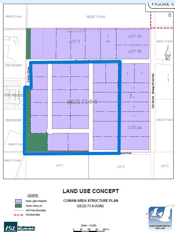 Rare de-risked industrial land on Grande Prairie's thriving West end. This 85 acre parcel is one of the most development ready sites currently available. The Area Structure Plan is fully approved, providing a clear path to subdivision and development for 25 market ready industrial lots. All major hurdles are cleared, the land already boasts major paved access roads and the high cost of transportation levies are paid in full. Located strategically just outside city limits, the site offers superior speed-to-market and immediate infrastructure advantage for a developer or end-user seeking a substantial foothold in the economic hub of Northern Alberta.