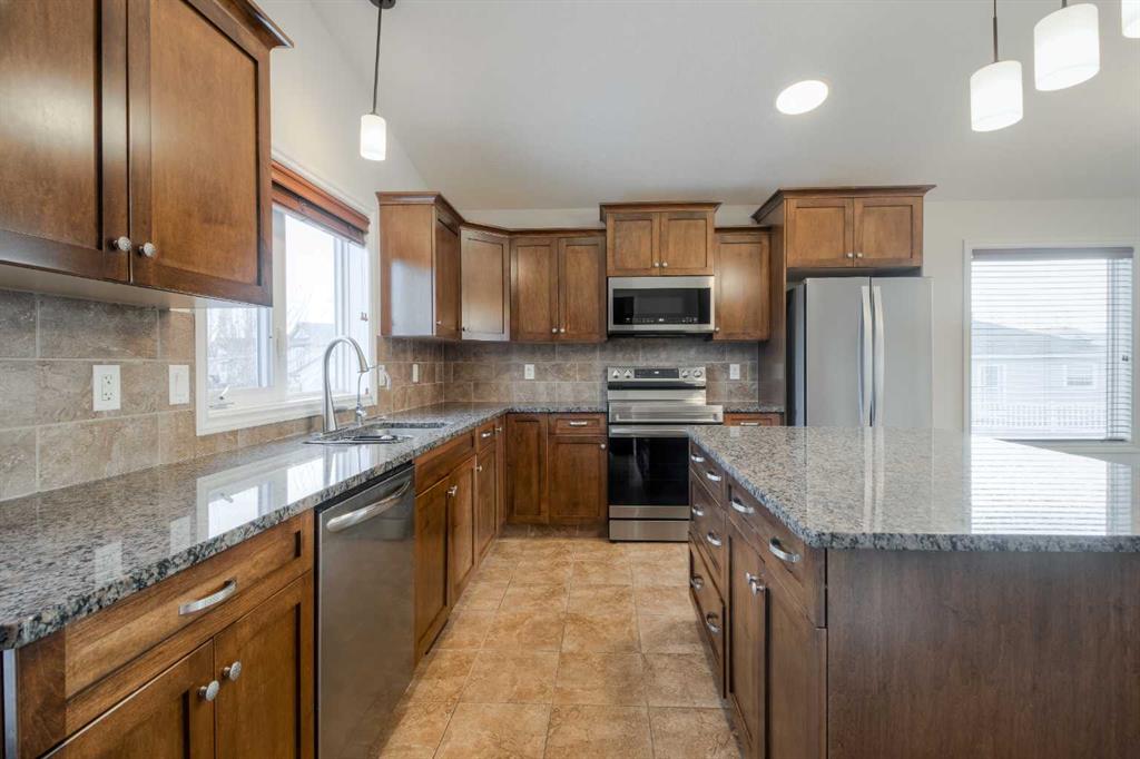 Welcome to 11 Cougar Cove North! This large bi-level home is located on a quiet street in the north Lethbridge community of Uplands. The main floor includes rich wood tones of maple cabinets, real hardwood floors, and spindle wood railings. Vaulted ceilings through the main floor living room, dining room, and kitchen provide a wide open feel accented by large windows that send natural light through this area. Two bedrooms and a 4-piece bathroom can be found on the main floor with the laundry room conveniently located adjacent to all. The secluded primary bedroom is located over the attached double garage and houses a large ensuite and walk-in closet. The basement in this bi-level is fully developed and is home to one of the largest family rooms you'll find at almost 750 square feet! You'll also find another bedroom in the basement as well as a full 4-piece bathroom and storage room. A solid home with plenty of space on a fully fenced large yard with alley access. Nothing to do but move in and enjoy.