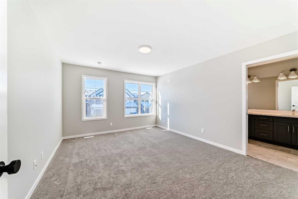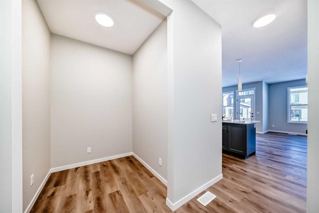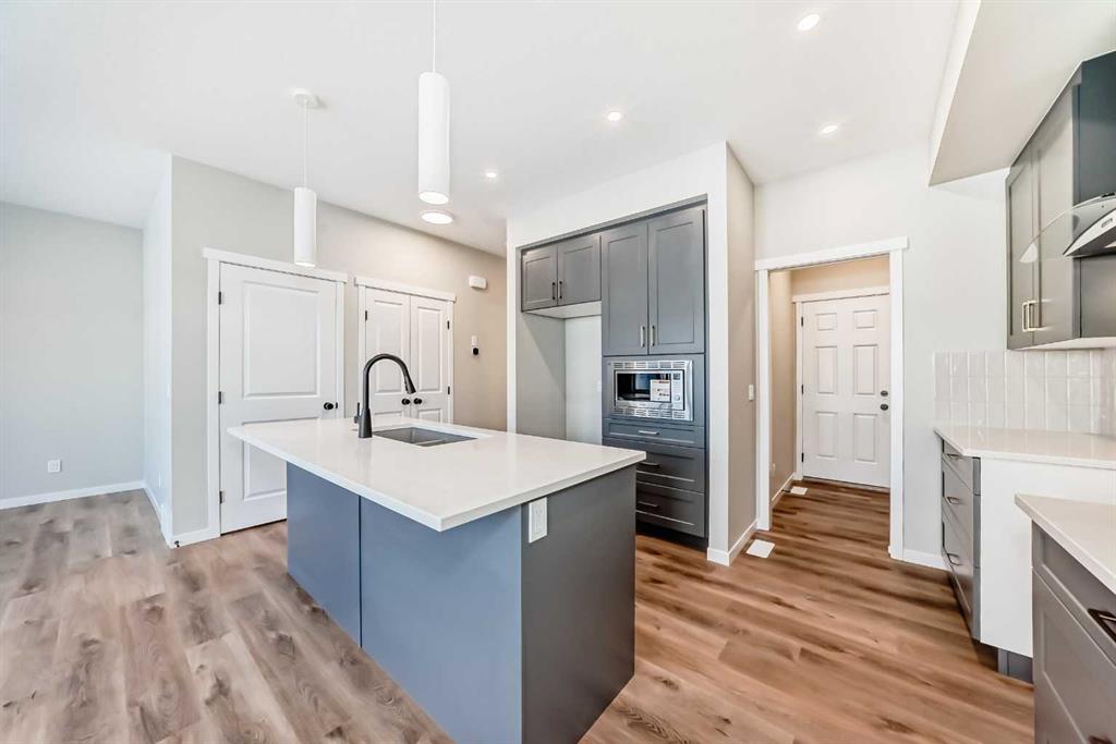 **OPEN HOUSE SAT & SUN DEC 13th & 14th 1-4 PM** Introducing the “Carisa” by Hopewell Residential—an exceptionally designed home where smart upgrades, modern finishes, and functional living spaces come together beautifully. Located on a quiet street in the growing southeast community of Rangeview, this home sits on an oversized lot with a east-facing backyard that’s perfect for soaking in morning sun with coffee, relaxing evenings, or entertaining outdoors. An exterior gas line makes it ready for your future BBQ setup. Inside, the main floor greets you with a spacious and light-filled layout, featuring luxury vinyl plank flooring and knockdown ceilings that carry a clean, stylish look throughout. The open-concept design connects the upgraded kitchen, extended Lifestyle room/Dining Room & cozy living area seamlessly—ideal for everyday life and hosting. The kitchen is a showstopper with the upgraded kitchen layout including quartz countertops, upgraded & modern grey cabinetry, a chimney hood fan, built-in microwave, pot lighting & stainless steel appliances. A smartly positioned pocket office near the front entrance offers a quiet, tucked-away space perfect for remote work or homework. Upstairs, a versatile entertainment room is enhanced by an added stairwell window, bringing in even more natural light. The centrally located laundry room adds everyday convenience. The spacious primary suite features a large walk-in closet and a 4-piece ensuite with fully tiled shower walls. Two additional bedrooms round out the upper level, offering great flexibility for families or guests. This home also includes a 9-foot foundation and a separate side entrance—opening the door to future development or potential suite possibilities (A secondary suite would be subject to approval and permitting by the city/municipality). EV charger and solar panel rough-ins are also included, adding future-ready value. If you're looking for a home that balances thoughtful design, upgraded features, and long-term versatility—this one checks every box. Located in Calgary’s desirable southeast, Rangeview is more than just a neighbourhood—it’s a community built around connection, sustainability, and a shared love of food and nature. Inspired by Alberta’s rich agricultural heritage, Rangeview is Calgary’s first garden-to-table community. Residents are encouraged to engage in food growing and sharing through community gardens, orchards, and future culinary events. The community is designed with people in mind: walkable streets, regional pathways, green spaces, and a central gathering area called Market Square, anchored by Harvest Hall—a future hub for farmers’ markets, local food festivals & community programs. You’re also close to Seton and Mahogany amenities, including the world’s largest YMCA, South Health Campus hospital, top-rated schools, and a wide range of shops and restaurants—offering all the urban conveniences within minutes of your doorstep.