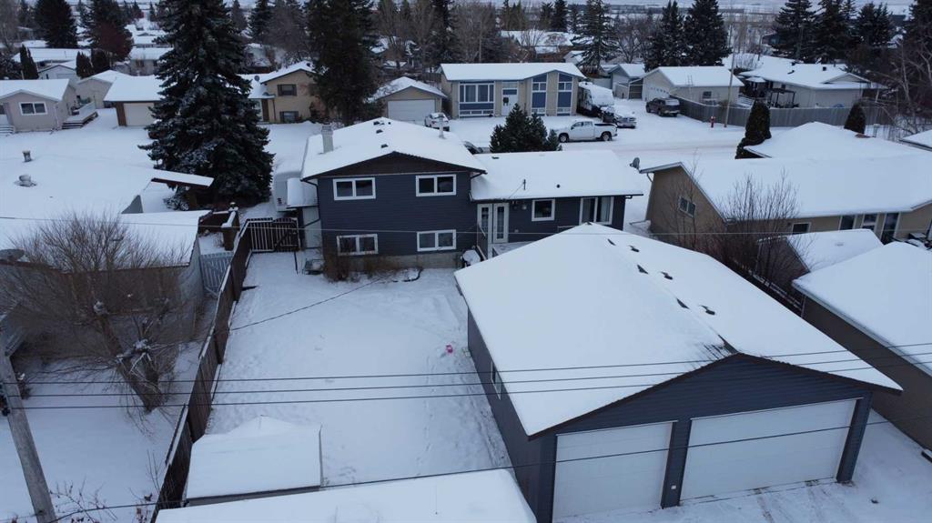 This beautiful four-level split family home offers 1,176 square feet of comfortable living space above grade, with the same amount of space below grade. It has been thoughtfully updated throughout for modern convenience. Featuring four spacious bedrooms and two full bathrooms, the layout is ideal for families, with a separate entrance to the third level providing flexibility for guests or extended family. The property offers abundant storage options and impressive outdoor amenities, including RV parking in the back. A standout feature is the massive 30' x 30' three-car garage, complete with 10' ceilings and two roll-up doors—one measuring 10' wide by 9' tall and the other 16' wide by 9' tall—perfect for vehicles, hobbies, or a workshop. Located just steps from the K-12 school, arena, and swimming pool, this home combines practicality, space, and unbeatable convenience in a family-friendly neighborhood. Call today to book your viewing.