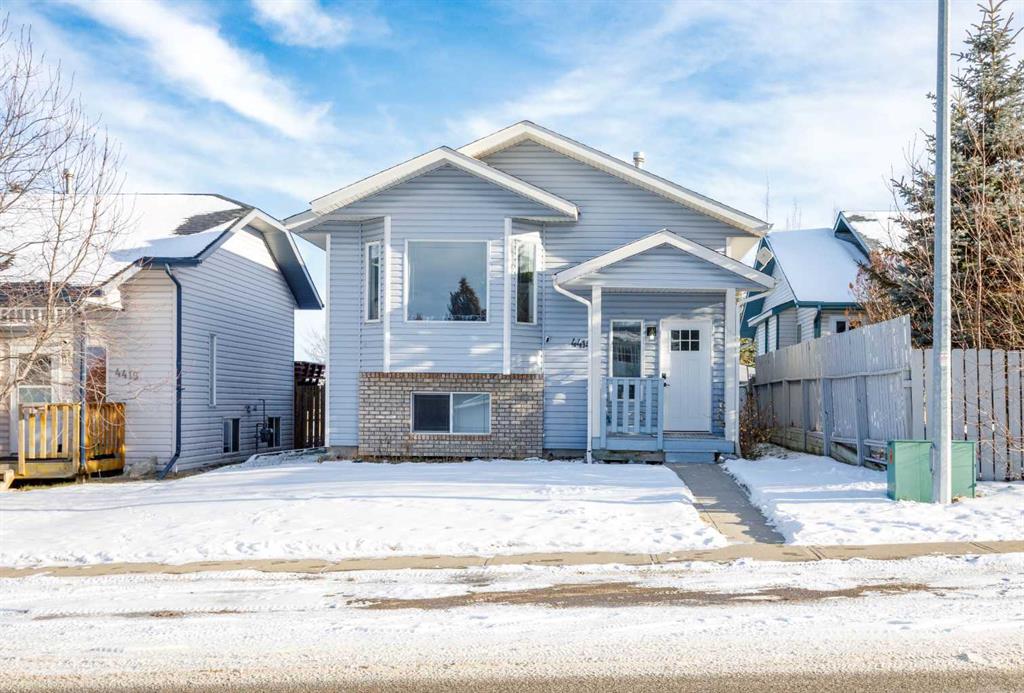 Discover your perfect starter home at 4414-48 Ave in Innisfail, Alberta—a charming 975 sq ft bilevel built in 2003, freshly updated and move-in ready! The main floor shines with brand-new vinyl plank flooring, updated lighting, crisp new trim and modern doors, and fresh paint throughout, complemented by airy vaulted ceilings, two bright bedrooms, and a full 4-piece bathroom. The partially developed basement, with framing and some drywall already in place, offers a canvas for the next owner to customize, finished framing includes a family room and bedroom. Outside, enjoy a beautifully landscaped yard and a convenient rear parking pad. Perfectly located just steps from Innisfail’s top amenities: walk to Chinook Trail Elementary and Grimshaw Elementary, a quick drive to Innisfail High School, and minutes from the Innisfail Aquatic Centre, arena, curling rink, and Dodd’s Lake for year-round recreation. This affordable gem won’t last—schedule your showing today!