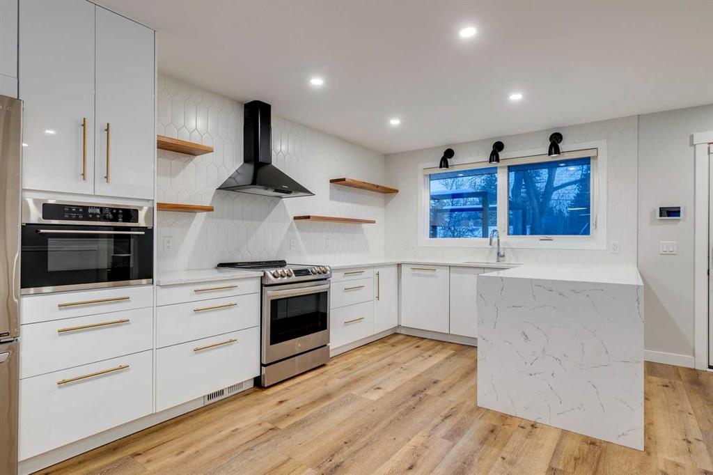 *** Open House - Saturday December 13th from 2-4PM and Sunday December 14th from 12-2PM *** Welcome to our beautifully remodelled bungalow in the highly coveted community of Lakeview. The bright and modern main level is showcased with vaulted ceilings, floor to ceiling windows, and a warm and inviting gas fireplace in the living area. The open concept design allows seamless transition into the kitchen and dining area, complete with stainless steel appliances, a granite waterfall countertop and a full height pantry. A bespoke powder room sits just off the main living area before you walk down the hallway, where you will find a contemporary 4 piece bathroom, and three bedrooms, all with new carpet. Each room has new large casement windows with coverings, and recessed lighting. Downstairs you’ll find an oversized and secluded gym area with plenty of storage, before entering the family room, complete with electric fireplace and trendy hearth. A wet bar is roughed in, should you choose to complete the rec room conversion, perfect for entertaining and game nights. Down the hall you’ll find another 3 piece bathroom with full shower and niche, two additional bedrooms, and a finished laundry room, with sink and central vac system. This stunning home underwent extensive renovations completed in 2023, including new windows and James Hardie siding, as well as new soffits, gutters and roofing. The beautiful front yard is complete with low maintenance hardscape and a patio, perfect for your morning coffee. The backyard boasts a large deck with pergola as well as a fresh lawn and beautiful landscaping. Mature trees in both the front and back add extra privacy and serenity to the outdoor spaces, perfect for relaxation or hosting. The oversized double garage is insulated and finished, giving it a clean and open aesthetic, complete with work bench, storage cabinets and 220V power. Situated on a secluded crescent, but just minutes from Crowchild and Glenmore, this is truly an unbeatable location. Lakeview and Earl Grey Golf Clubs, North Glenmore Park and the Glenmore Athletic Park are all within walking distance, along with numerous schools, parks and walking paths. Don’t miss your opportunity to check out this gorgeous property; reach out to your realtor today to book a showing before it’s too late!