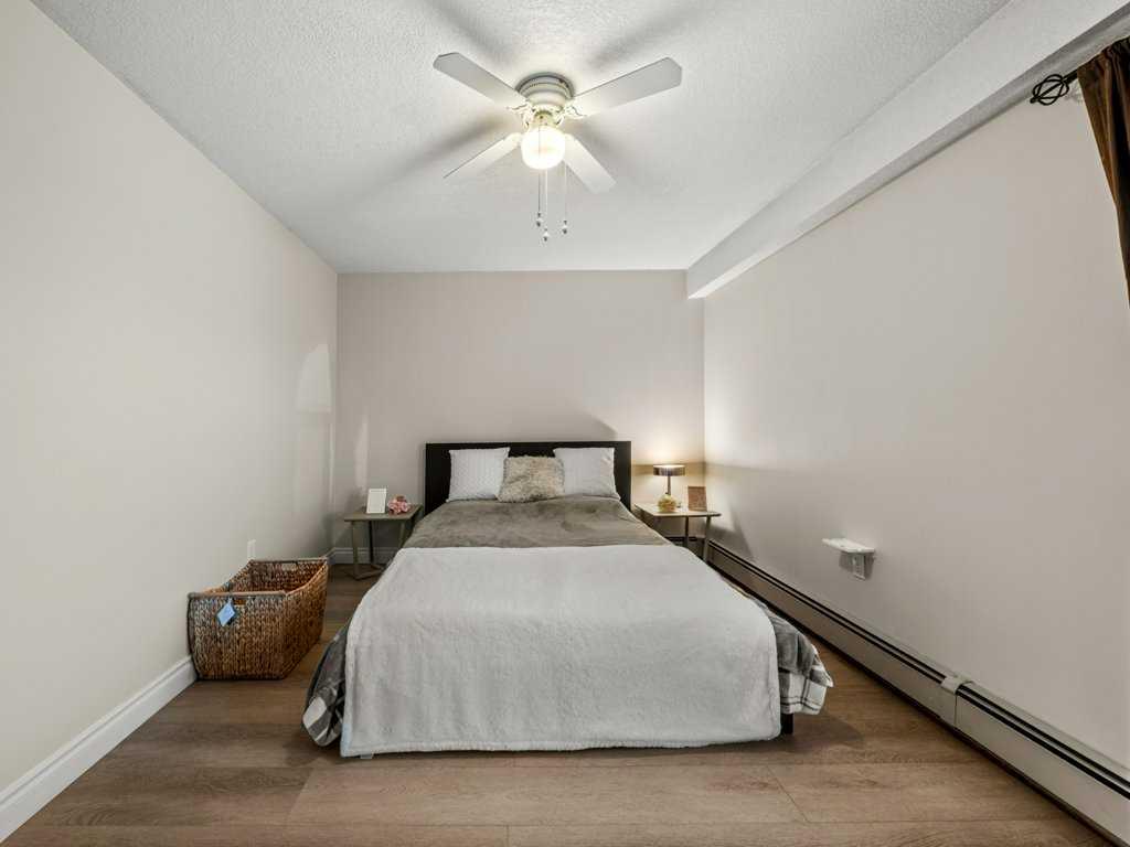 Discover this sun-soaked, top-floor urban retreat in the heart of Sunalta—just 250 m from the Sunalta LRT and an easy stroll to groceries, restaurants, and downtown. Welcome to The Barcelona, a pet-friendly, professionally managed building with a proactive board and a healthy reserve fund (even a recent operating surplus!). Step inside and feel the pride of ownership. This meticulously maintained 2-bedroom condo has been thoughtfully upgraded with a deep acrylic soaker tub and temperature-controlled Moen faucet/shower, new vinyl plank flooring in the bedrooms, and brand new vinyl windows (installed early 2025). It’s even been professionally cleaned to impress the most discerning buyer. The airy, open-concept layout offers plenty of room to relax and entertain, featuring easy-care ceramic tile flooring, neutral paint tones, knock-down ceilings, gleaming maple cabinetry, and an eye-catching wood-burning fireplace with a reclaimed wood mantle—perfect for cozy evenings in. A spacious primary bedroom, second bedroom, in-suite laundry, and 4-piece bath complete the interior. Step out onto your generously sized south-facing balcony, recently refreshed with a new waterproof membrane, privacy glass, and aluminum railings—ideal for soaking up the sun or taking in the sunset. This well-cared-for building has seen major updates too, including the complete removal of all Poly-B plumbing (2019–2022) and wired for Telus fibre and Shaw/Rogers high-speed internet. Your unit comes with a heated, secure underground parking stall and a large lockable storage shed—big enough for tires, skis, sporting gear, or even a bike. Additional perks include bicycle storage and a main-floor parcel locker for convenience and peace of mind. Both TVs and mounts are included, along with all window coverings—and the seller is happy to leave furnishings for the lucky new owner. This is a rare turn-key opportunity perfect for a young professional, student, or first-time buyer seeking style, comfort, and unbeatable location.