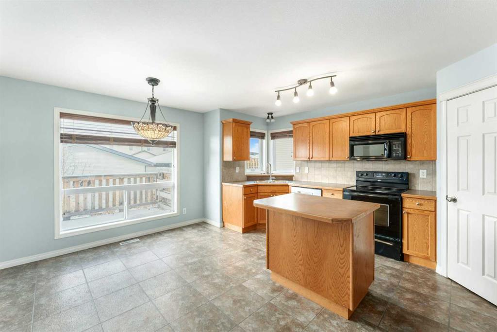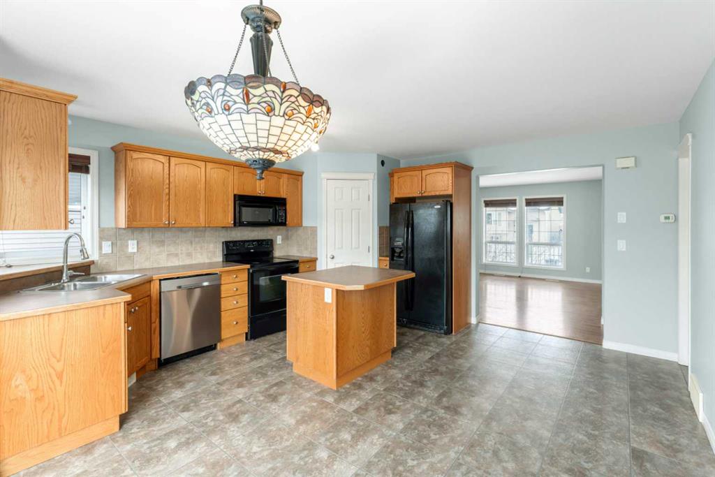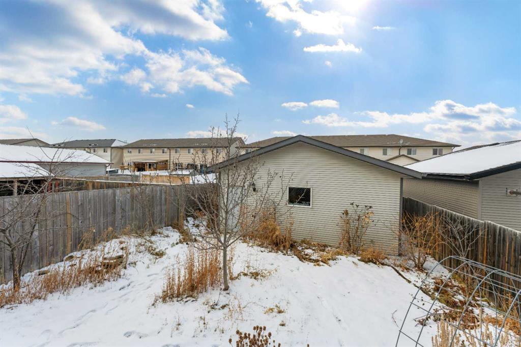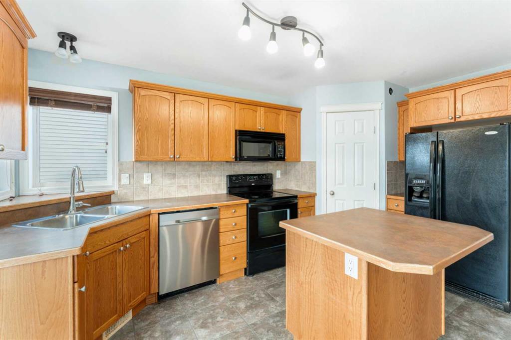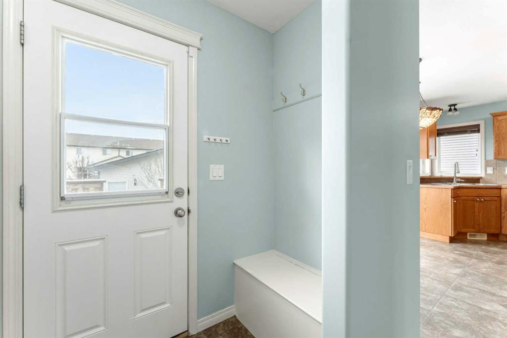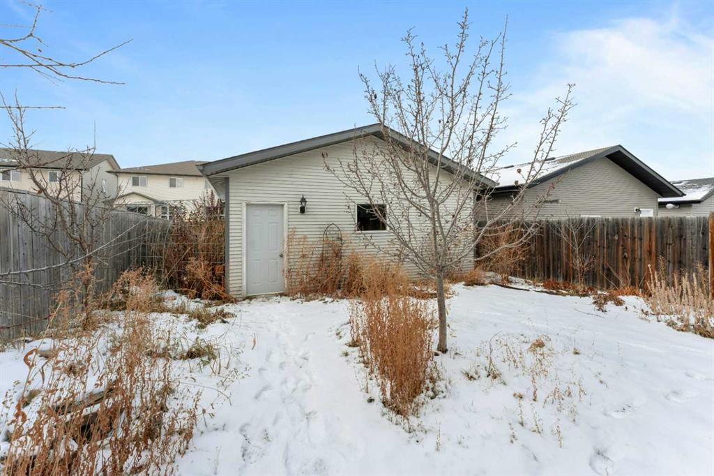 Charming Two-Storey Home in Lakeway Landing on a Quiet Cul-de-Sac with a double detached garage! Welcome to this warm and inviting 2-storey home perfectly located near a park. Offering 1,437 sq. ft. of finished living space is freshly painted! This property is ideal for families and anyone seeking comfort, functionality, and room to grow. Enjoy the best of both worlds with a covered front veranda that captures the morning sun and a rear deck perfect for relaxing in the evening light. Both the front and back entrances include convenient built-in storage benches, adding charm and practicality. The main floor welcomes you with a comfortable living room with a cozy fireplace, a kitchen with island and walk in pantry, main-floor laundry, and a convenient half bath. The upper level features three bedrooms, including a spacious primary suite with a full ensuite and walk-in closet, plus an additional full bath. The undeveloped basement is ready for your ideas. The landscaped yard offers a peaceful outdoor retreat with fruit trees, berries, grapes, and low-maintenance perennials. Completing the property is a double detached garage.