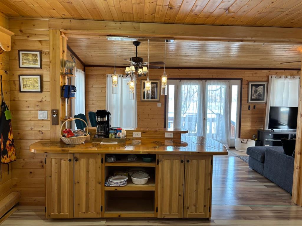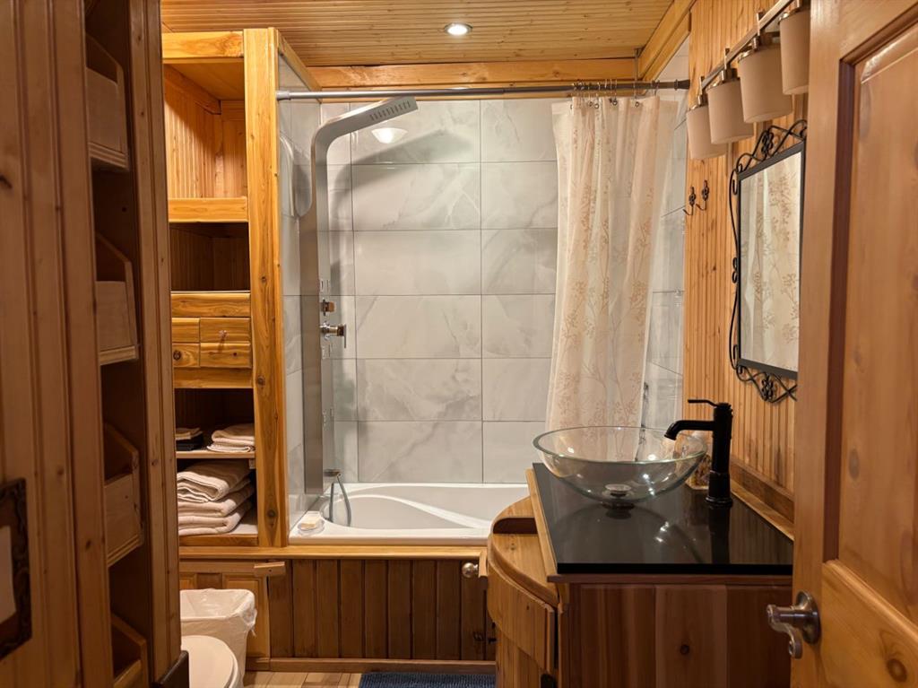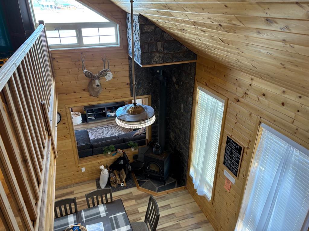 Cozy, warm, inviting, relaxing are all words to describe this beautiful cabin nestled in the neighbourhood of Mountain Vista Estates just outside of Hill Spring. The log exterior, the wood v joint interior, the vaulted ceiling, the wood burning stove, the open kitchen, dining and living room, the back deck and sitting area right on the pond, the 3 season shed with a 2 piece bathroom are all features that make this home a one of a kind. It is currently being used for personal use and an AirBNB rental. Located close to Waterton and the mountains it is regularly booked from April to October. The quiet peaceful outdoors are ideal for watching sunrise and sunsets, and enjoying the ducks, geese and other wildlife. The exterior was repainted 3 years ago, and, the stove and water tank were recently replaced. The annual fee is not necessarily an HOA fee but a neighbourhood fee that is calculated yearly dependent on costs that include such things as "snow removal, grass cutting of common spaces, road maintenance, electrical bills for water pump systems, irrigations water, garbage disposal, capital projects, etc." The neighbourhood is part of a water coop for drinking water but also has seasonal irrigation water for the yards and outdoor use. There is natural gas in the area but this home uses propane tanks that are filled a couple times a year depending on usage. It also has a holding tank for sewer which is cleaned out about every 3 months depending on usage as well. The man made pond is great for kayaking or canoes and there is also a fire pit and horse shoe pits for community use. The furnishings in the home are negotiable. If you are looking for a new residence, a get away home, or an investment property this might be the one for you. Come check it out!