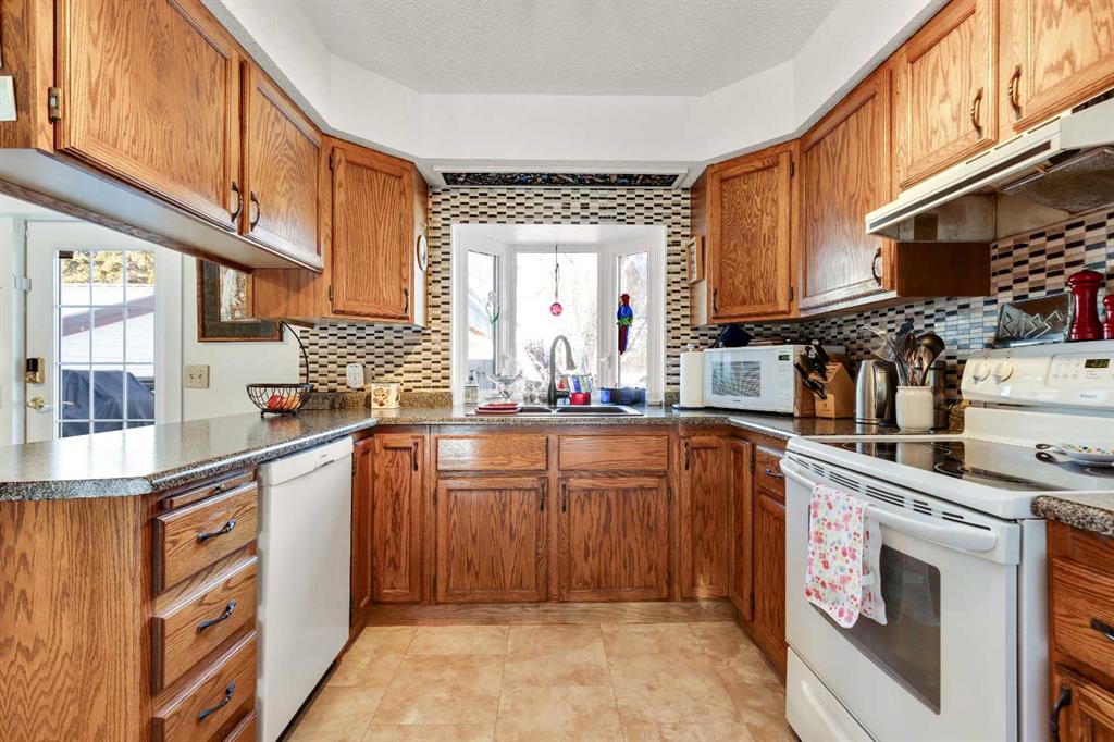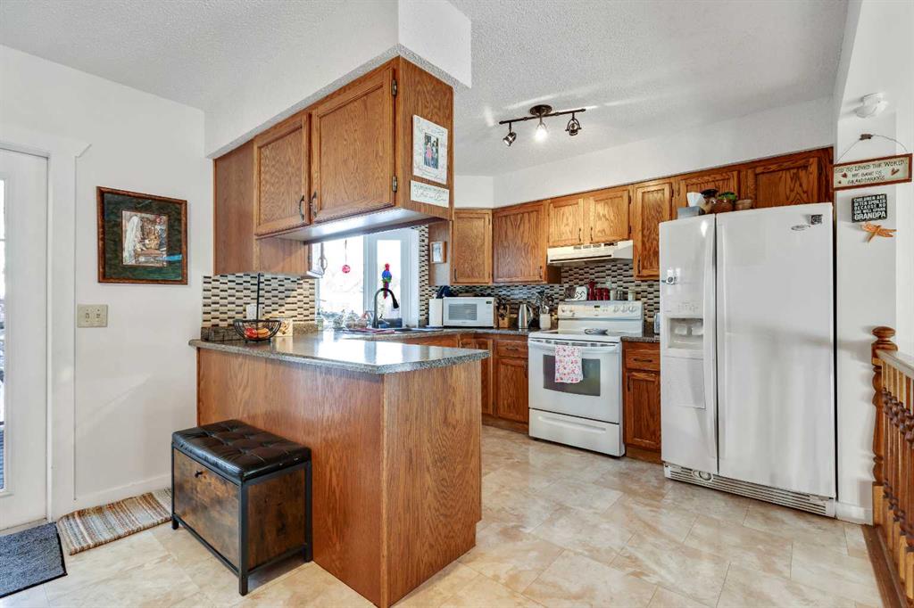 LOCATION, LOCATION, LOCATION! Situated on one of the most sought-after streets in the SW, this beautifully maintained 4-bedroom family home offers the perfect blend of comfort, charm, and convenience. Enjoy sunny mornings on the south-facing front patio, an ideal spot to relax with coffee or chat with neighbors. Inside, the main level welcomes you with a warm family room featuring vaulted ceilings and a cozy gas fireplace—a perfect place to showcase your holiday décor. Upstairs, the bright dining room flows seamlessly into the kitchen, making family meals and entertaining a breeze. Step right out onto the spacious rear deck, offering ample room for outdoor seating and BBQs (there is a gas line) with a 2-tiered deck. The primary bedroom features two large closets and a beautifully updated ensuite with a full tile walk-in shower and custom cabinetry by Wegener Homes. Two additional bedrooms and a full bathroom complete this level. The lower level is filled with natural light thanks to full-size windows. An oversized family room provides a comfortable space for movie nights or game time. This level also includes a fourth bedroom, full bathroom, private laundry room, mechanical room and access to a partial basement—perfect for seasonal storage. Outside, you’ll appreciate the extended driveway leading to a heated oversized single (20'x20') detached garage. Additional storage is abundant with a shed and under-deck space. The maintenance-free fence on the west side, installed by Wegener Homes (2023), adds both privacy and polish. Other updates include: Metal roof (2013), Windows (2013), Interior doors (2013), Hot Water Tank (2013), Furnace (2013), Vacuflo with kitchen toe-kick & 2 hoses (2013), Gutter guards, Exterior professionally re-stained (2022) , New Ensuite toilet (2025). Just one block away, access the Happy Trails pathway system, which leads you to the Highwood River, forested paths, George Lane Park, and onward to downtown. With year-round community events—including the Hot Air Balloon Festival, our Christmas & Little Britches parades, Car Shows, and weekly farmers’ markets in the summer —plus a nearby Elementary school and the High River Hospital, this location offers an unbeatable blend of convenience and small-town charm. This is your chance to own a home in one of High River’s most desirable neighborhoods!