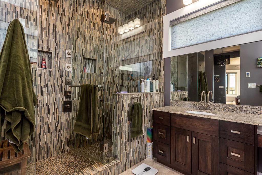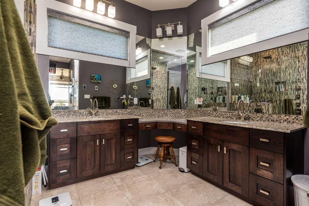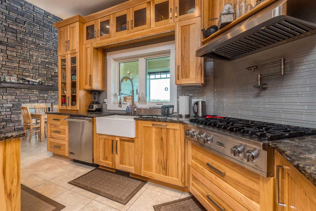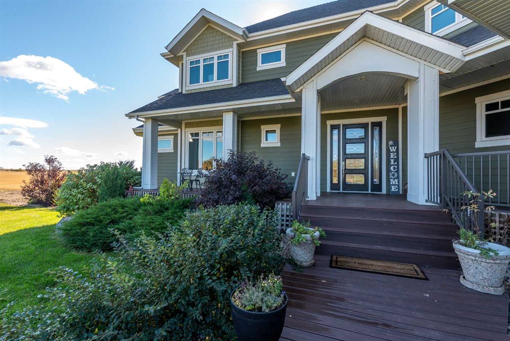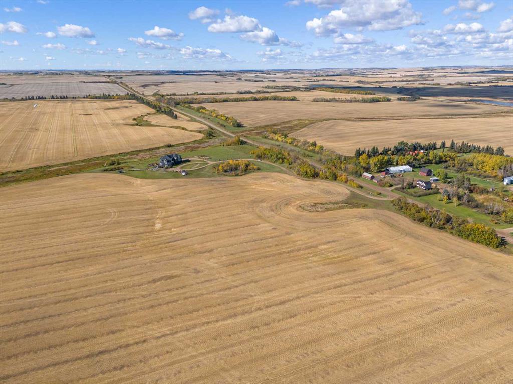 Ignite a family legacy with TWO QUARTER SECTIONS of arable farm land! Starlit prairie skies or expansive sun-filled views, you will find a magnificently situated estate conveniently close to both Lloydminster & Wainwright. This is a high demand area for agriculture properties. From the tree lined drive a statuesque home welcomes with abundant features. A concrete apron to the heated garage & motor court with RV hookups. Substantial retaining walls, impressive landscaping, electrified shed, garden boxes, composite deck, bridge, spring fed pond, dug out, irrigation, stamped concrete patio, glass surround cabana for hot tub, outdoor shower, pool hookups, below ground downspouts, tile shower in garage for farm cleanup or dog wash. The beauty of this contemporary home is on display with soaring double height ceilings, hand planed hickory & tile flooring, centered on a floor to ceiling, double sided, stone clad, gas fireplace with rustic wooden mantle. Fit for entertaining, the chefs’ kitchen boasts hickory cabinets, quartz counters, professional appliances, farm & island prep sinks, butlers’ pantry & open concept flow. The grand living space has a specialty bar with beverage & wine fridges. The dining offers easy access to the upper deck & 4 season sunroom. The garage entry provides lockers, access to the pantry & laundry room; all tucked away out of sight. This luxury property has 6 beds & 7 baths, the primary is bright with natural light & features an air jet spa bath & zen atmosphere with floor to ceiling windows to relax & enjoy the beautiful skies. Inclusive to the primary is a 36x80 steam shower, abundant counter space & spoil yourself with a private dressing room with California closet built-ins, also found throughout the home. Each of the 3 upstairs beds have access to an ensuite & are sizely, private spaces. The 2nd level catwalk overlooks the main & includes a childrens study/library area. Downstairs is an expansive space for billiards, family & theatre rooms, 2 large bedrooms, 3pce bath, under-stairs childrens hide-out, cold room with shelving, office, walkout to the hot tub or patio, temp controlled wine cellar & future wet bar. Separate entry, above garage loft space constructed as a home office with an open concept space, kitchenette, 2pce bath, offices & home gym. This flex space has unlimited potential uses! Each extra has been considered & thoughtfully constructed with care & the finest quality with no concessions. Additional info: wood/ICF basement, 300 ft drilled well, new boiler, 3 furnaces, dehumidifier, A/C rough-in, in-floor heat, central vac, gas plumbed to laundry, laundry shoot, 200 amp electrical, backup generator can run the home (except the steam shower) in case of power failure, Navien hot water on demand, R/O with UV light treatment throughout. Integrated with Cat 5, alarm system, Starlink mesh system, cell phone booster. Elegant architecture, luxurious amenities & sustainable smart home features. Buy land - they aren't making it anymore!