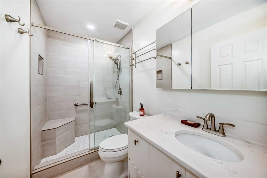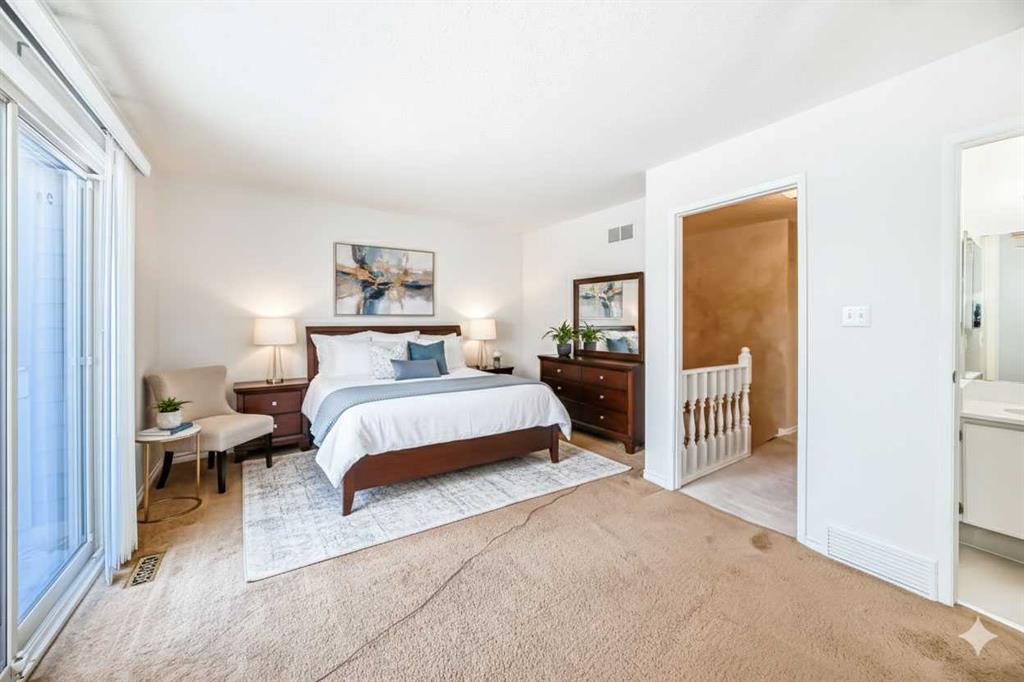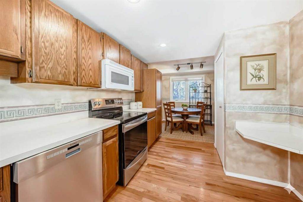 Well cared for and featuring a rare and coveted two-storey floorplan, this Point McKay townhome offers an amazing opportunity to own in one of Calgary’s most sought after communities. A large entryway welcomes you inside. To your right, the kitchen is a mix of original elements like oak cabinetry with newer appliances, and is sure to spark your remodel dreams. A floating corner desk is an ideal command central, and a full pantry adds to this functional room. Take a break with your favourite beverage in the breakfast nook, or head into the dining area, where the layout is a breathtaking combination of natural light and architectural details as you step down into the living room. Beautiful original hardwood throughout the level adds a warm, homey feel. An original, wood-burning fireplace has the perfect retro-chic aesthetic, complete with a brick hearth and oak mantle. Floor to ceiling windows face southwest, giving you tons of sunlight throughout the day. Sliding glass doors step out to a spacious deck that’s ready for al fresco meals in the warm months. The final piece is a powder room in the hall to complete the level. Upstairs, the primary bedroom is a perfect canvas for your updates. Ready with a walk-in closet, full ensuite, and a balcony, you will instantly fall in love with this serene retreat. Two more generous bedrooms share a renovated main bathroom, where a sleek tiled shower is the star with both rainfall and angled spray and a bench. In the unfinished basement, your ideas can take root. A laundry area and tidily arranged utility section make it easy to add your ideal living spaces. The single-attached garage has a dedicated furnace, perfect for frost-free parking and year-round hobbies. Outside, the back deck is surrounded by mature trees and backs onto the courtyard pathway, giving your outdoor living area a wonderfully private feel. This community’s phenomenal locale along the Bow River gives you access to hours of enjoyment, with area pathways and parks just steps from your door. Commuters can get downtown quickly by car or by bike, and proximity to Foothills and the Alberta Children’s hospitals as well as the University make this central location excellent for medical and education professionals. Also in walking distance, some of the city’s restaurant gems are sure to become your go-to, like the Lazy Loaf and Kettle or LICS Ice Cream. Nearby restaurant hotspots like trendy Kensington are only a few minutes’ drive, or you can be passing the city limits headed to the mountains in under ten minutes for all your favourite snow sports and alpine adventures. Ready to make your design inspo, and your lifestyle goals, a reality? See this one today!