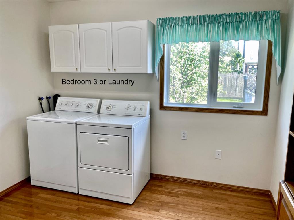 Are you looking for a turn-key family home? This property is centrally located in Lac La Biche and is walking distance to downtown, schools, daycare, and the Lake! The extra-large fenced back yard is a gardener's delight full of fruit trees, garden space, and a green house! There is room to play, relax, and picnic in privacy. The large deck and concrete patio facing south are great spaces to enjoy the outdoors, visit, and barbeque! The paved driveway and double attached insulated garage provide plenty of parking. There is back-alley access, and a gate was installed in the fence to creating parking space in the back. The home features hardwood floors throughout. The dining room and kitchen are the heart of the home and is open to the Livingroom. The kitchen is surrounded with great cabinetry for storage and a handy island in the center for meal prep. The dining room has French doors leading you the 16' X 21' private deck. Retreat to the spacious Livingroom and relax in front of the gas fireplace with a book or watch TV. The main floor has 3 potential bedrooms. There is a 4-piece bathroom on the main floor, a master bedroom with a 3-piece ensuite, and one more bedroom. Currently one bedroom has been converted to a laundry room but could be change back to a 3rd bedroom on the main floor if the laundry was moved and a closet was added. The is also space and large windows in the basement where 2 more bedrooms could be added. The basement is drywalled and painted with a large mechanical room with storage space, and a large storage room with floor to ceiling shelving. . This layout of this home would allow to make a separate entrance to the basement and design a suite. Other improvement include new shingles, newer hot water tank, and fresh paint, and a new shed. Call today to book showing and see how this home can suit your needs!