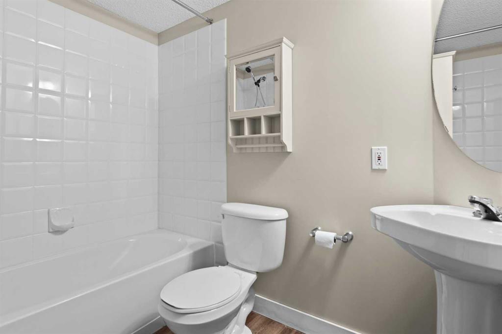 Step into this bright and inviting main floor 2-bedroom, 2-bathroom condo in the highly sought-after Pavilions at Rocky Ridge. Thoughtfully designed with a split-bedroom layout for privacy, this property features an open concept kitchen and living area with a cozy gas fireplace, LVP flooring, large windows, and direct access to your private balcony - perfect for morning coffee or evening relaxation. Main floor living means no elevator waits and easy outdoor access — ideal for quick walks with Fido (just don't forget to get board approval!). The spacious primary bedroom includes a walk-in closet and full ensuite, while the second bedroom is adjacent to a full four piece bath. Enjoy the ease of in-suite laundry with additional storage, the patio with BBQ gas line and secured storage shed, and titled underground parking. Residents enjoy outstanding onsite amenities, including a fitness center, theatre room, games room, meeting space, library, and even an onsite hair salon—an appealing convenience for seniors and busy professionals alike. Surrounded by walking paths, greenspace, and mountain views, the setting is as peaceful as it is practical. With unbeatable access to shopping, transit, and major roadways, this condo is an excellent choice for investors, downsizers, seniors, first-time buyers, and young professionals seeking comfort, convenience, and a vibrant community.