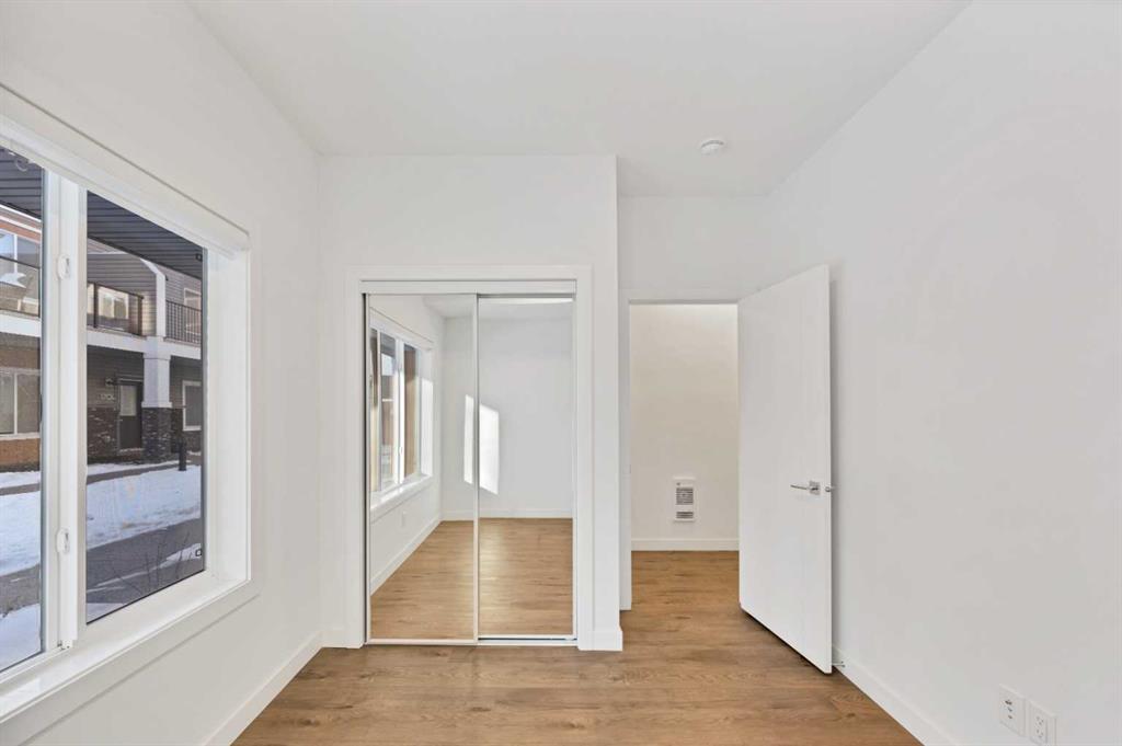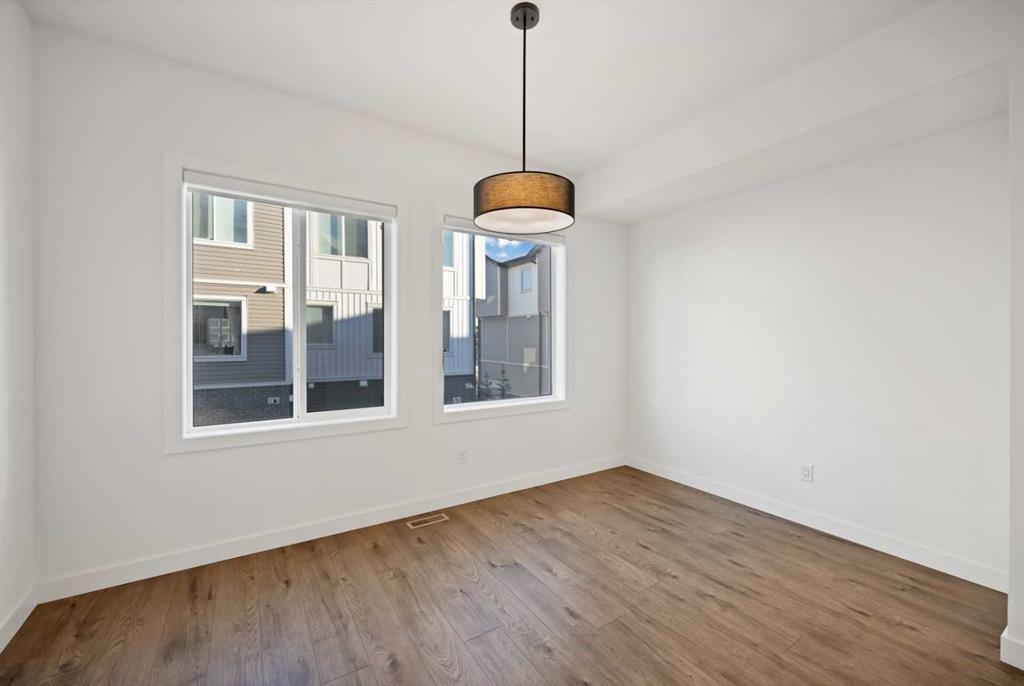 Experience elevated living in this beautifully designed 4-bedroom townhome located in the vibrant, family-friendly community of Chelsea. With scenic walking paths, playgrounds, and convenient shopping just steps away, this home offers an ideal blend of comfort and convenience. Inside, you'll find 4 spacious bedrooms, 2.5 bathrooms, and an attached double heated garage—perfect for Alberta winters. The main floor includes a versatile bedroom that can serve as a guest room, home office, or creative workspace. Thoughtful upgrades are featured throughout, including luxury vinyl plank flooring, high ceilings, and stylish modern finishes. The chef-inspired kitchen is a standout, showcasing full-height soft-close cabinetry, quartz countertops, stainless steel appliances, and a functional pantry. Whether you're entertaining at the eat-up island or preparing everyday meals, this kitchen is designed to impress. Upstairs, the primary suite provides a relaxing retreat with a large walk-in closet and a private 4-piece ensuite. Two additional bedrooms, a 4-piece main bathroom, and convenient upper-level laundry complete the second floor for added everyday comfort. Bright, modern, and move-in ready, this townhome offers the low-maintenance, sophisticated lifestyle. Don’t miss your opportunity to make this exceptional home yours!