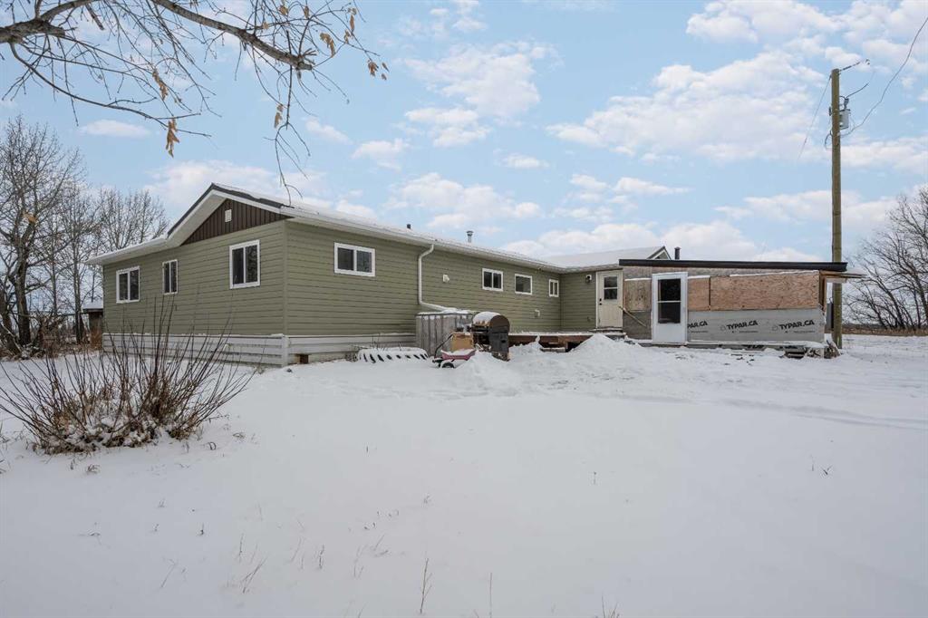 You will be in awe as you view this fully renovated mobile on 2.74 acres only 8 minutes north of Camrose. Renovated from the studs to the roof to the windows and more, all you have to do is move in! Featuring 3 bedrooms and two bathrooms, this 1296 square foot home boasts two additions, including the spacious primary bedroom with an adjacent office/extra storage space. You’ll love the updated paint, the vinyl plank flooring, natural light from all the windows and so much more. With ample counter space for baking and entertaining including a moveable island, the open concept kitchen will be the center of attention in the home. This home features both a south facing and a more private north facing deck for your entertaining pleasure. With 2.74 acres to play with, you’ll be able to build your dream shop, barn, or massive garden. This home has had all the work completed, including an updated septic, this turn key property is waiting for you!