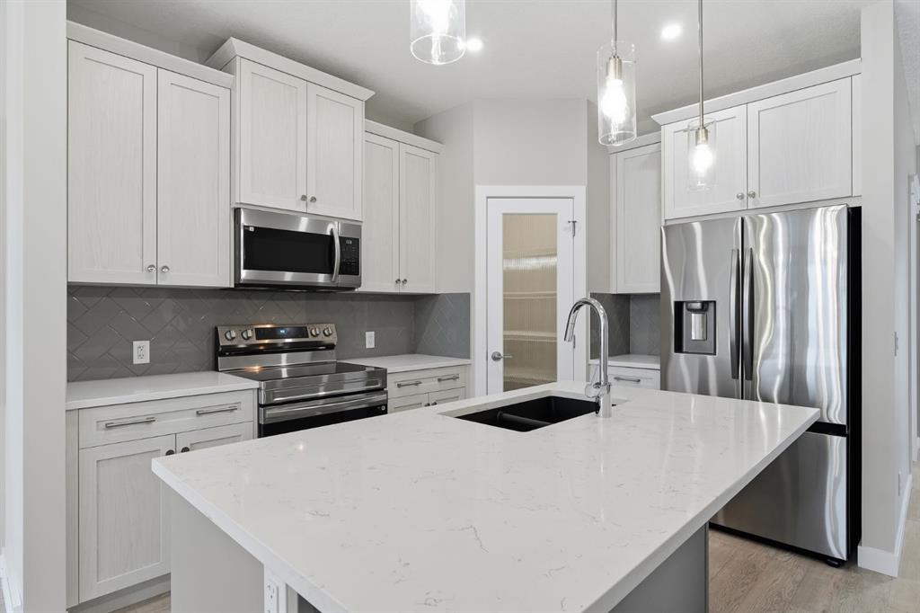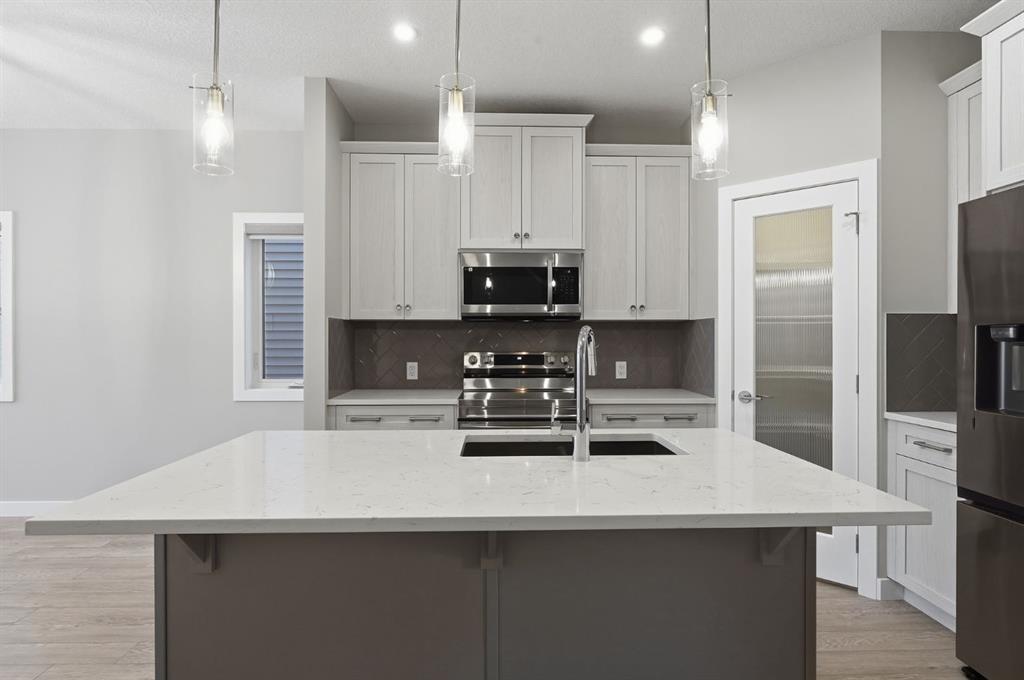 Main Floor Office • Oversized Double Garage (Bring Your Trucks! 8 Feet Tall Door) • Upper Loft • Side Entrance Basement • Triple-Pane Windows! Welcome to your brand new 2025 home in the award-winning community of Coopers Crossing Airdrie. Sitting proudly on a conventional lot (a.k.a. more yard to actually use), this home is thoughtfully crafted for real life—working, relaxing, entertaining. Step inside to an open-concept main floor boasting 9’ ceilings, sunshine for days, and ultra-efficient triple-pane windows to keep you cozy in winter and cool during "why is it so hot?" season. Need a home office or private guest hideaway? The main-level flex room has you covered—conveniently located next to a sleek bathroom with a floating vanity that practically winks at you. Head upstairs to discover the bonus loft—perfect for movie nights, homework zones, or staging epic pillow forts. Three generously sized bedrooms await, including a primary suite designed for maximum relaxation with a walk-in closet and a spa-inspired ensuite where you can pretend you’re at a resort. Laundry is right down the hall, so no carrying baskets up and down stairs! The unfinished basement (with 9’ ceilings, painted concrete floors, and a separate side entrance) is a blank canvas. Gym? Secret lair? You decide. Outside, the star of the show: an oversized double detached garage—big enough for trucks, tools, toys, and possibly your ambitions. The conventional lot also gives you plenty of backyard space for BBQs, gardening, or letting the dog live its best life. All of this is just a short stroll from St. Veronica and Northcott Prairie schools, scenic parks, walking paths, and the Coopers Town Promenade—home to Sobeys, cafés, restaurants, and everything you forgot you needed until five minutes ago. Turn the key, settle in, and start your next chapter in Coopers Crossing—your future self will thank you.