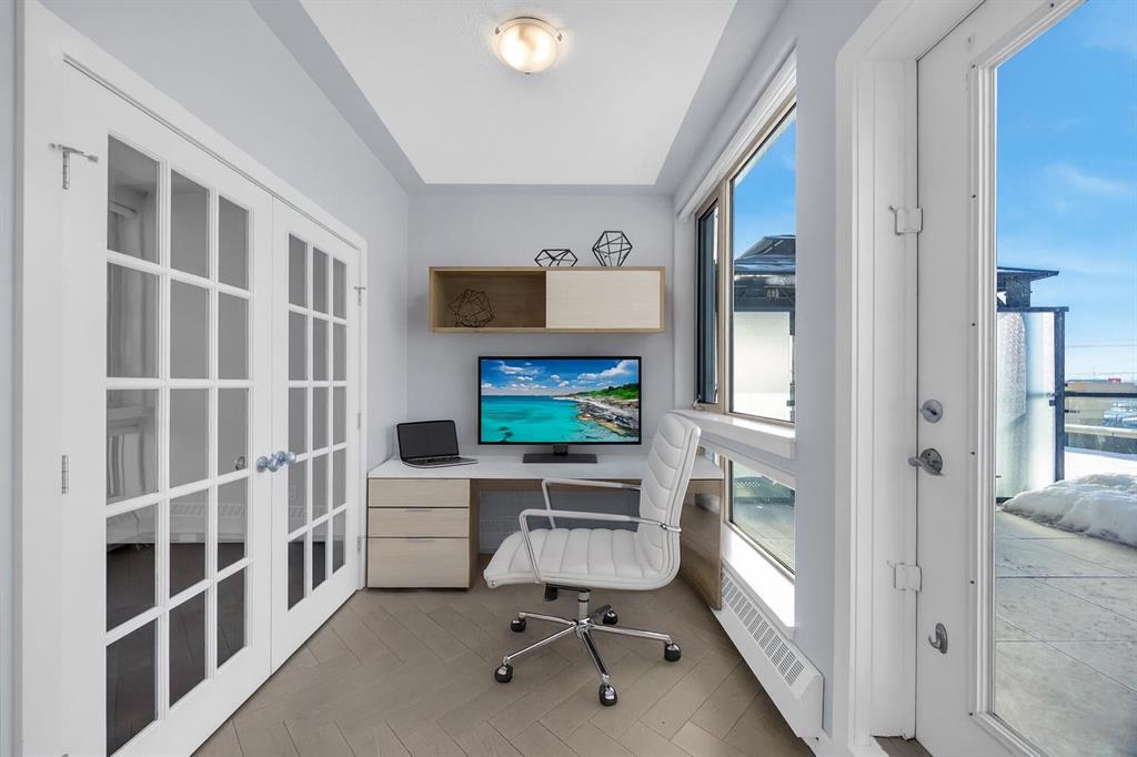 Welcome to 35 Inglewood Park SE! Imagine coming home to 1,065 sq ft of open-concept living space paired with a nearly 400 sq ft west-facing balcony—the perfect extension of your living area. This beautifully designed 2-bedroom + den, 2 full-bath condo blends sophistication with contemporary style in one of Calgary’s most sought-after inner-city neighbourhoods. Step inside and you’re greeted by high ceilings, oversized windows, and an abundance of natural west sunlight, all showcasing stunning downtown Calgary views. Includes air-conditioning for those hot summer days. The kitchen features custom shaker-style cabinetry, upgraded stainless steel appliances, and a large breakfast island—ideal for entertaining or casual meals. Wide-plank hardwood flooring by Lauzon flows throughout, creating a warm, modern, and cohesive atmosphere. The spacious primary bedroom comfortably accommodates a king-sized bed and offers a luxurious 5-piece ensuite with an oversized walk-in shower, relaxing soaker tub, and a generously sized custom walk-in closet. The second bedroom is bright and well-proportioned—perfect for guests—and provides convenient access to a light-filled den/office space. Additional features include , in-unit storage/laundry room, two titled underground parking stalls, a separate storage locker, secure bike storage, and access to an impressive fitness centre and party/entertainment room—all within a well-managed, pet-friendly (with board approval) building. Located steps from Harvie Passage, the Bow River Pathway, Pearce Estate Park, and the vibrant shops and restaurants of 9th Avenue, this home delivers the ideal balance of urban convenience and natural beauty. Whether you love biking, paddling, dining, or exploring local boutiques, Inglewood truly offers it all. Don’t miss your chance—book your private showing with your favourite REALTOR® today!