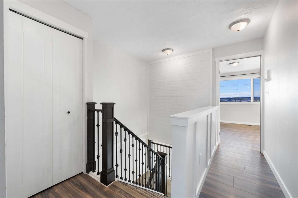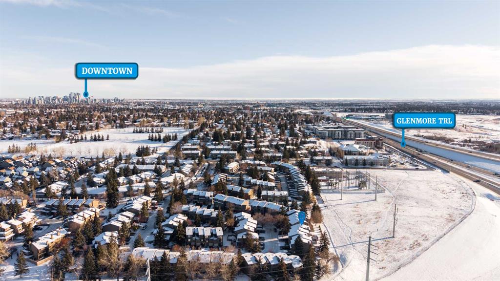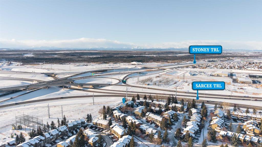 Step into this inviting 3-bedroom, 2.5-bathroom townhouse - an updated, light-filled end unit that offers both comfort and convenience. Thoughtfully improved over the years, this home features a single attached garage (with 30 amp, 240 volt plug!) plus a private driveway, making everyday life easier for households with multiple vehicles. Backing onto peaceful greenspace with a fully fenced yard, it’s the kind of property that feels tucked away while still being close to everything you need. Inside, the home welcomes you with a warm, neutral palette, durable vinyl plank flooring, and fresh carpeting. The front entry includes a coat closet and a handy half bath. Just a few steps up, the bright and airy living room showcases soaring ceilings, a charming wood-burning fireplace, and patio doors that open onto the south-facing deck overlooking the yard and greenspace beyond. The next level offers a spacious dining area with sightlines to the living room below, framed by the recently updated stair railing. The renovated kitchen is bright and efficient, complete with white soft-close cabinetry, newer stainless steel appliances, ample counter space, and a cozy breakfast nook. The laundry is conveniently located on this floor as well. Upstairs, you’ll find three comfortable bedrooms. The primary suite stands out with mountain views, a generous closet, and a beautifully updated 4-piece ensuite. The additional 4-piece bathroom has been recently updated and serves the remaining bedrooms. The lower level adds flexibility with a great gym or office space, along with plenty of storage and the furnace room. With low condo fees, recent upgrades, and a location close to shopping, transit, and Mount Royal University, this townhouse truly delivers value and lifestyle. Come see what makes this home such a wonderful find!