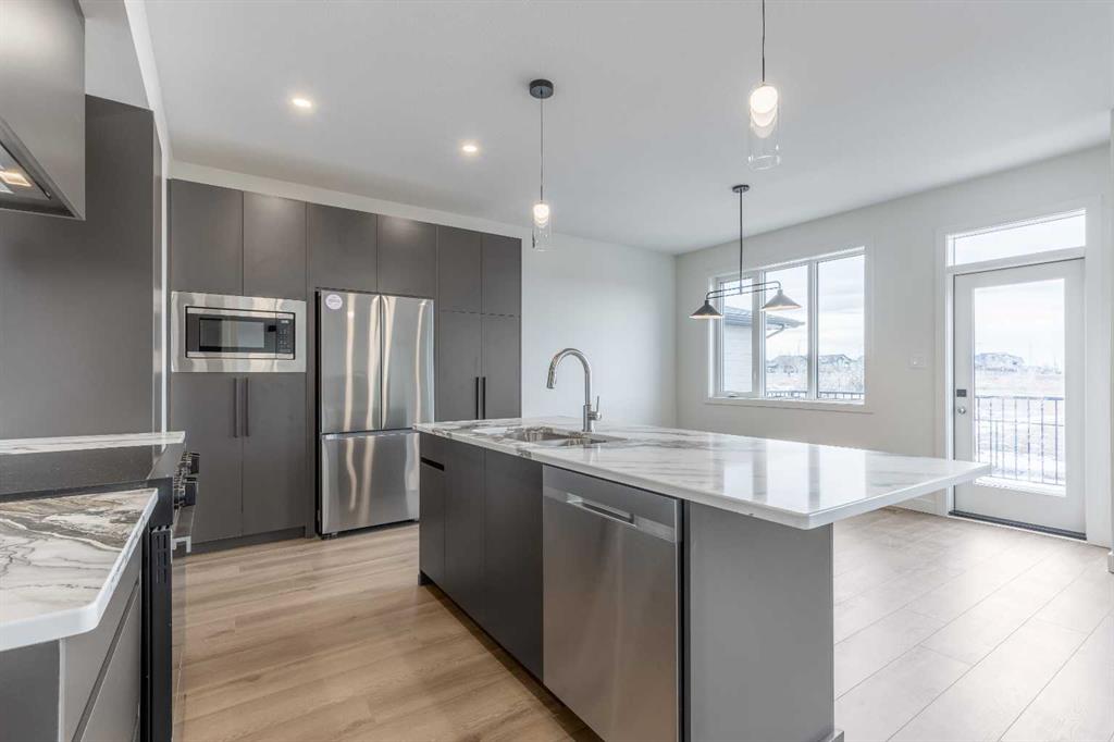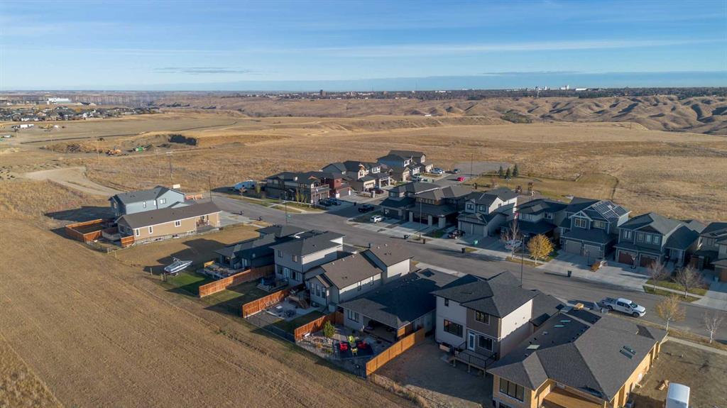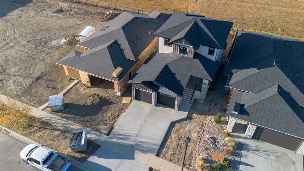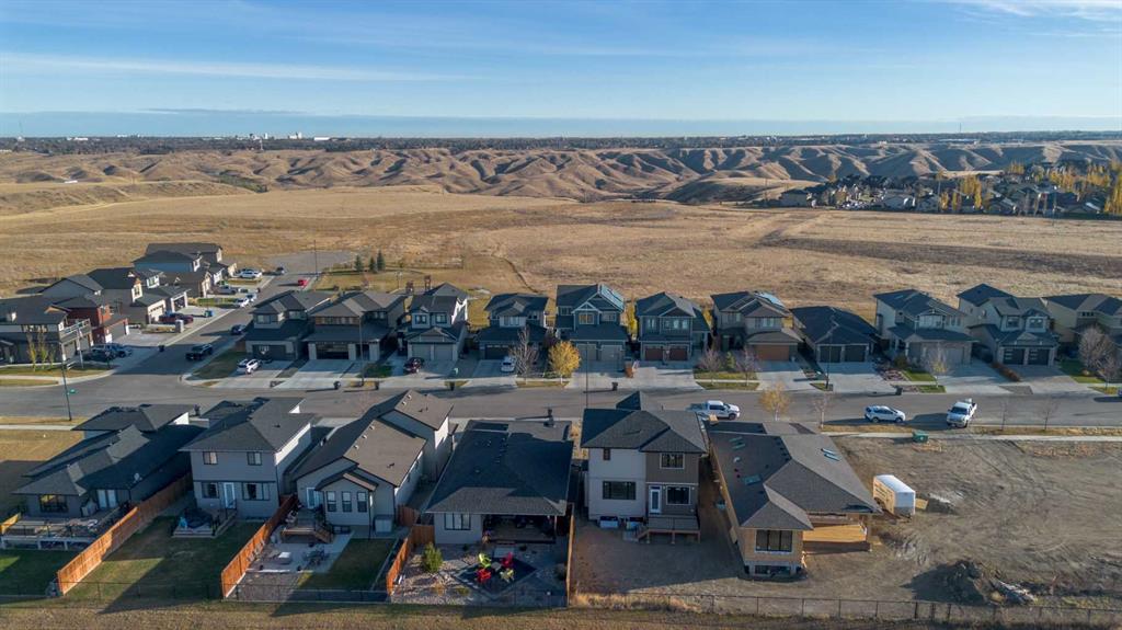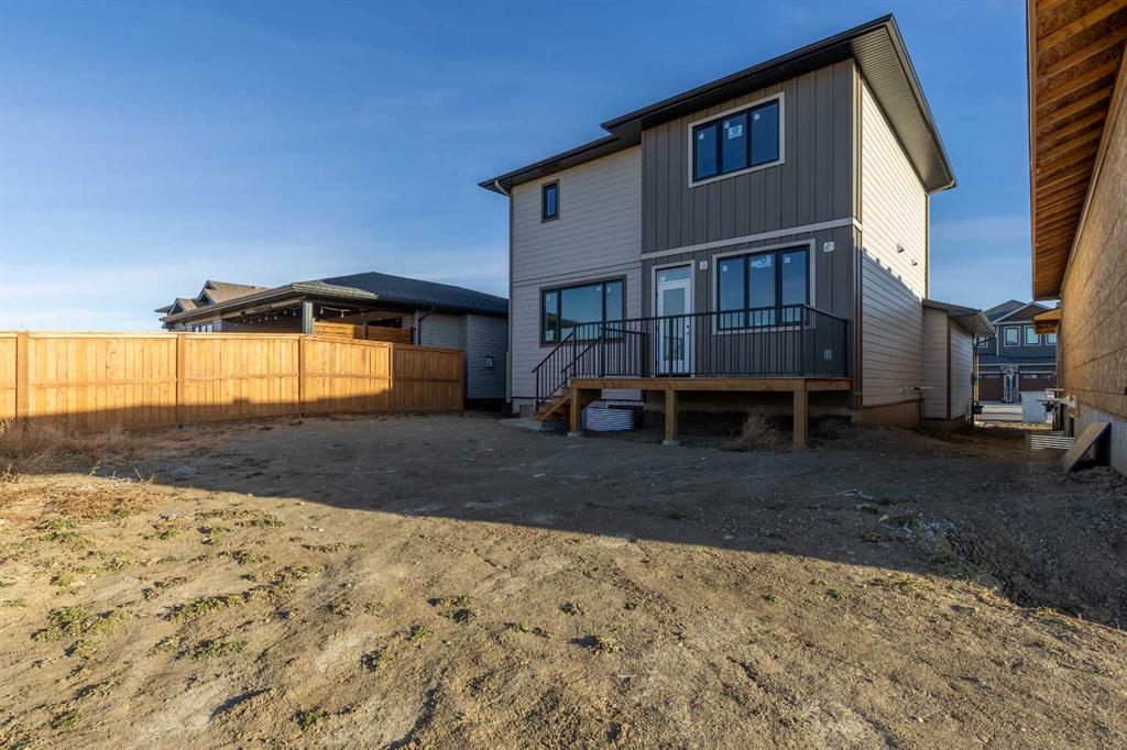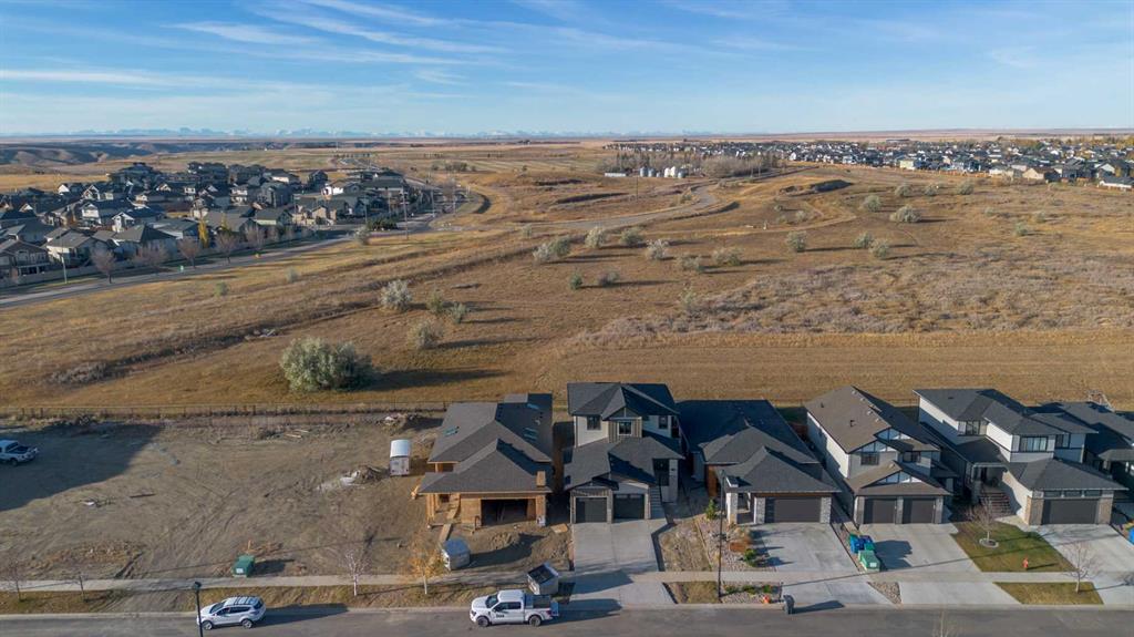 A custom home by Janus Homes - offering a lifetime of NO rear neighbours, just a walking path that can take you to the coulees! This 2 storey is a unique take on a new build - with modern selections and finishes, a west-facing yard and all while situated in a fantastic neighbourhood. This home was thoughtfully designed with family function in mind starting from a huge covered front verandah, making the entry not only protected from the elements, but offers great options for seating, decor and more! There's an extended mudroom with custom lockers and storage space and laundry and is conveniently not visible to visitors! Main floor half bath and the best part - the sun kissed entertaining space with statement quartz counter tops, plentiful storage space, a gas fireplace and a completed back deck! Heading upstairs there are 2 bedrooms that share a 4 piece bathroom and the primary suite has been curated as a deluxe space to relax in! From the double doors to enter, to the vaulted ceilings, to the 4 piece ensuite with walk-in tiled shower, separate toilet room, storage behind the mirrors and a walk-in closet contained within the bathroom! The basement is unfinished but ready for your creative touches!