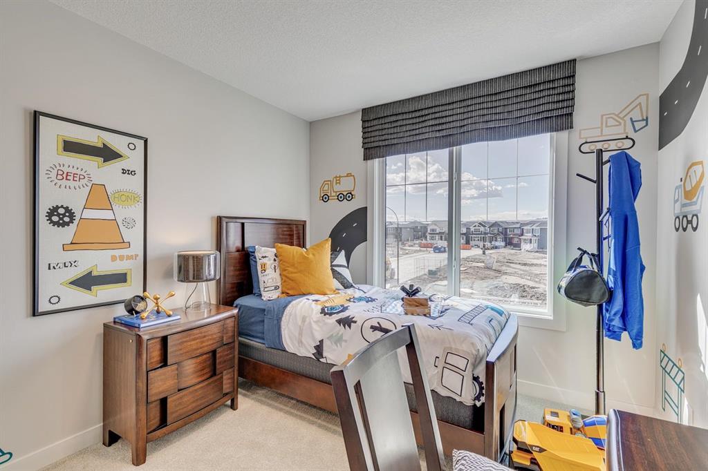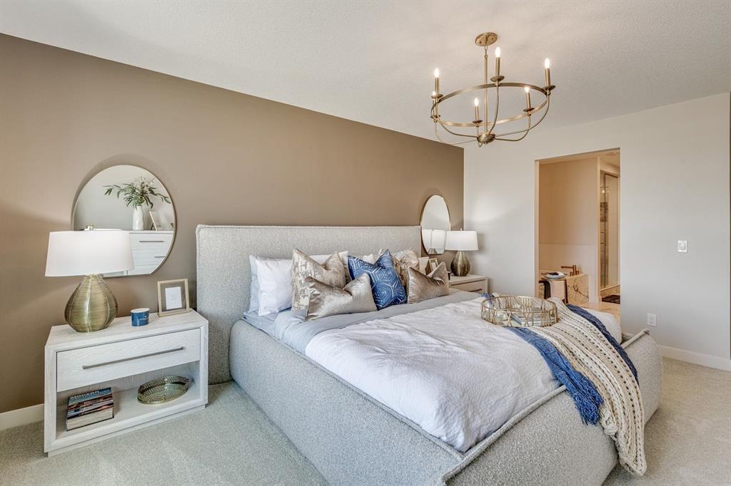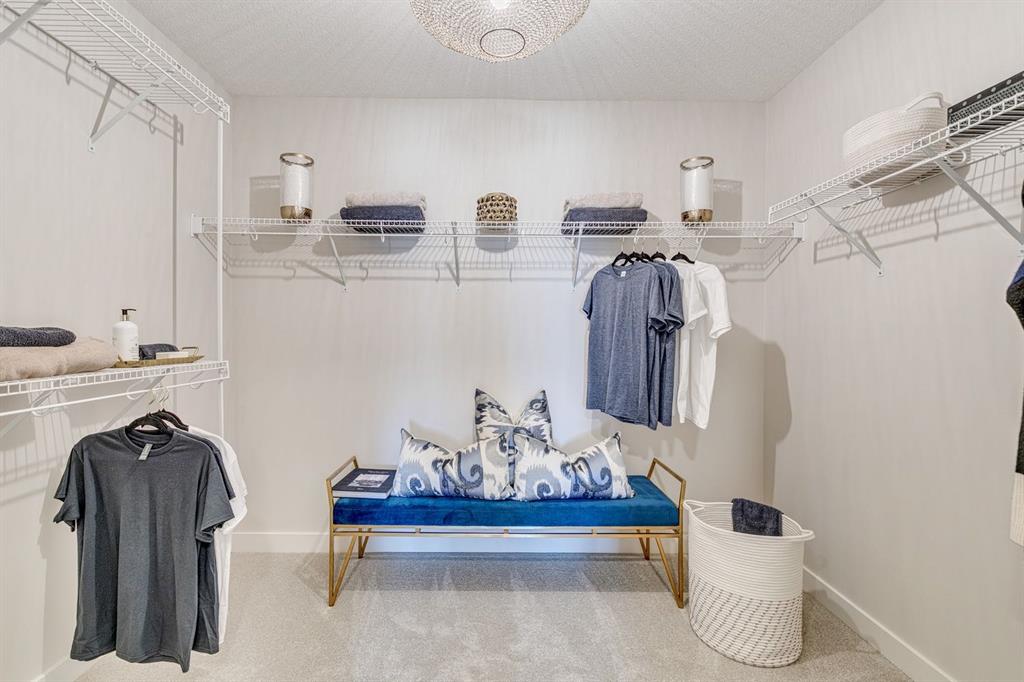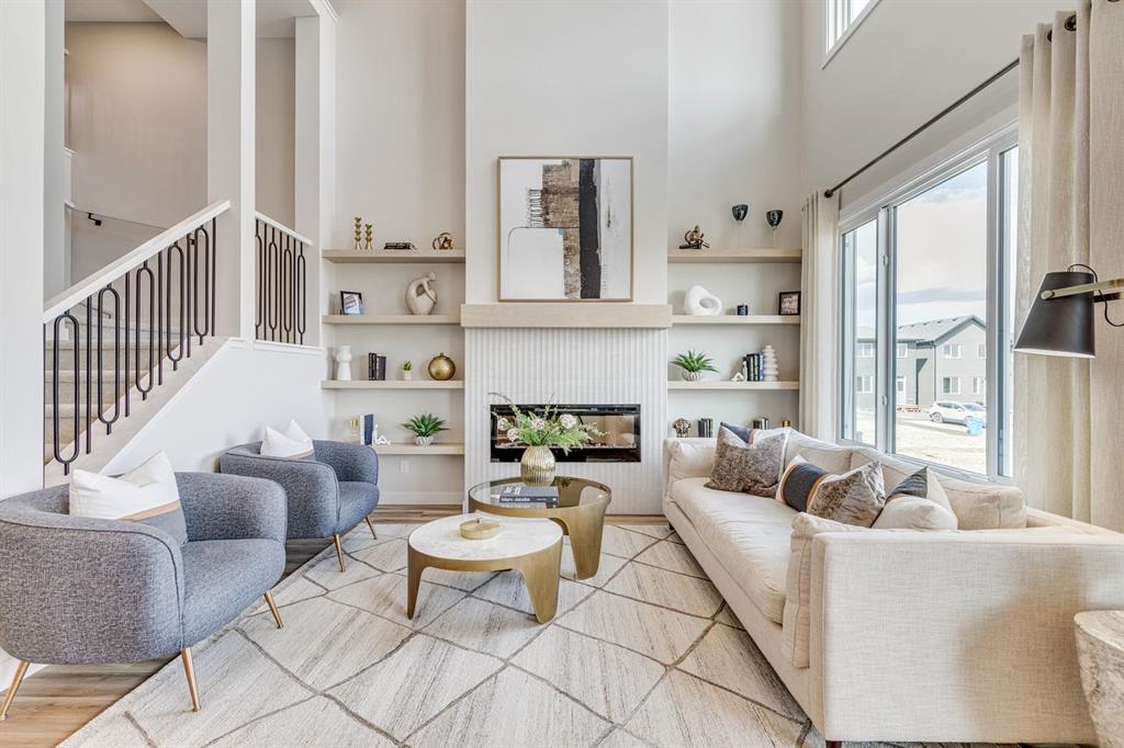 Welcome to The Bennett floor plan crafted by a long-standing Alberta builder Sterling Homes, with over 70 years of experience, offering quality, comfort, and thoughtful design throughout located in the growing community of Southbow Landing. Southbow Landing is one of Cochrane’s newest and most convenient areas, with quick access to schools, groceries, restaurants, pathways, playgrounds, and the Bow River. Calgary commuters will appreciate the easy connection to Highway 1, while still enjoying the quiet, family-focused feel Cochrane is known for. Inside, the home features an open-to-above great room with large windows and a gas fireplace that fills the main floor with natural light. A versatile flex room with double French doors provides options for a home office, playroom, or hobby space. Luxury vinyl plank runs throughout the main level. The executive kitchen is a standout, designed with both style and function in mind. It features two-tone cabinetry with classic white shaker uppers and a charcoal island, paired with black hardware for a modern, cohesive look. A stylish tile backsplash adds texture and personality to the space. The kitchen is equipped with built-in Whirlpool appliances, including a sleek wall oven, built-in microwave, and a gas cooktop, along with a walk-in pantry for additional storage. The layout flows directly to the rear deck, making everyday living and entertaining effortless. Upstairs, every bedroom includes its own walk-in closet. The spacious primary suite features a 5-piece ensuite with a tiled walk-in shower and a relaxing soaker tub. Additional windows throughout the home enhance the bright, open feel. This home is Built Green certified with triple-pane windows, a high-efficiency furnace, an electric car charger rough-in, and a solar chase for future-ready living. Smart home features include a programmable thermostat, Ring doorbell camera, smart lock, smart switches, and an Amazon Alexa touchscreen hub. A well-designed, energy-efficient home in a fantastic location. This quick possession home is ready for its first owners. Photos are representative and exterior photo is artist rendering.