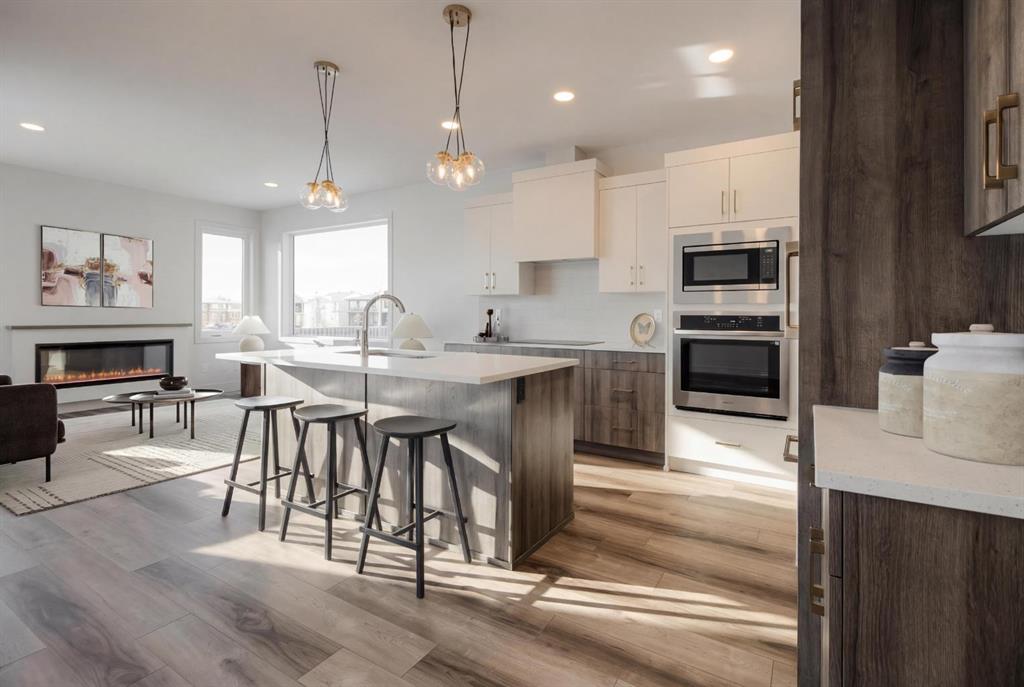 Welcome to the "Comrie" by Stranville Living, located in the desirable Lethbridge community of Southbrook. This new home is situated merely a few dozen meters from Dr. Robert Plaxton K-5 public elementary school, whose property includes a new playground, soccer pitch, baseball diamond, and a basketball court. Southbrook is conveniently located minutes away from big box shopping, various restaurants, and the VisitLethbridge.com arena and event center. This two storey home is well laid out and boasts a main floor rivaled by few homes of this size. It incudes a beautifully appointed kitchen with Adora Cabinets, fully tiled backsplash, and quartz countertops at the base cabinets and large island. Stranville Living's top tier appliance package includes a seamlessly integrated paneled Fisher & Paykel fridge, paneled dishwasher, induction cooktop, built-in hood fan, and a stainless steel wall oven and microwave combo unit. All in all, this is a clean and tight family home backing onto a new elementary school in one of the nicest neighborhoods in south Lethbridge. Tasteful finishes and quality workmanship make this an excellent investment for a buyer looking to start or continue the path to building equity through home ownership. High efficient mechanical equipment, Low E windows, and spray foam in the rim joists help keep your heating ad cooling costs in check. Very cool house on a terrific street in south Lethbridge! Photos contain virtual staging. There's nothing like NEW!