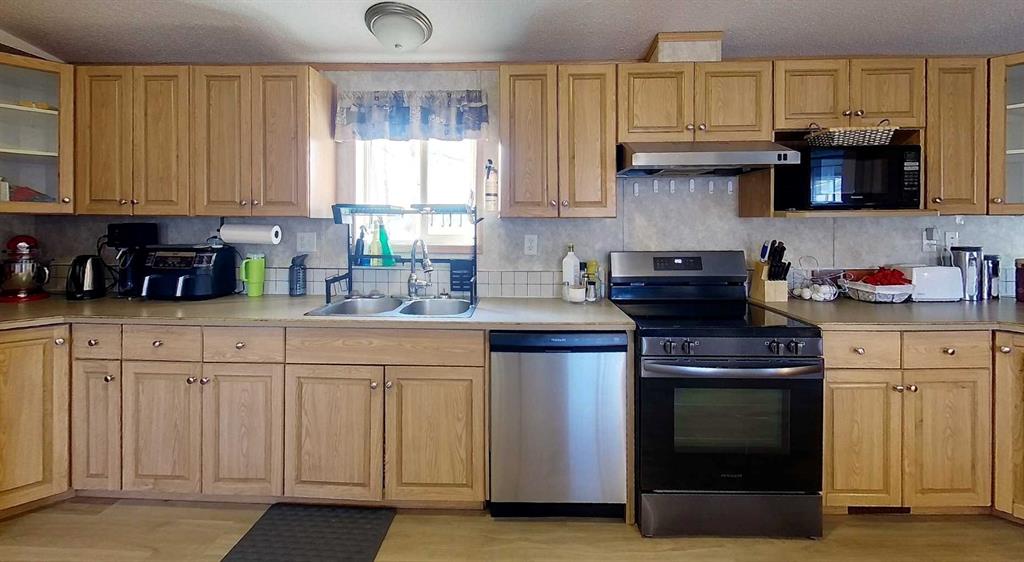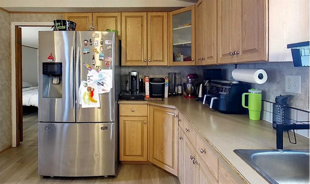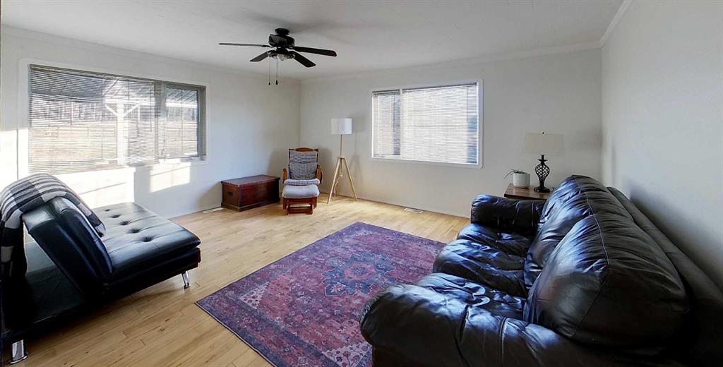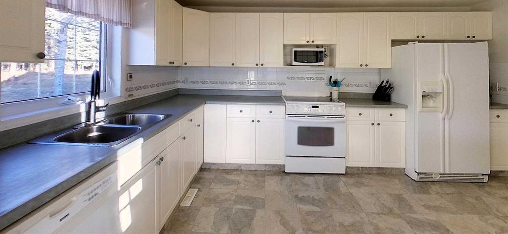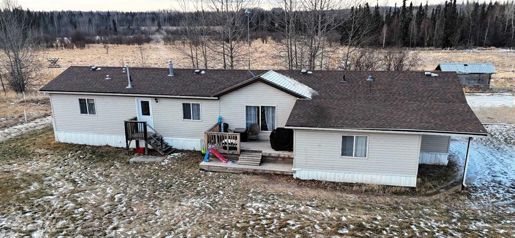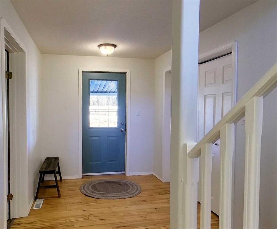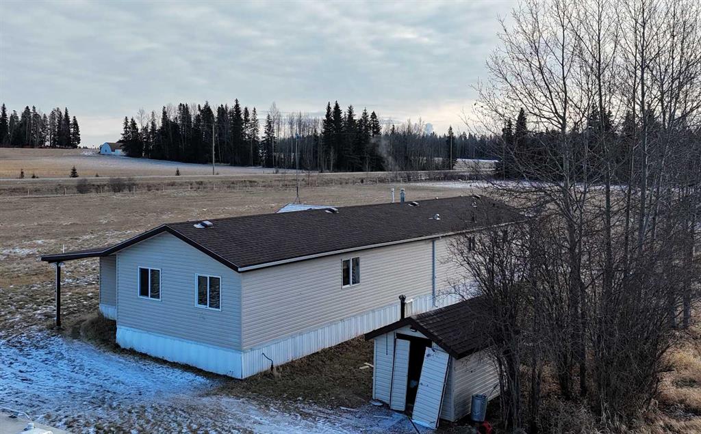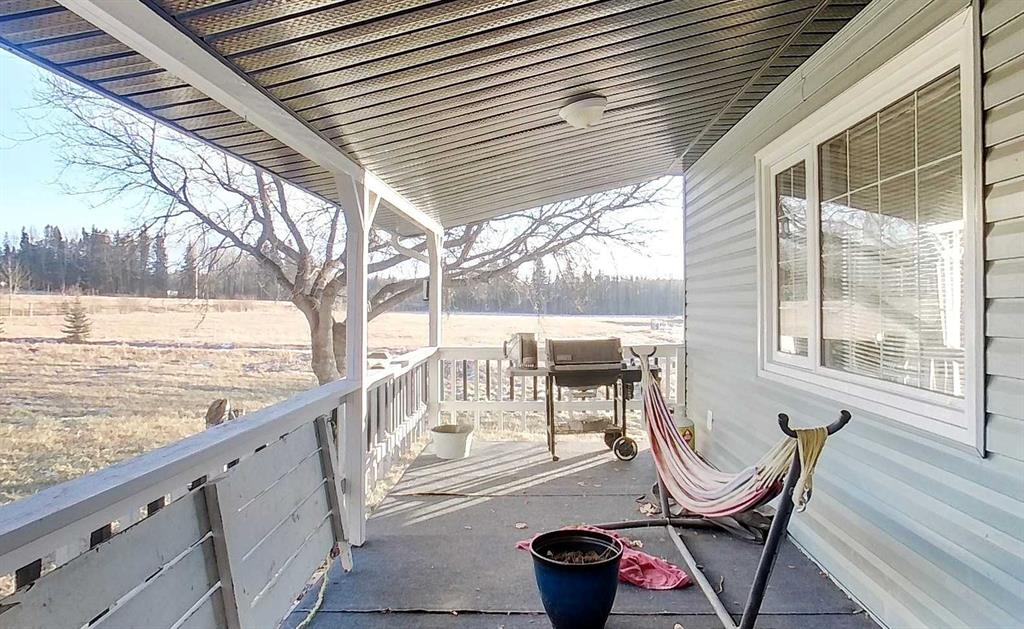 Rare opportunity to own two residences on 149.49 acres of productive, subdividable land just minutes from town, directly off pavement with no road bans. This exceptional property offers an ideal blend of comfortable living, income potential, & a fully developed livestock operation. The original 1.5-storey home features 4 bedrooms & 2 bathrooms, with two bedrooms on the main level & two upstairs. The main floor showcases hardwood flooring in living areas & tile in the kitchen and bathroom, complete with electric in-floor heat and hallway controls. The primary bedroom includes a sliding barn door leading to the bathroom. Upstairs offers newer glue-down LVP flooring in bedrooms and hallway, with a bathroom finished in linoleum. Major upgrades include an on-demand hot water system, forced-air furnace, updated electrical during the 2000 addition, and new shingles and siding (2019). Enjoy the covered front porch with swing, included with the home. A triple detached garage (built 2000) features in-floor heat, three automatic door openers, & an additional concrete pad with in-floor heat lines already installed, offering excellent expansion potential. The second residence is a 2006 modular home with its own power meter & natural gas service. It offers a spacious primary bedroom with ensuite, walk-in closet & jacuzzi tub, plus three additional bedrooms and a full bathroom. Updates include new LVP flooring throughout (2022), a new hot water tank (2022), new oven & range hood (2025), & a newer deck (2024). The mobile has consistently rented for $1,750/month since 2022 & is currently month-to-month, making it an excellent income property. Water infrastructure is extensive and well planned. The home well is approximately 120 ft deep with pressure tank & filtration, while the mobile is serviced by a separate 160 ft well with a 220V pump & VFD constant pressure controller. A seasonal 1.5” HDPE pipeline (nearly one mile) supplies water to 20 paddocks, with 11 strategically placed outlets. A heated livestock waterer, frost-free hydrant, & fenced-off natural water source further enhance the operation. The land consists of approximately 150 acres of tame pasture, high-tensile electric fencing, a one-mile alleyway for livestock rotation. A stream runs nearly year-round and is fenced to protect water quality. Additional features include an electric powered driveway gate with lighting, multiple outbuildings, a campground area with outhouse near the stream crossing, natural gas servicing the house, mobile, garage, & barn, both septic systems under 20 years old. This is a one-of-a-kind, multi-use property offering residential comfort, agricultural efficiency, rental income! Adjacent 1/4 also available for purchase.