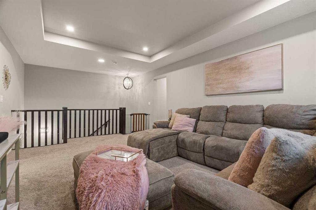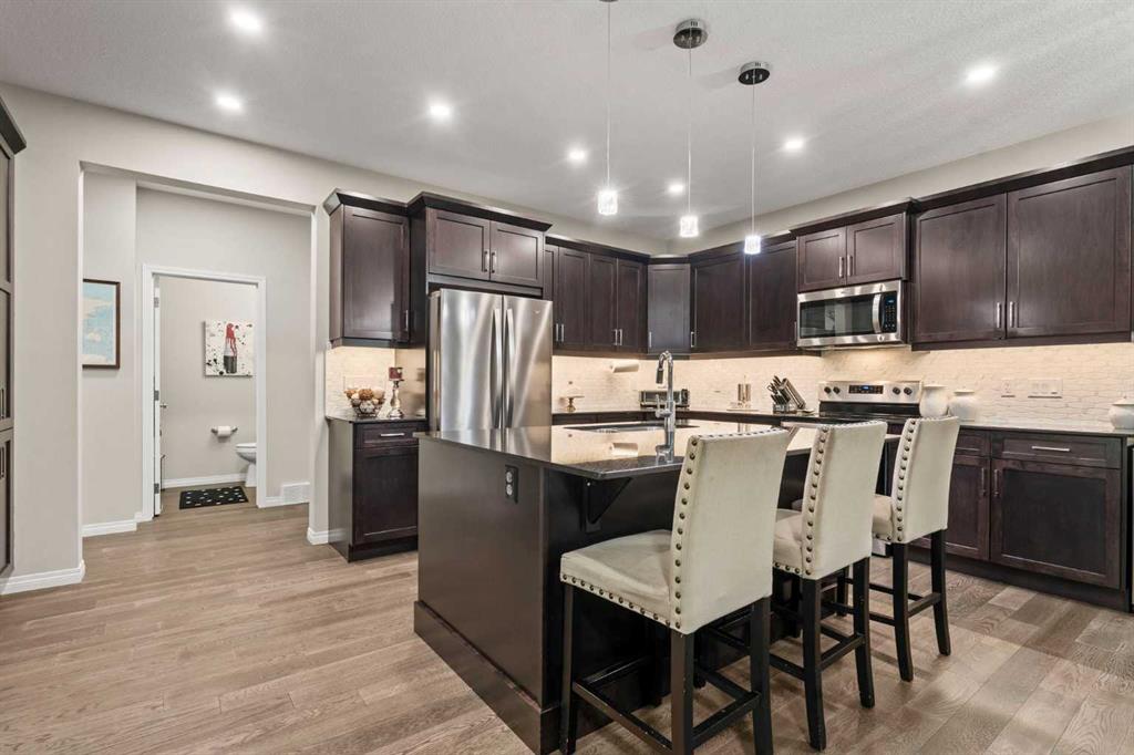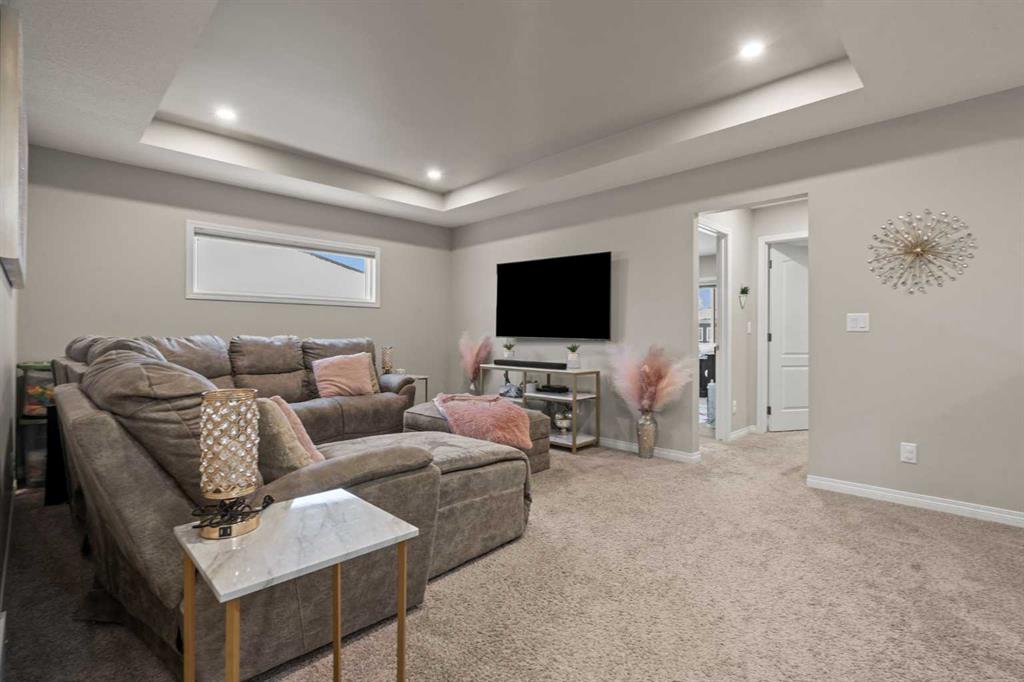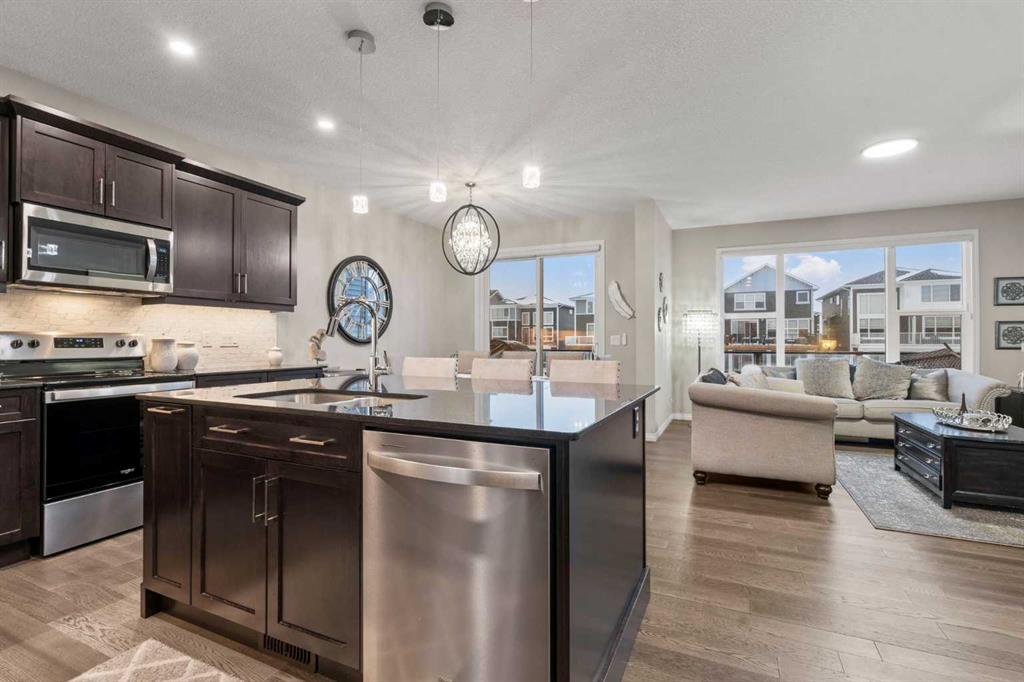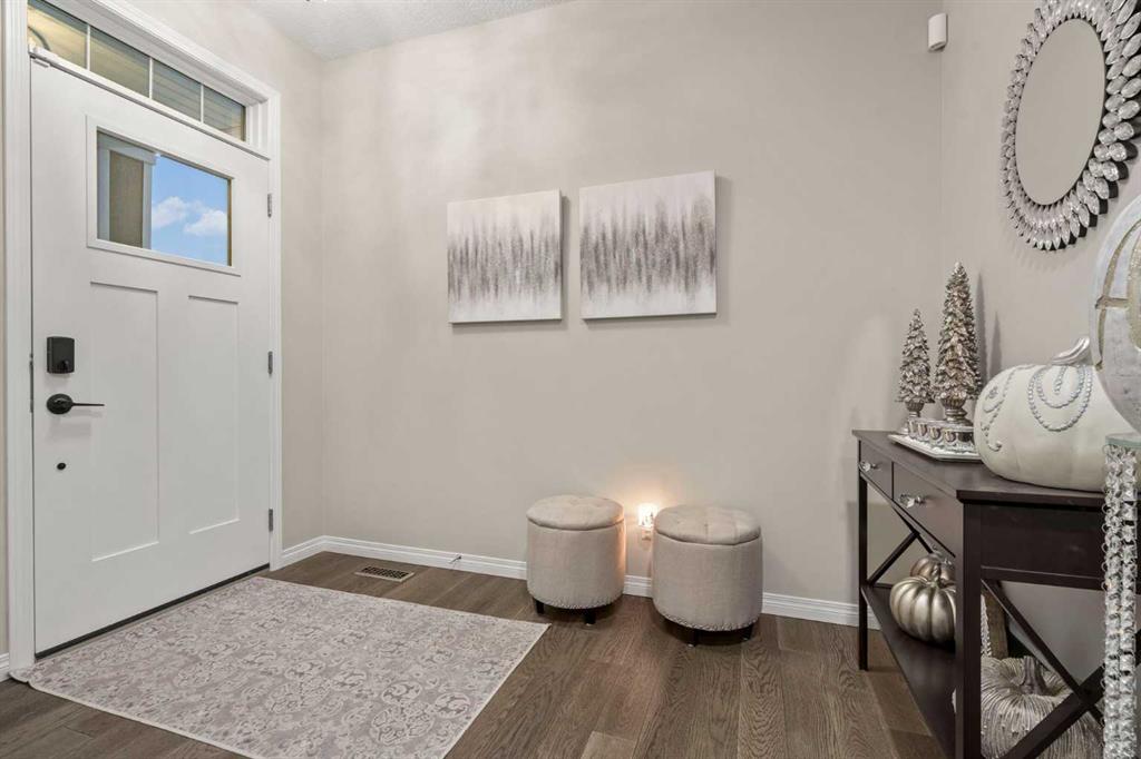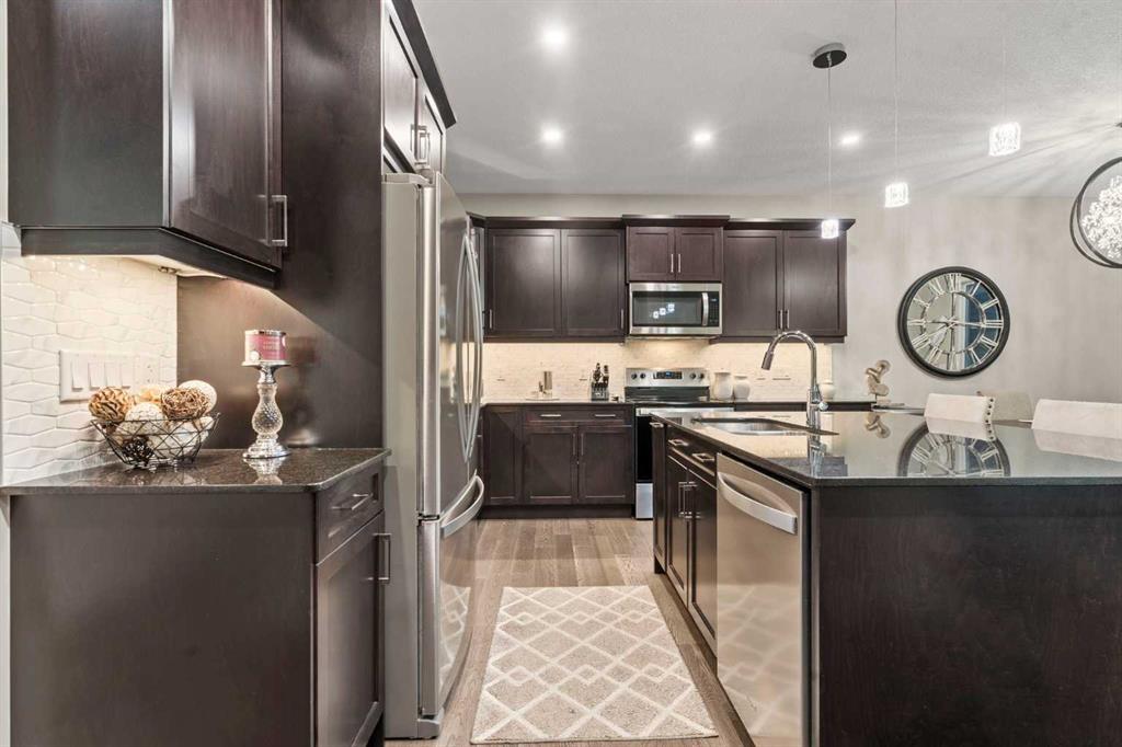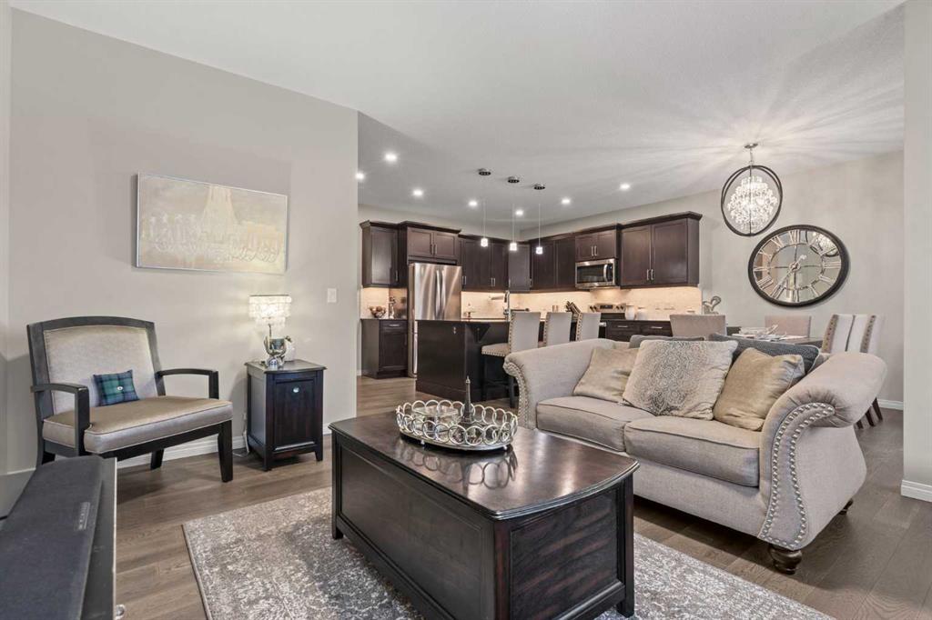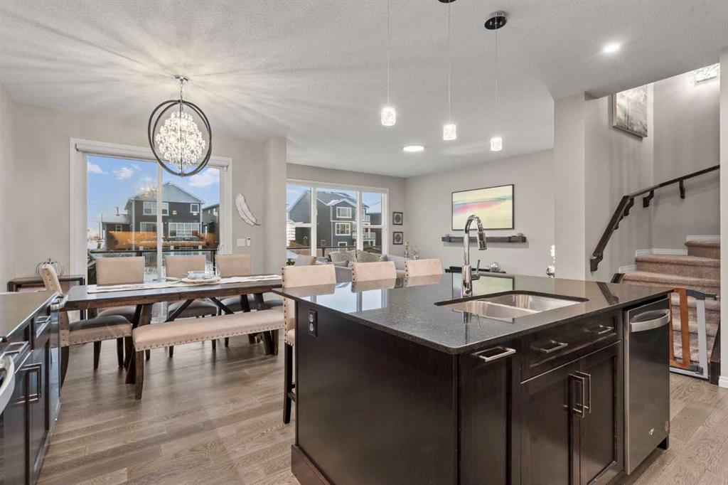 Welcome Home. This stunning two story walkout is only 3 years old and has been thoughtfully designed and upgraded. Tucked away on a quiet street, backing directly onto a green space and playground, in one of Chestermere’s most sought-after communities. This home offers the kind of setting families dream about. From the moment you arrive, the curb appeal stands out with its exposed aggregate driveway, and Gemstone lighting that adds year-round elegance. The main level features a bright, open-concept layout designed for both everyday living and entertaining. The kitchen is the heart of the home, featuring sleek cabinetry with custom lighting and soft close hinges, elegant granite countertops, a stainless steel appliance package, perfect for busy mornings and weekend entertaining offering space and functionality. The warm and welcoming living room is complete with a stylish mantle feature and large windows allow beautiful sunlight to flow into the space from the west facing back yard. Upstairs, the large central bonus room provides space and comfort for you to relax and unwind or have some fun family time. The primary retreat delivers both comfort and style with an ensuite that includes a deep soaker tub, dual sinks, and a beautifully tiled glass shower as its standout feature. The generous walk-in closet offers space for all your storage needs. The 2 Secondary bedrooms are well sized, and the layout offers excellent flow for families of all stages being finished off with a functional laundry room. The builder-finished walkout basement is a major bonus with permits allowing peace of mind. The spacious rec room adds flexible living space with potential for a future home theatre, thanks to the ceiling-mounted projector rough-in. A 4th bedroom, full bathroom and extra storage space complete this walkout level. The mechanical systems are top-tier, including a 75-gallon hot water tank, HRV system, and high-efficiency furnace, ensuring long-term comfort and reliability. Step outside and enjoy one of the home’s biggest highlights: a sunny west-facing backyard that feels like your own private park. Professionally landscaped with lush grass, garden beds that are perfect for the gardening enthusiast, and an extended upper deck with aluminum and glass railing, this yard is designed for relaxing, hosting, and soaking in those beautiful open views of the green space behind. The double attached garage offers parking for two vehicles, a rough-in for an EV charger in the garage and a custom built-in storage loft. Additional features are a 4-ton A/C (with cover), Supreme security system with doorbell and outdoor cameras and strategically placed Wi-Fi boosters for seamless connectivity. Living in Chelsea means being close to everything—schools, pathways, shopping—and only minutes from Calgary and the ring road for easy commuting. Chestermere Lake is nearby for boating, paddleboarding, and sunny afternoons. Book your private showing and experience what makes this property so special.