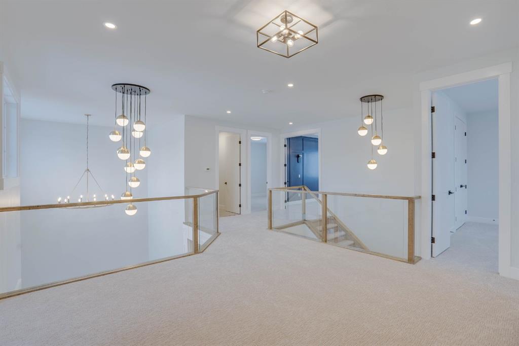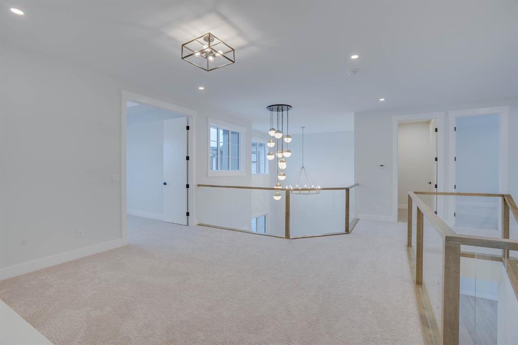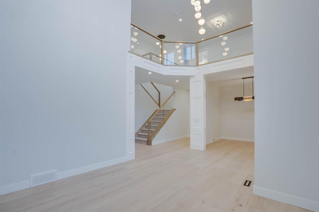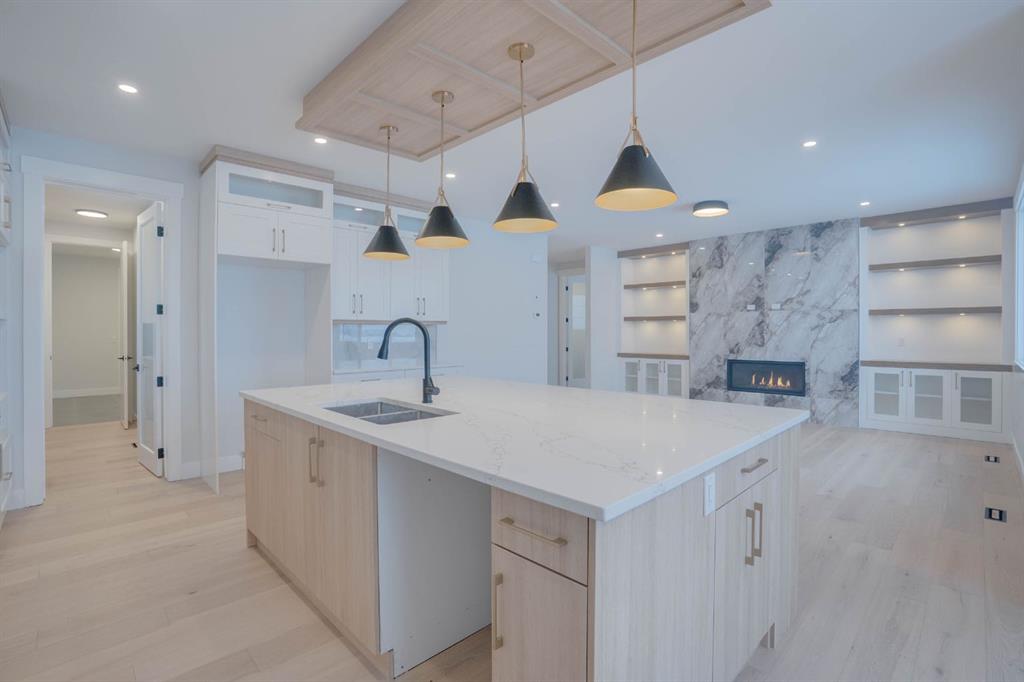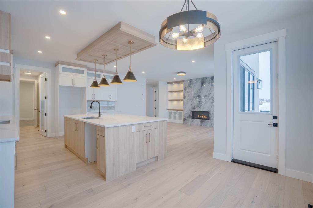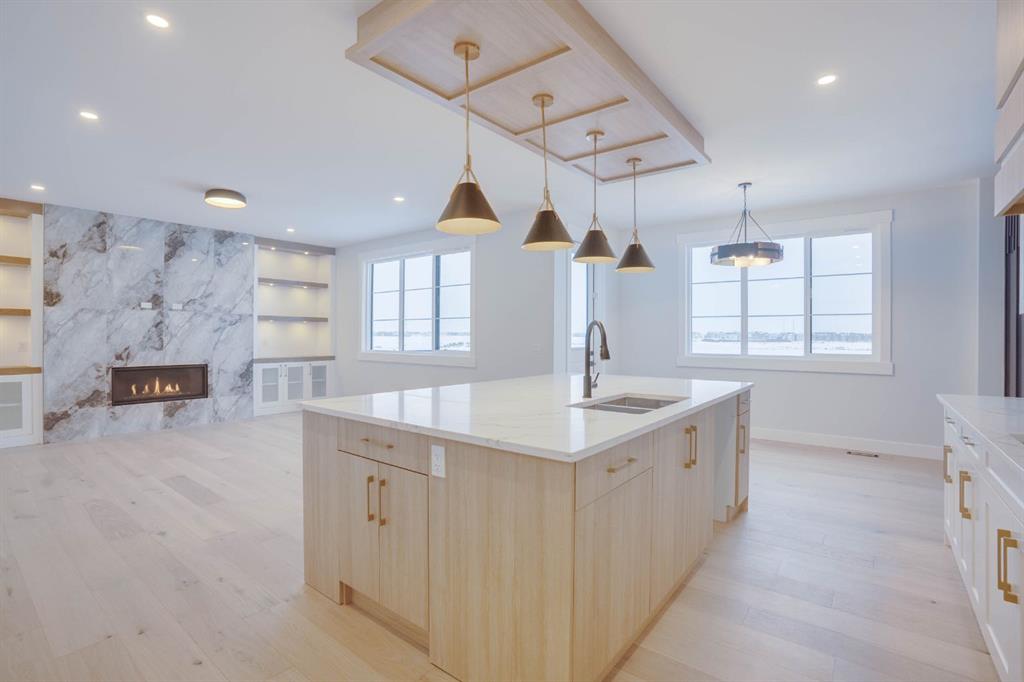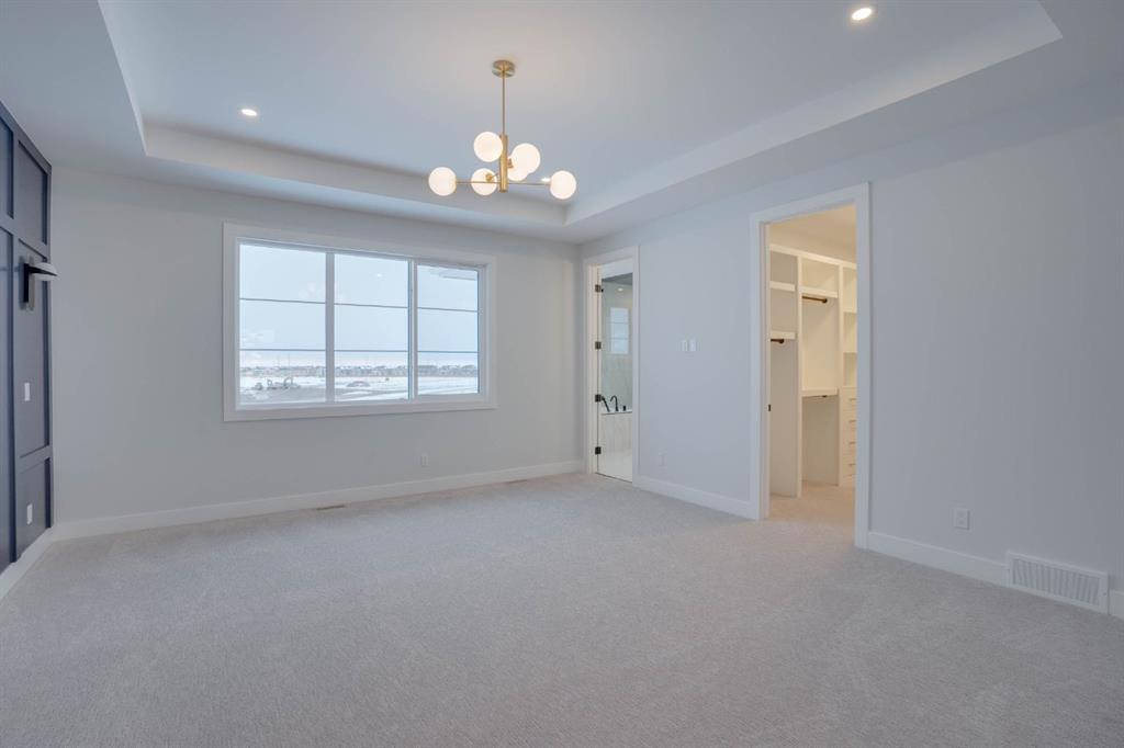 Welcome to this exceptional luxury home in the prestigious community of Waterford Estates, Chestermere. Step into a grand foyer that opens to an impressive living room with soaring open-to-below ceilings, setting the tone for the elegance and space this home offers. The main floor features a private office or den, a large bedroom with its own ensuite and closet, a spacious family room, a bright dining area, and a stunning gourmet kitchen with a massive island, complemented by a fully equipped spice kitchen and walk-in pantry. A generous mudroom and convenient two-piece bathroom complete this thoughtfully designed main level. Upstairs, the primary bedroom is a true retreat with a luxurious 5-piece ensuite and an expansive walk-in closet. The second bedroom also includes its own ensuite and walk-in closet, while two additional bedrooms share another full bathroom. A bonus room and upper-level laundry provide comfort and functionality for the entire family. Situated on a large pie-shaped lot with a huge backyard and a walkout basement, this home also features an attached three-car garage offering ample space for vehicles and storage. Ideally located near schools, parks, and shopping, this property combines elegance, convenience, and comfort in one of Chestermere’s most sought-after neighborhoods.