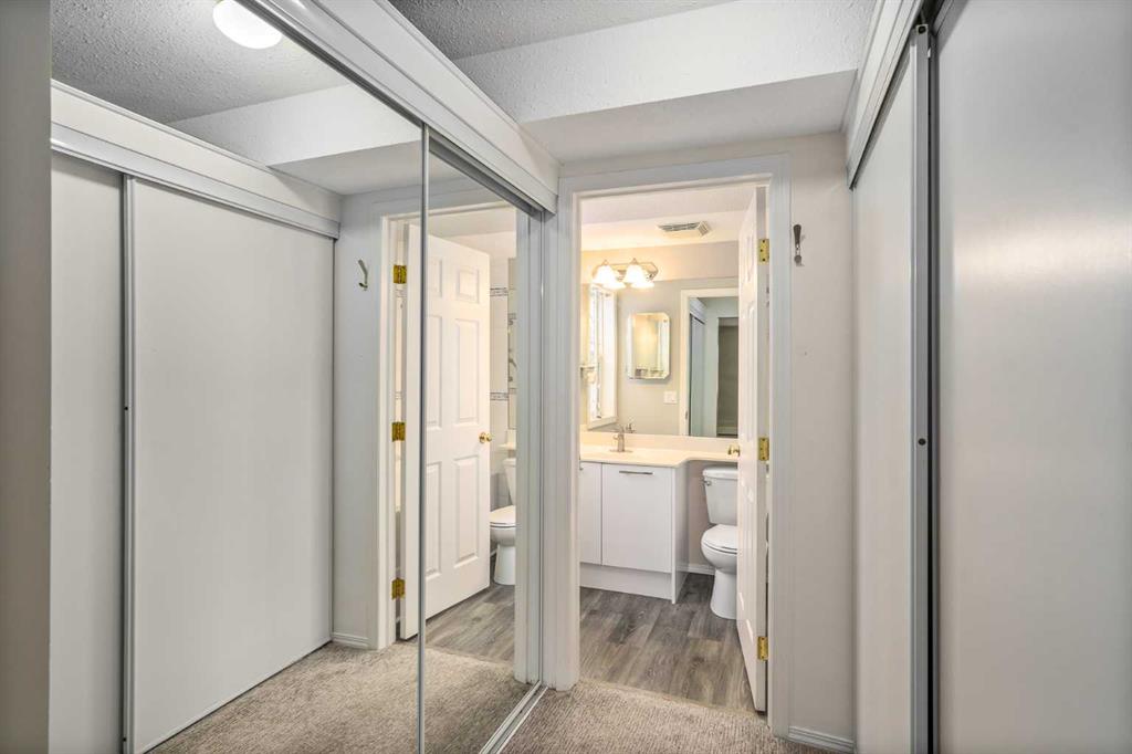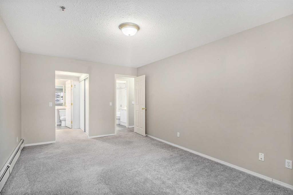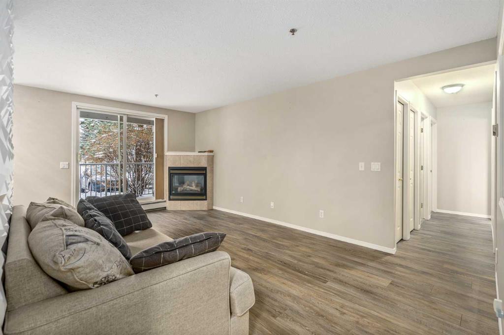 "BRAND NEW FLOORING" Discover this spacious and beautifully updated 2-bedroom, 2-bathroom + den condo offering over 1,100 sq. ft. of living space, ideally located in Chaparral Ridge. Situated on the main floor on the north side of a well-managed building, this unit includes a titled underground parking stall conveniently near the parkade entrance, along with a secure storage locker. The home underwent extensive renovations in 2022, making it completely move-in ready. From the moment you step inside, you’ll notice the modern finishes and thoughtful upgrades throughout. The kitchen has been fully redesigned, featuring elegant new cabinetry, granite countertops, and stainless steel appliances. Both bathrooms have been refreshed with updated vanities, and new carpet has been installed in both bedrooms. The layout is one of the standout features of this home. A rare and highly functional floor plan offers a den or home office with an interior window just off the entry. The expansive living room includes a corner gas fireplace and opens onto a private balcony. A dedicated dining area sits adjacent to the kitchen, creating a perfect flow for everyday living and entertaining. Down the hallway, you’ll find a large laundry and storage room, a full 4-piece bathroom, and two generously sized bedrooms. The primary bedroom features its own private 4-piece ensuite. With a north-facing orientation, the unit stays comfortable during warmer summer months. The complex has no age restrictions and is ideally positioned just a short walk from the Bow River and Fish Creek Park, offering access to an extensive pathway system. Golf enthusiasts will appreciate being only 7 minutes from Blue Devil Golf Club, while commuters will love the quick access to Stoney Trail and Deerfoot Trail. This is a fantastic opportunity to own a fully renovated, well-located home—schedule your private showing before it’s gone.