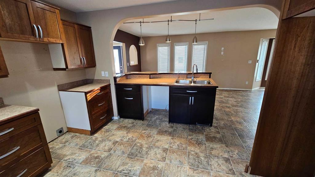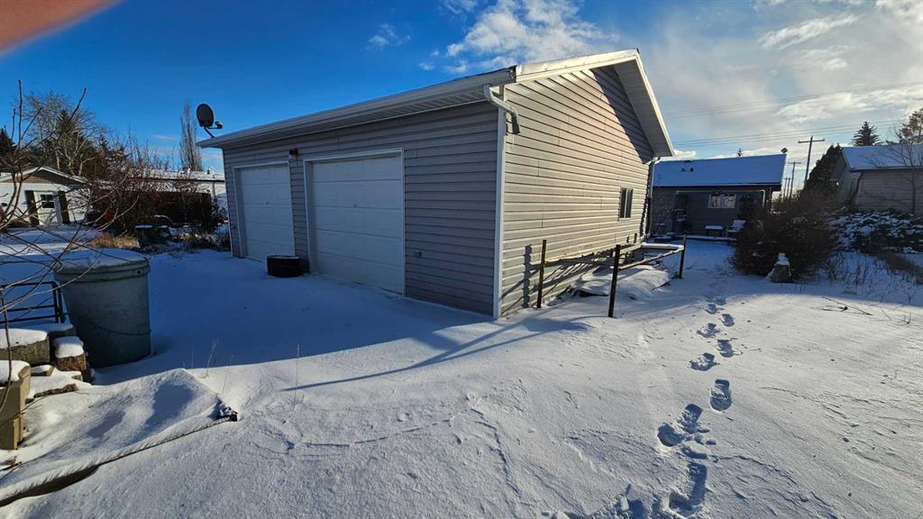 This spacious modern home in Consort, originally built in the 50's, this 1997 sq ft bungalow has gone though a major addition and renovation in 2006 & 2009. The location is excellent as the K-12 school is just east of the house. The lot is huge 95' x 130', and a driveway runs right through the property on the east side to make it very accessible to the back alley and the other double garage .The main floor has 3 bedrooms and 2 bathrooms, a spacious kitchen with a unique eating bar along with a large dining room, while the family room features a gas fireplace perfect to snuggle by in the cold winter with a loved one. The new basement is approx 1000 sq ft of the house, finished with a giant games room, wet bar and an additional bedroom and bath. The home has hot water on demand, hot water in floor heat in the basement addition and a forced air furnace for upstairs. There is a double attached garage( one wide, two deep) on the house and a double detached garage( two wide, one deep.. Normal) in the back yard. This is a very spacious home with lots of room and finished very nicely. Don't let this upgraded home escape your eyes.