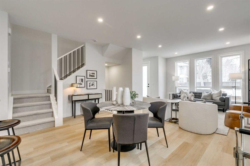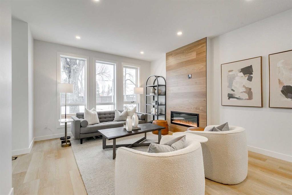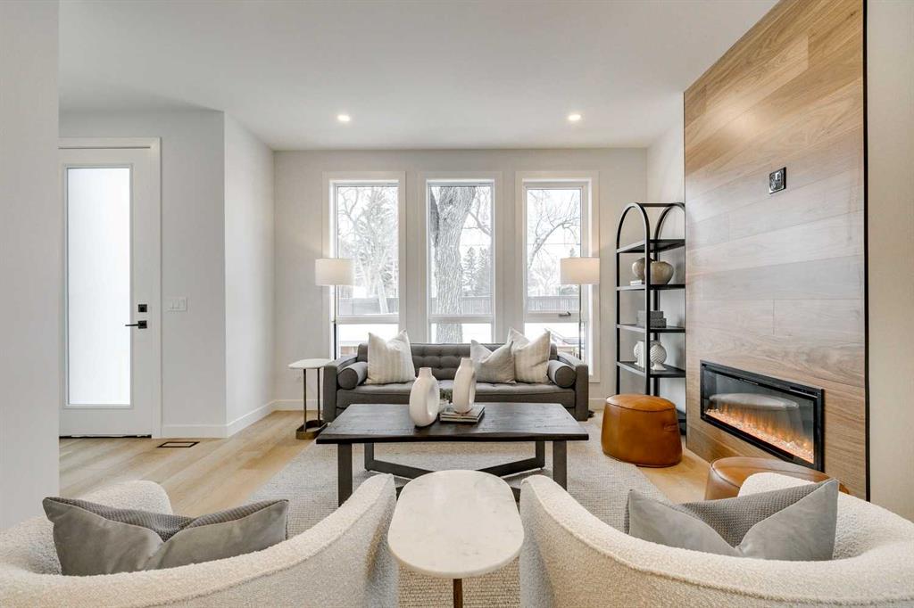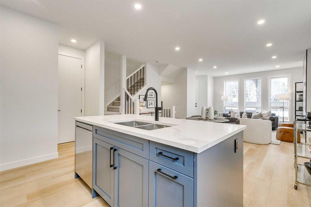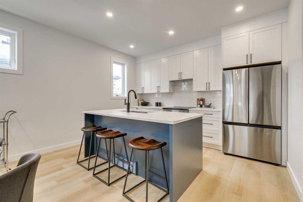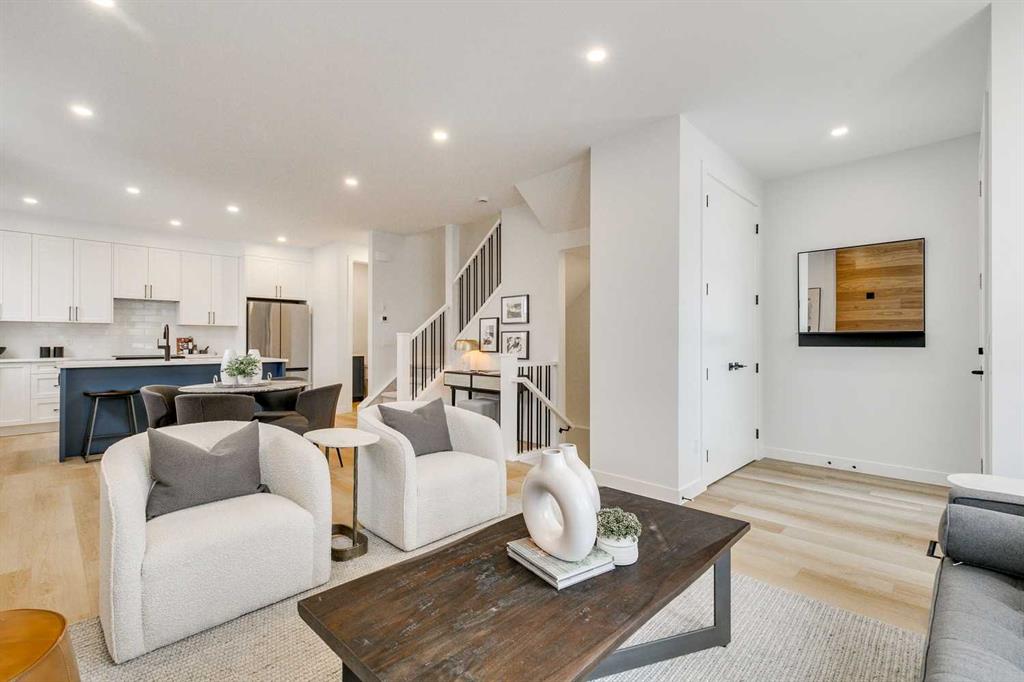 Welcome to 1-440 32 Avenue NW, a newly built 3 bedroom, 3.5 bathroom townhome spanning nearly 2,000 sq. ft. of total developed living space, including a fully finished basement, with 9 foot ceilings throughout situated in the desirable community of Highland Park in Northwest Calgary. The property was constructed by MountainPoint Homes Ltd., a professional builder with decades of experience working on high-end residences across Calgary. The home showcases superior craftsmanship, premium materials, and a design focused on livability and enduring value. The open-concept main floor offers a bright and inviting living area anchored by a sleek fireplace, complemented by a custom-built kitchen with full-height cabinetry, quartz countertops, and a modern appliance package. Thoughtful design and high-quality finishes elevate each detail from the luxury vinyl plank flooring to the precision millwork and thoughtful lighting selections. Upstairs, the primary suite provides a private retreat with a custom walk-in closet and a spa-inspired ensuite bathroom with heated floors. A secondary bedroom with its own ensuite and convenient upper-floor laundry add everyday functionality. The fully developed lower level expands the living space with a large recreation area, wet bar, three-piece bathroom, and spacious guest bedroom perfect for hosting or family living. Built with energy efficient systems, complete with A/C rough-in and durable Hardie board siding, this property is built to provide homeowners with peace of mind while also coming with a comprehensive new home warranty package. Each unit includes its own private detached garage parking. Outside features its own private use patio and fenced yard space complete with a gas line, perfect for barbequing or enjoying summer evenings. Located in Highland Park, one of Calgary’s most central and rapidly revitalizing communities. Minutes from Confederation Park, residents will enjoy easy access to downtown, nearby schools, parks, and major amenities, as well as the welcoming charm of a mature neighbourhood poised for long-term growth.