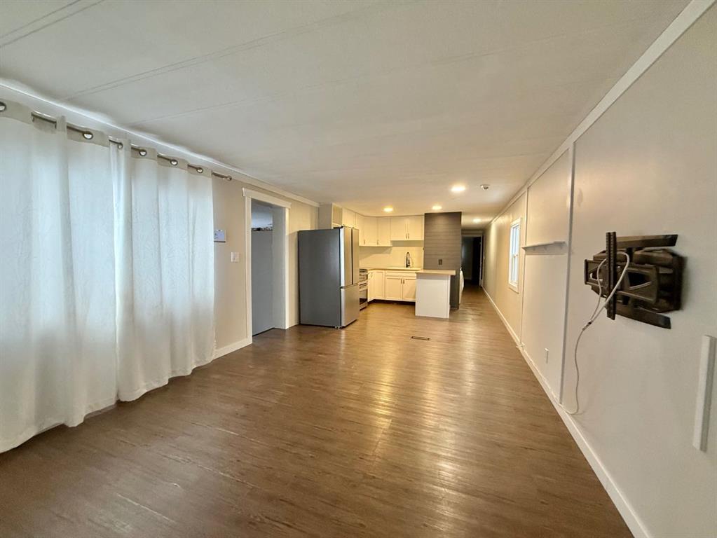 Charming, cute mobile home on an end corner lot, offering a huge private fenced yard and tonnes of parking! Located close to the McLeod River, this home has plenty of upgrades! The addition holds the spacious primary bedroom with a big walk in closet nicely set off the main area of the home. In the addition you will also love the large flex area- a great catch all zone with plenty of tall cabinets ideal for pantry and outerwear things and a shoe rack inside one! This is great for the organizer in you! On top of new flooring, paint, and cabinets, the home has had a complete electrical upgrade from the panel in 2019 to all of the plugs and switches. Newer stainless steel appliances give the white kitchen sharp appeal. The hot water tank was replaced in 2016 and the furnace has been cleaned and serviced every year. Enjoy the beautiful light that floods this house in the day and the sunset on the front porch or the back deck. Put your lawn chairs on the deck and enjoy the sunsets!