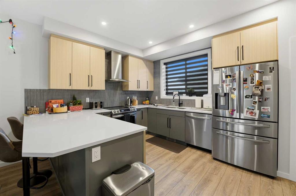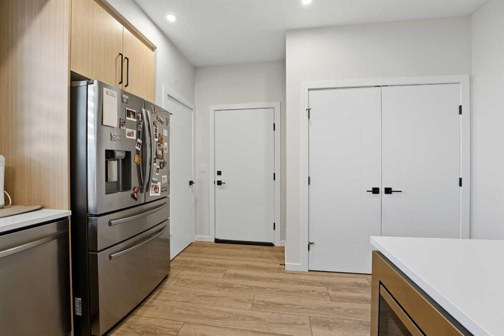 Welcome to this stunning newly constructed, two-story home on a desirable corner lot. The main floor boasts an impressive, open-concept layout centered around a designer kitchen that seamlessly flows into a spacious living room highlighted by a cozy fireplace. Upstairs, convenience meets comfort with a dedicated laundry room and three generous bedrooms, including a luxurious primary suite complete with a private en-suite. The property is uniquely enhanced by a legally suited basement, offering an expansive and bright separate living space featuring a large bedroom, a four piece bathroom, and an open kitchen, dining and living area. Completing this exceptional package is a roomy 19x20 double garage for parking and storage. This home is a must see for those seeking modern design, functional living.