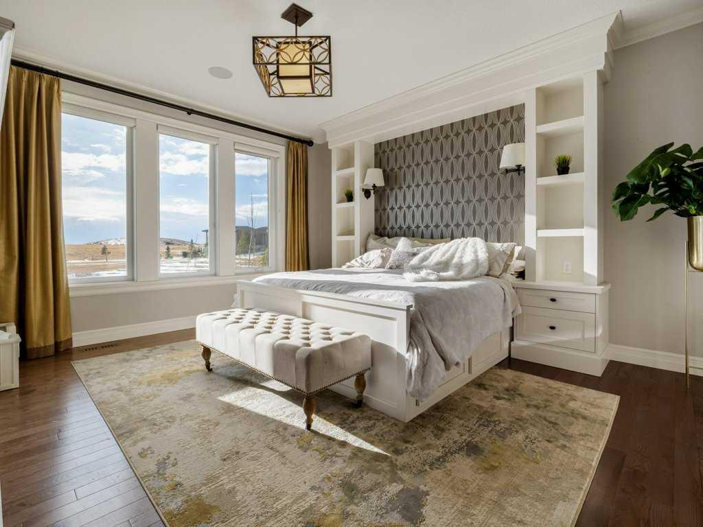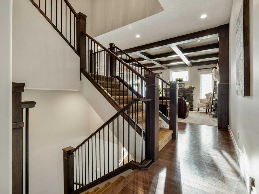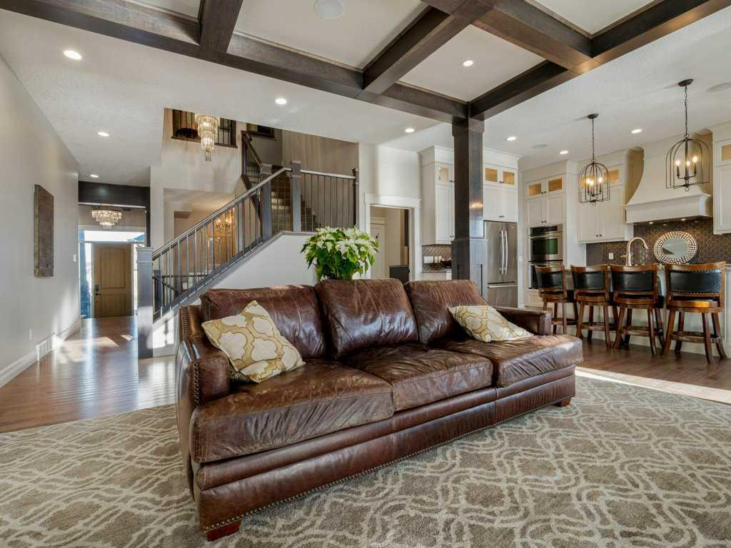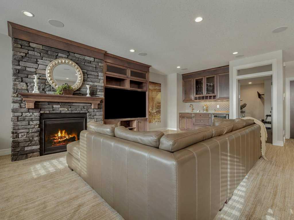 Former Signature Show Home in an amazing location. Fully developed, coffered ceiling in livingroom which features a stone fireplace, beautiful kitchen, Butlers Pantry off garage entry with laundry facilities. Dining area leads to deck with views that everyone will enjoy, part of the deck is covered with electric wind screens for added privacy and gas line for your BBQ. Double garage is heated with electric lift for storage shelf, plus water in garage. Primary suite on main floor with gorgeous ensuite bath, large walk-in closet with built ins. Other main floor bedroom has a murphy bed and was used as an office. Two generous size bedrooms upstairs as well as sitting area and built in desk at the top of the stairs. Basement has 9' ceilings and is an awesome entertaining space with walk out to patio, wet bar area, fireplace, plus a gym/dance studio with leather floor plus 2 more bedrooms. This home has so many upgrades and features, it would be an absolute pleasure to call Home.